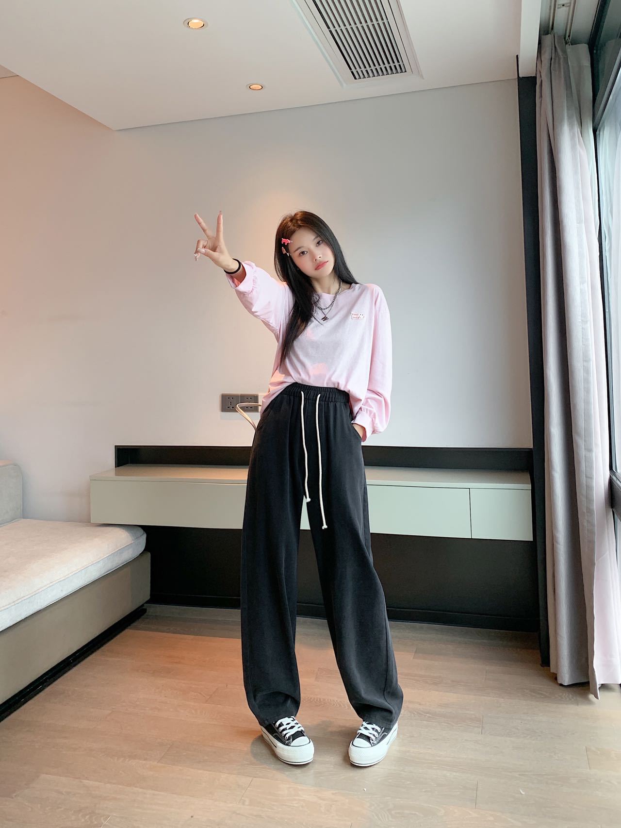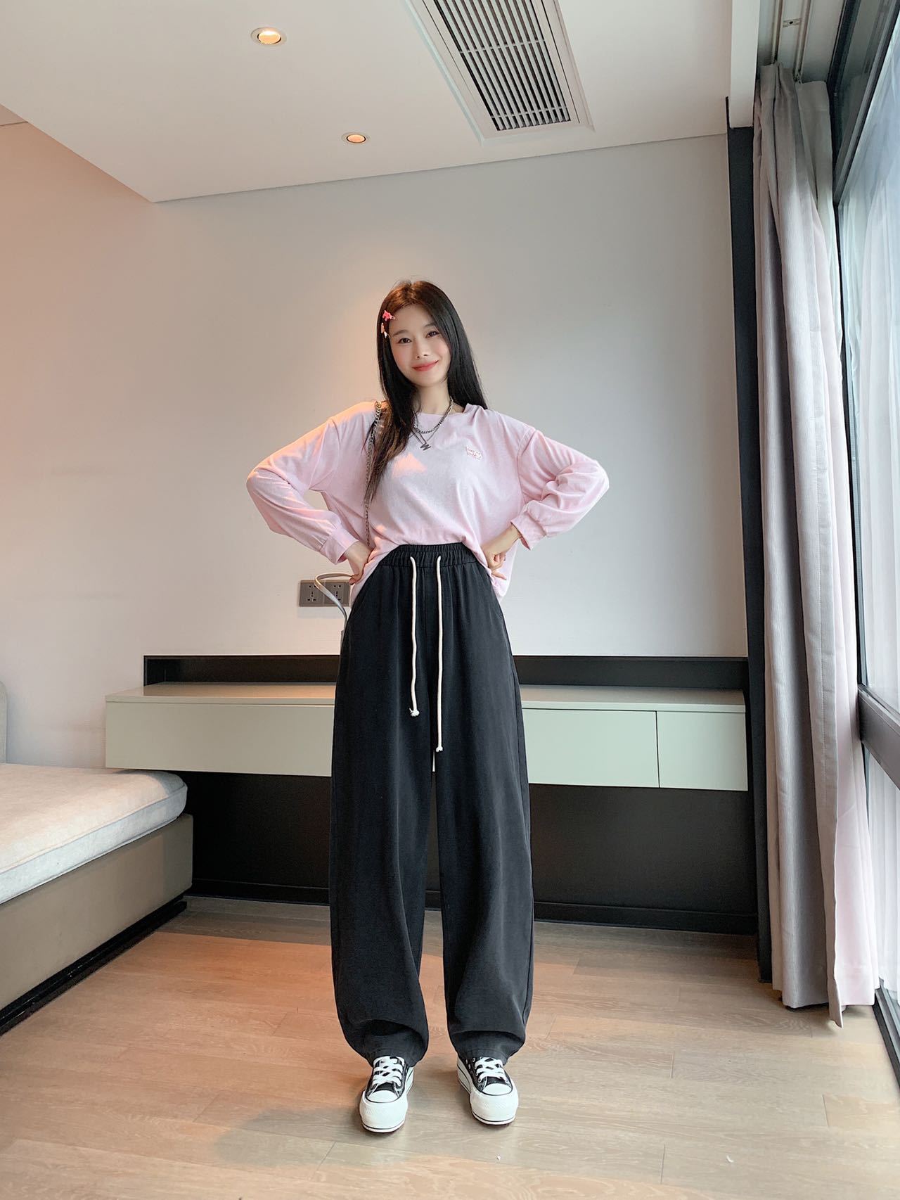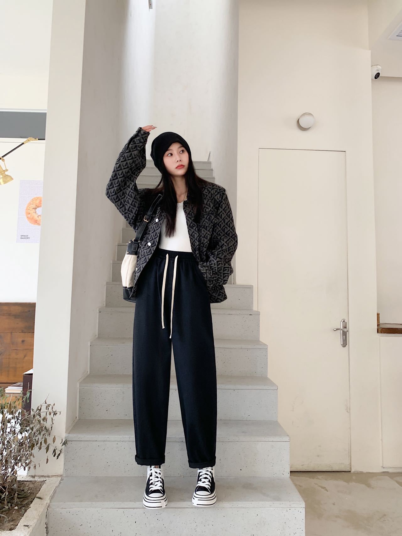 Otoño 2023 nuevos pantalones harem de papá sueltos de cintura alta moda combinable delgados elásticos rectos deportivos