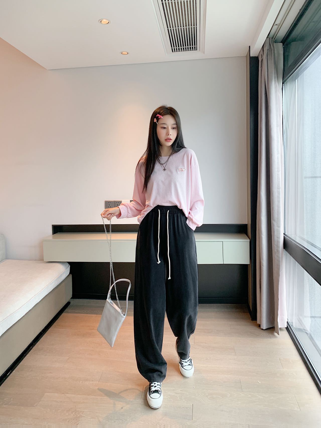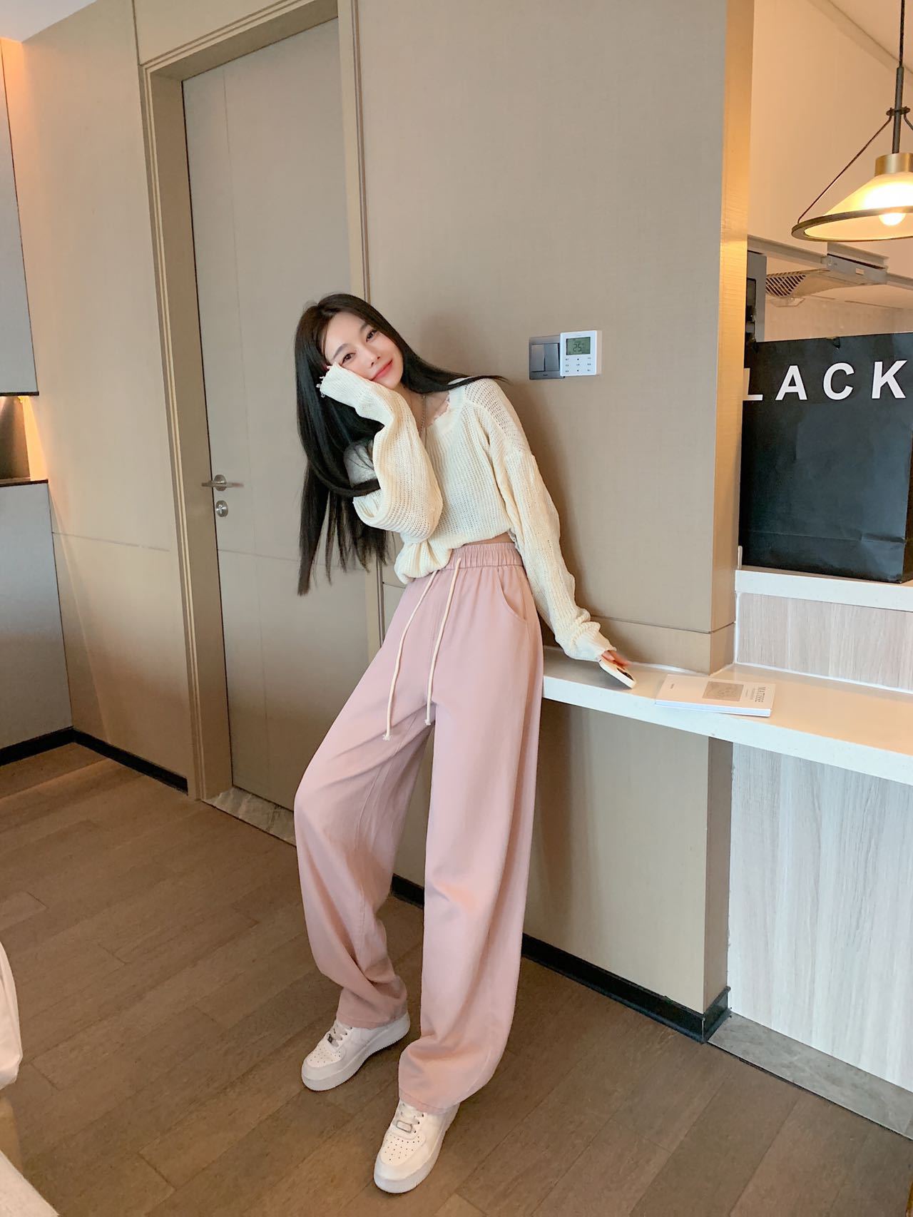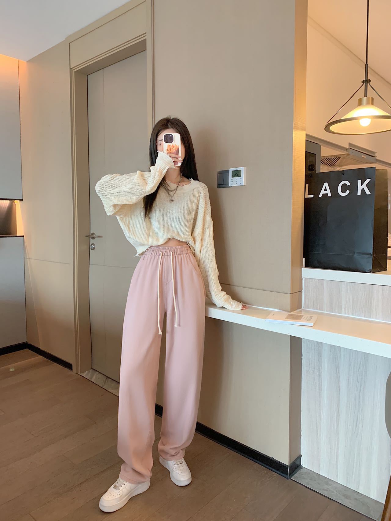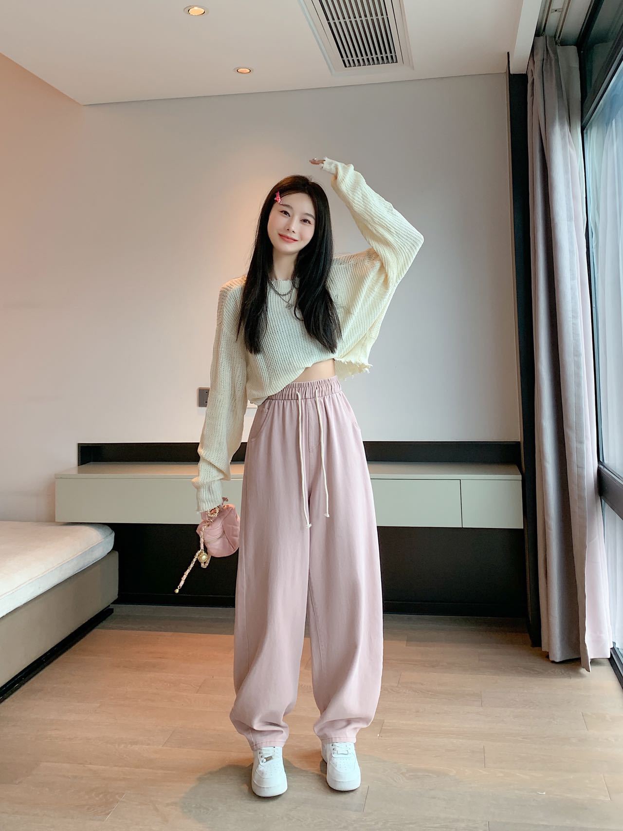 Otoño 2023 nuevos pantalones harem de papá sueltos de cintura alta moda combinable delgados elásticos rectos deportivos