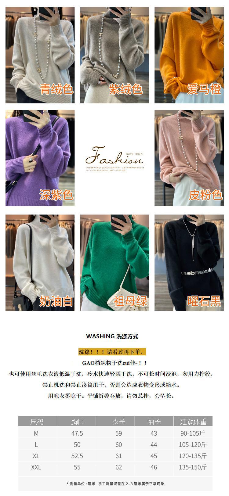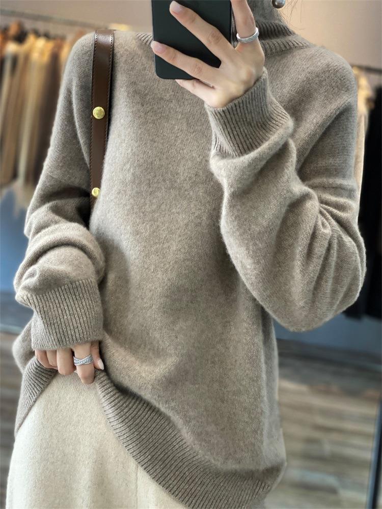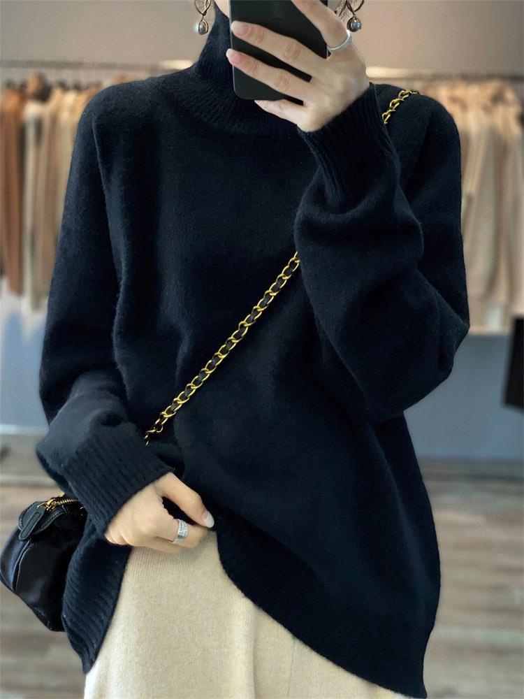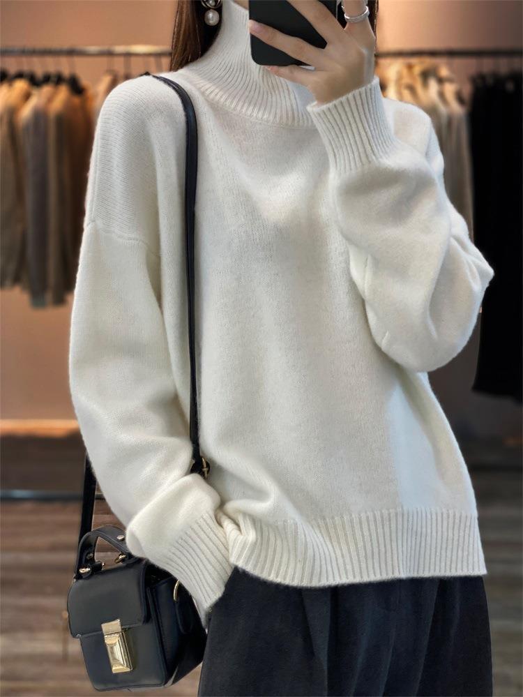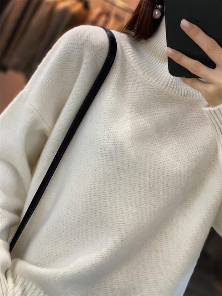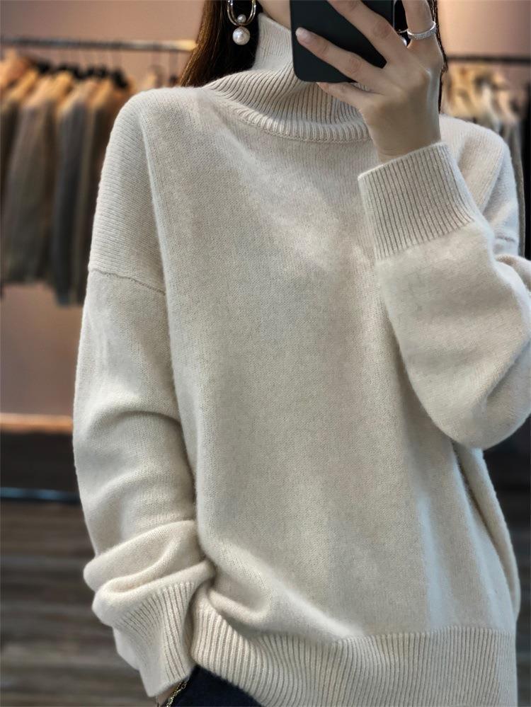 2022 Otoño e Invierno Nuevo Suéter de Punto de Cachemira Base de Cuello Alto Holgado Perezoso de Color Sólido para Mujer