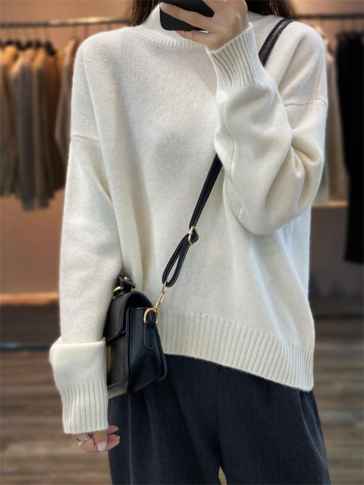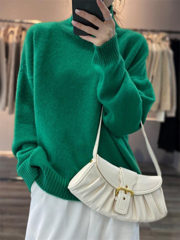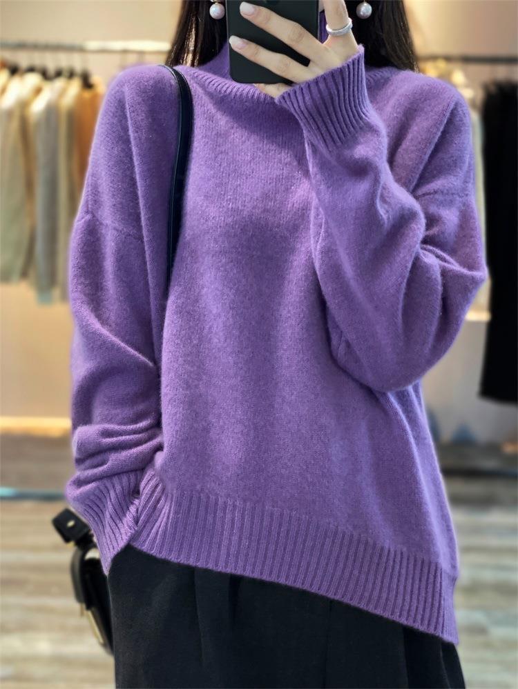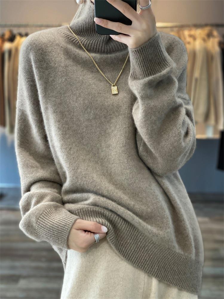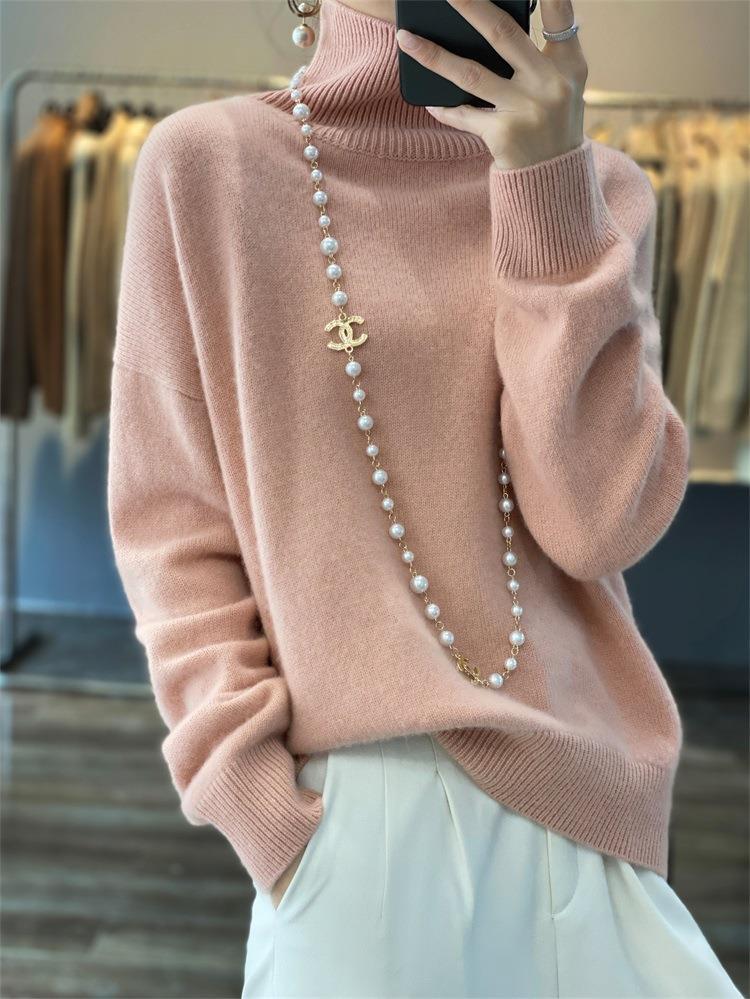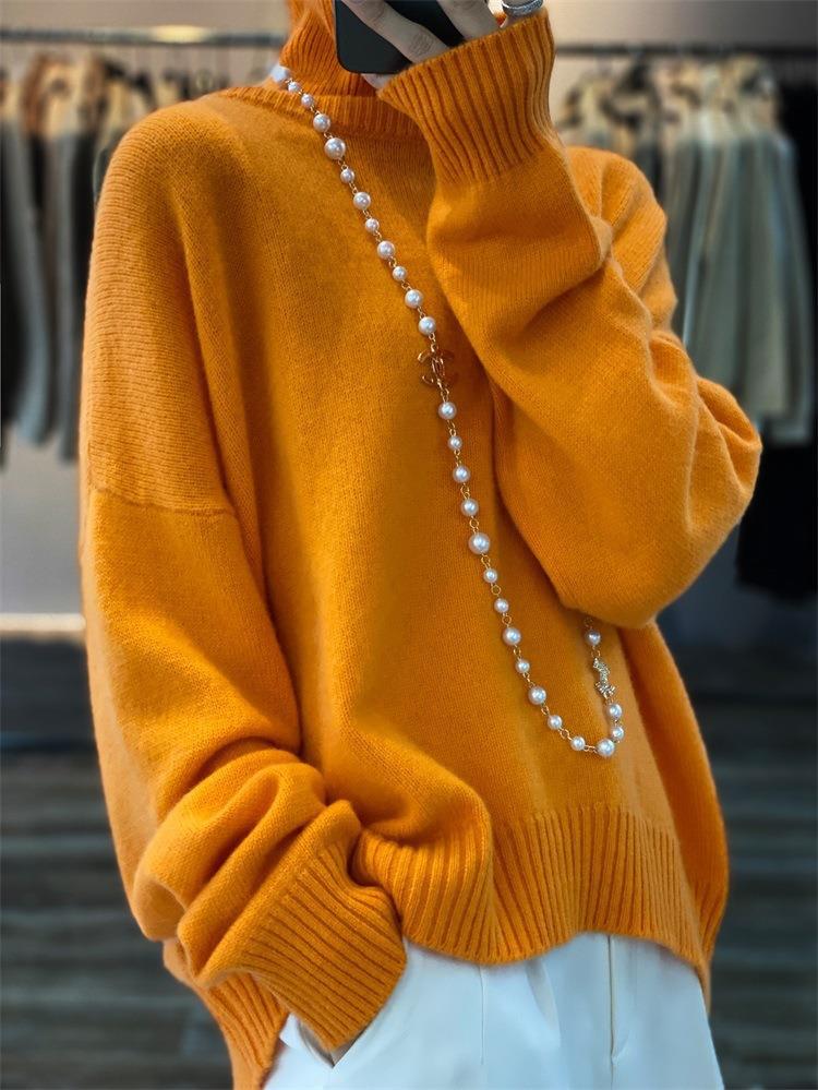 2022 Otoño e Invierno Nuevo Suéter de Punto de Cachemira Base de Cuello Alto Holgado Perezoso de Color Sólido para Mujer
