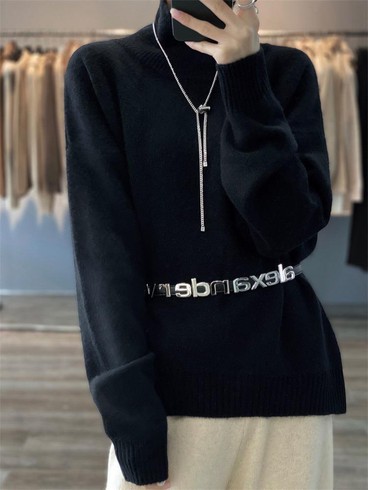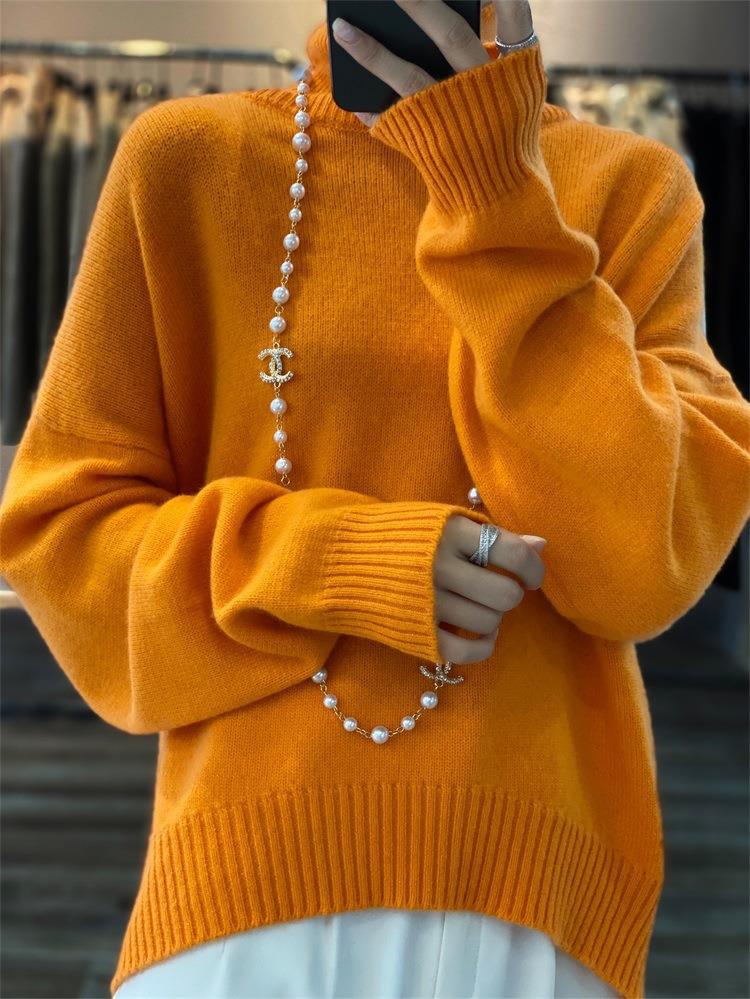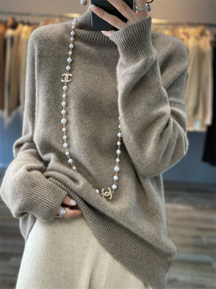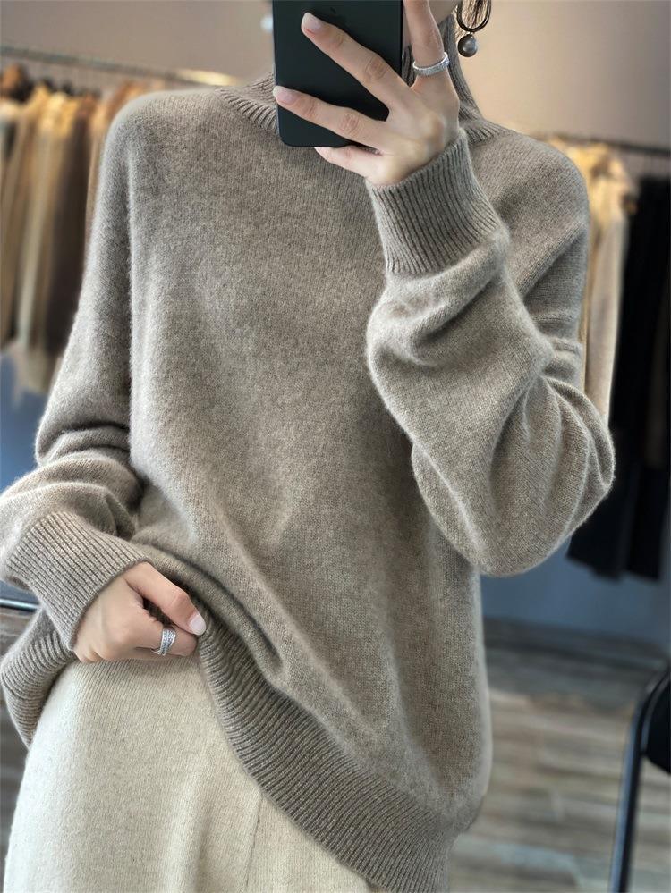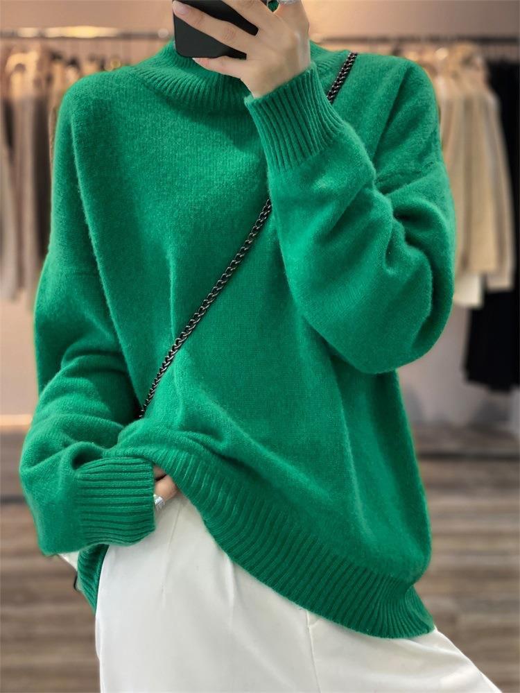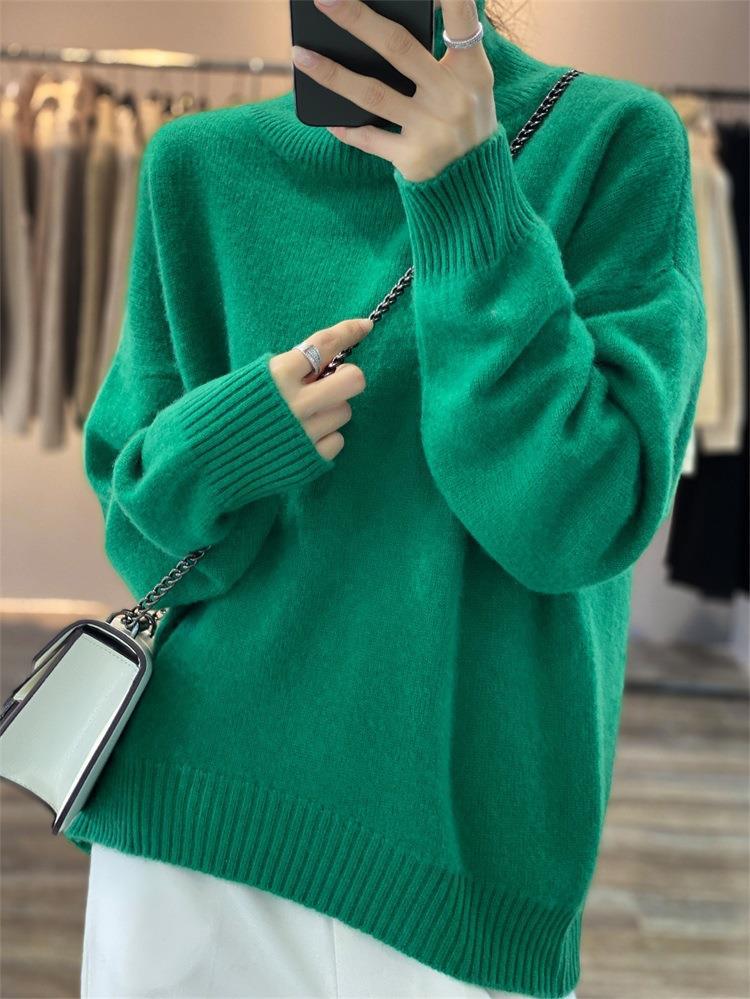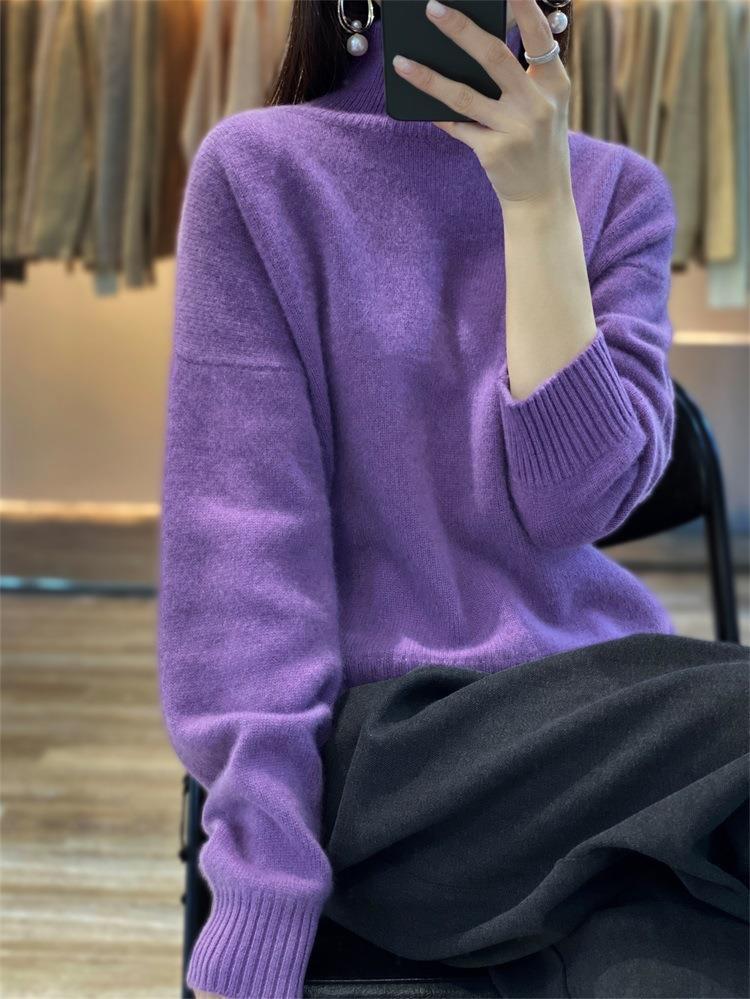 2022 Otoño e Invierno Nuevo Suéter de Punto de Cachemira Base de Cuello Alto Holgado Perezoso de Color Sólido para Mujer