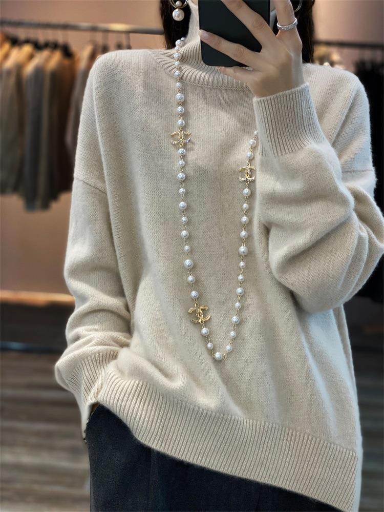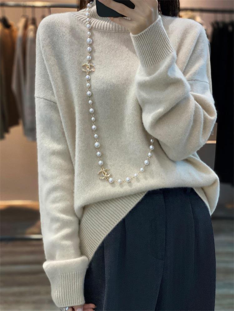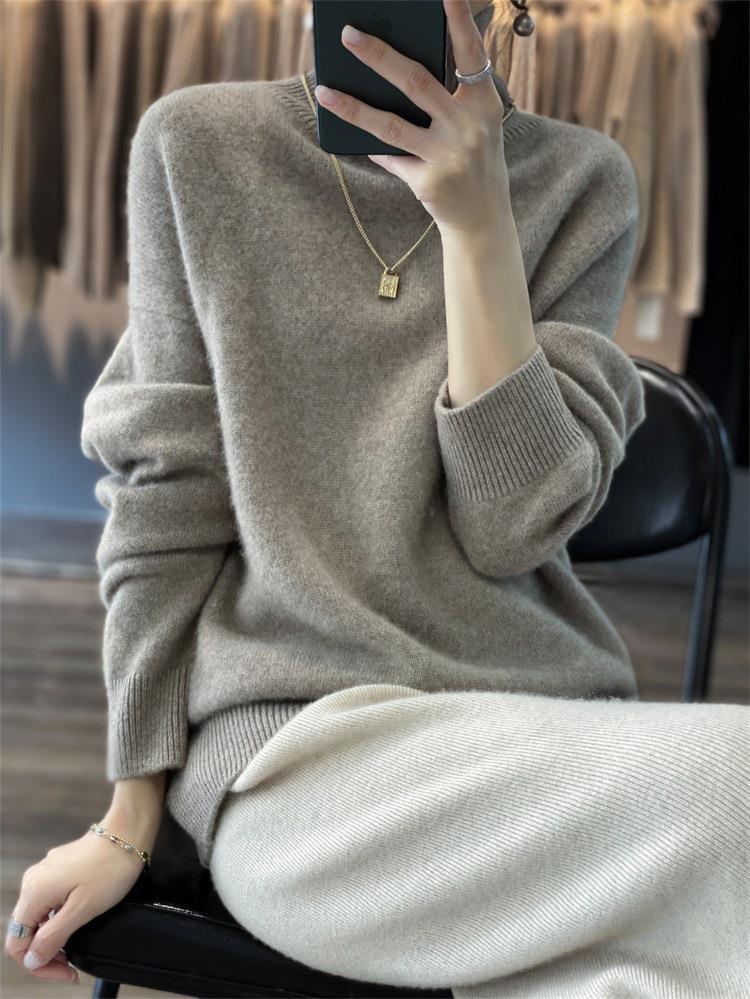 Abrigo de lana 100% pura, cárdigan de punto para mujer, suéter de cachemira sin costuras, estilo coreano, cuello redondo, prenda exterior holgada. Suéter de lana 100% pura para mujer, otoño e invierno, nuevo suéter holgado con cuello en V, jersey interior, camisa de fondo, suéter de punto corto y fino Suéter de primera línea confeccionado en seda brillante 100% lana pura para mujer, suéter holgado fufu, camisa de punto con cuello medio alto rizado Suéter de cuello alto de 100% lana para mujer, suéter de punto de pura lana, otoño e invierno 2023, nueva temporada, suéter cálido con base elegante