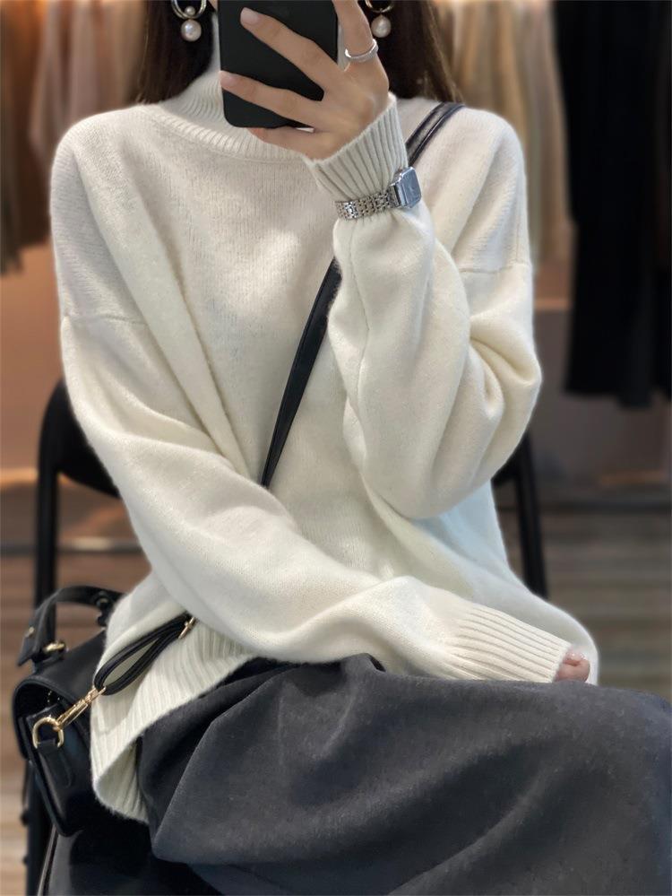 Suéter de lana para mujer, 100% lana pura, suéter de cuello redondo, invierno, nuevo, blanco, versátil, suelto, de punto, suéter cálido Suéter de lana 100% pura sin costuras para mujer, jersey de cuello redondo, camisa de punto hueco en la parte inferior, suéter perezoso fufu de leche súper hermoso Suéter de punto básico de lana 100% pura sin costuras, suéter de todo fósforo, suéter de cuello alto de media manga larga para mujer Suéter de lana 100% pura sin costuras de alta calidad para mujer, suéter de cuello redondo, parte inferior suelta, adelgazante, suéter de punto con hombros rectos