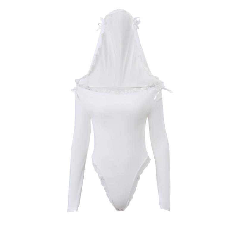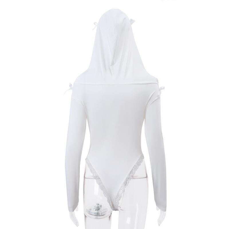Ropa de Mujer Nueva Otoño 2023 Europea y Americana Transfronteriza Sexy Sexy Ajustado con Capucha Encaje Manga Larga Mameluco para Mujer