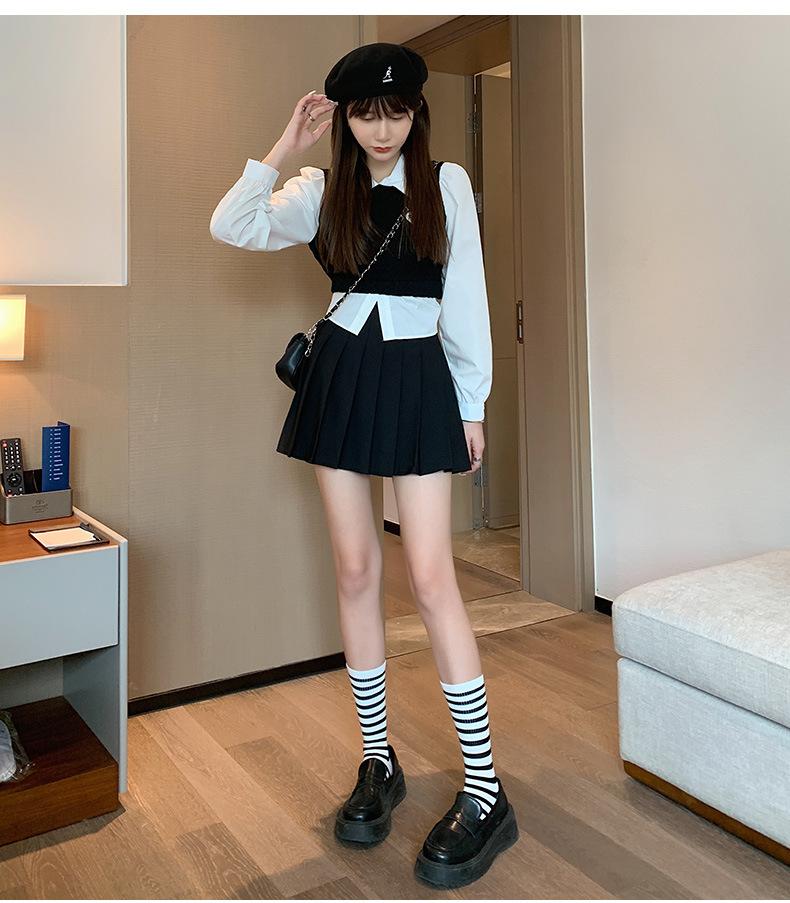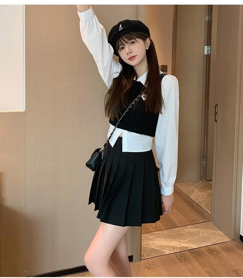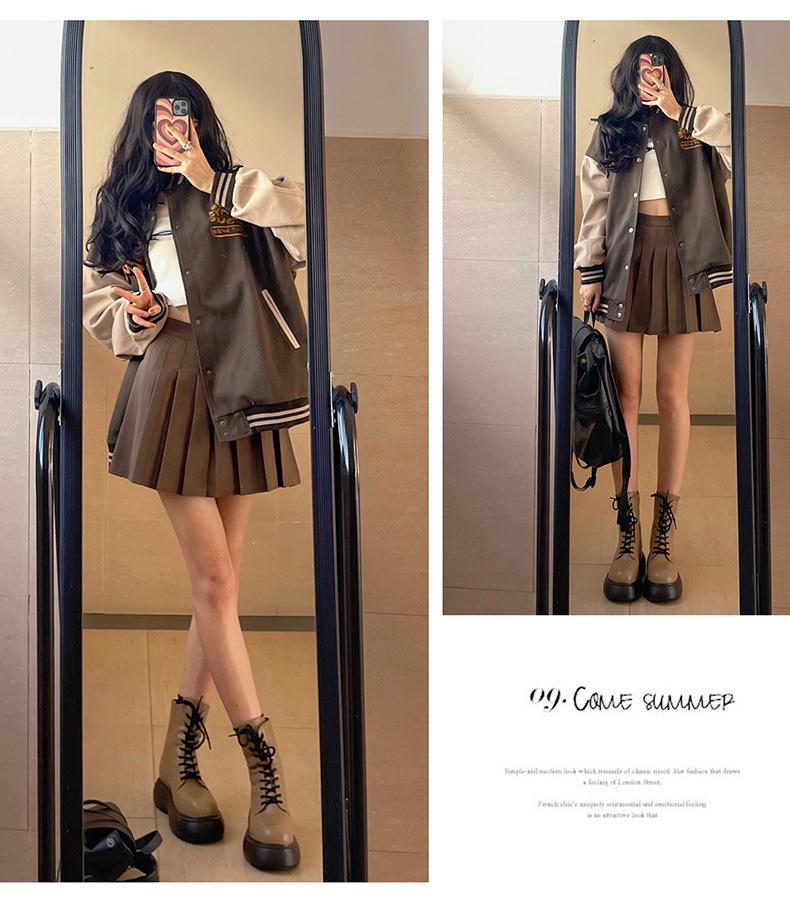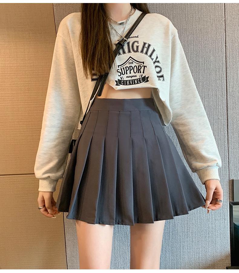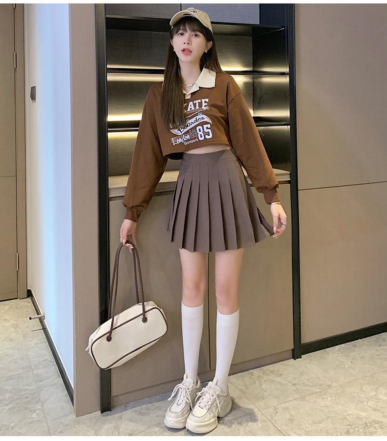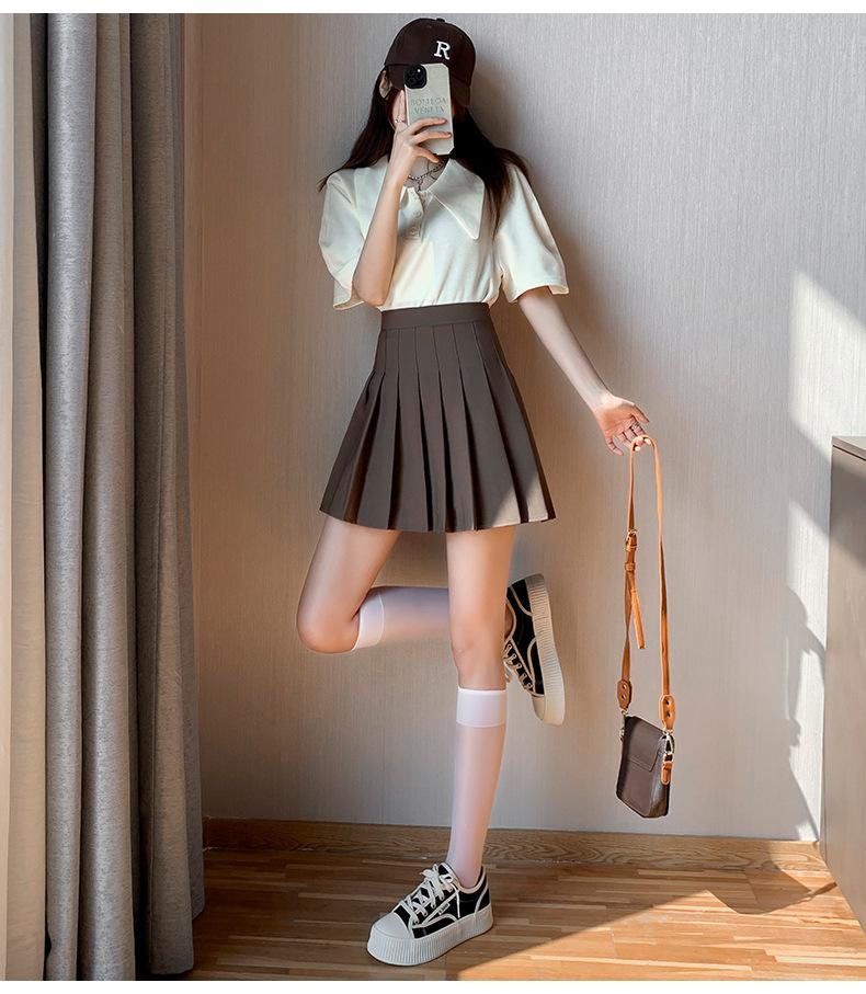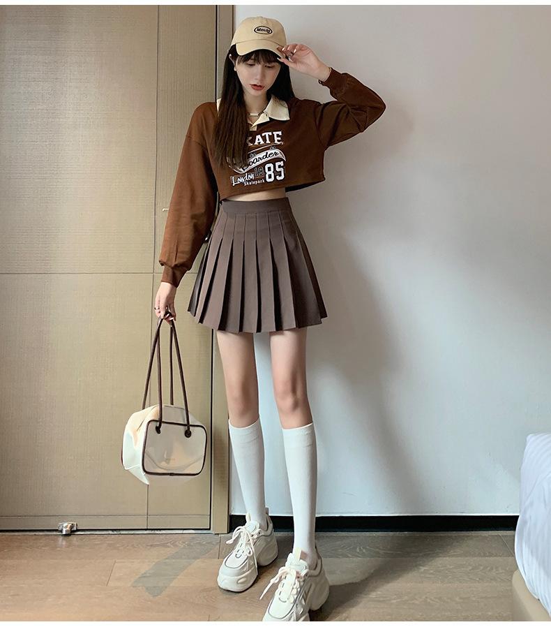 Falda Plisada Caqui Falda JK para Mujer Falda Pequeña de Cintura Alta Adelgazante 2022 Nueva Primavera y Otoño Verano Falda Línea A