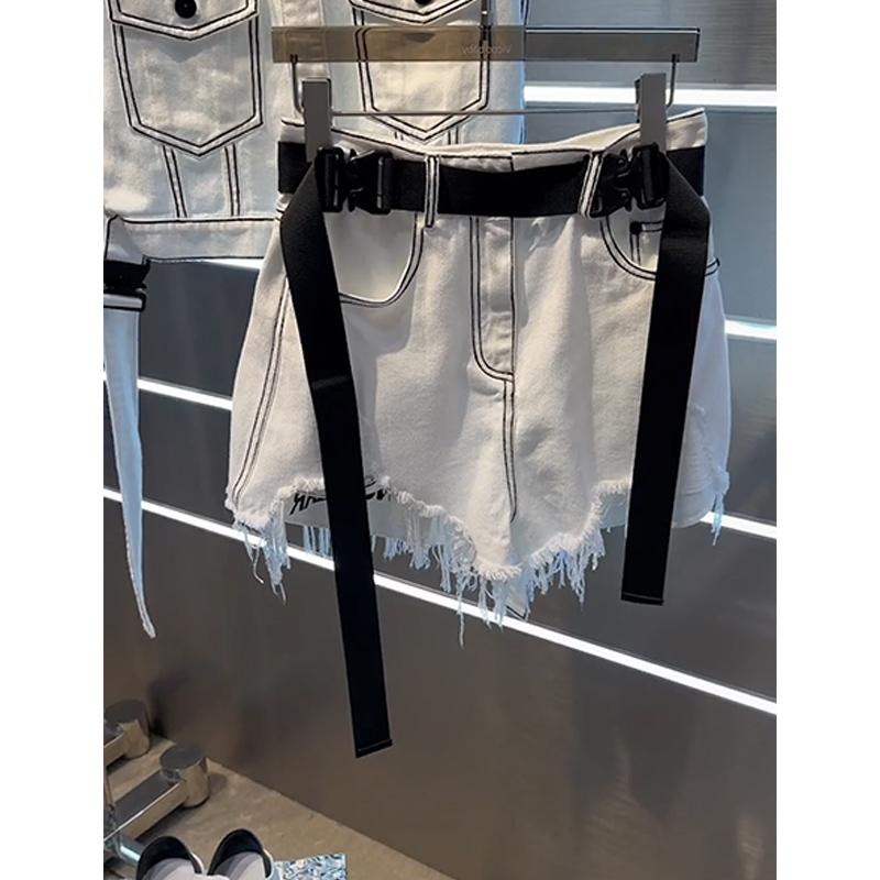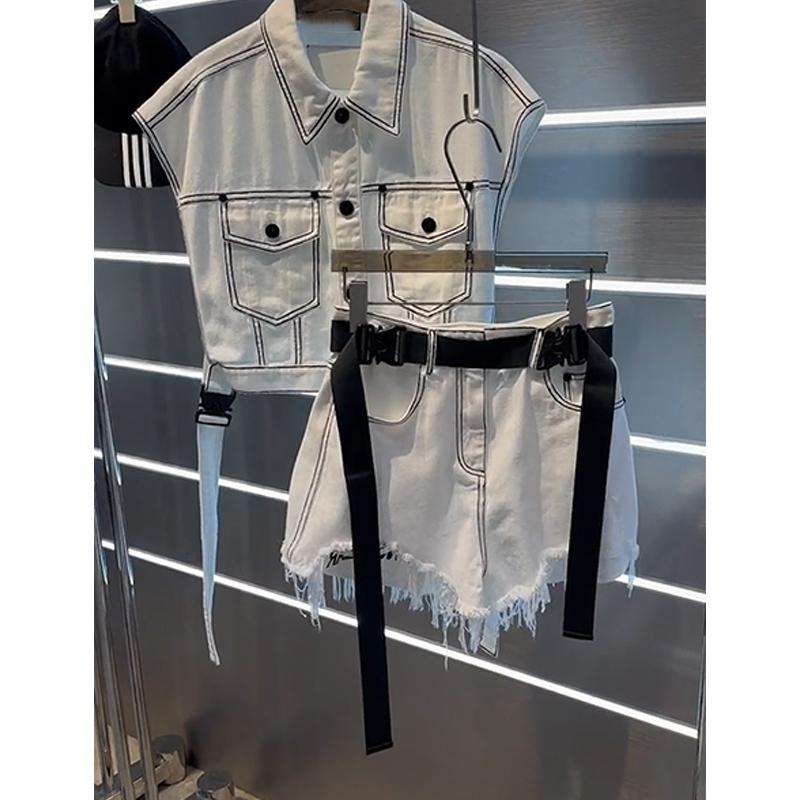 Ropa de verano con un conjunto de traje de dos piezas de chaleco y pantalones cortos blancos pequeños de herramientas casuales de moda europea para mujer