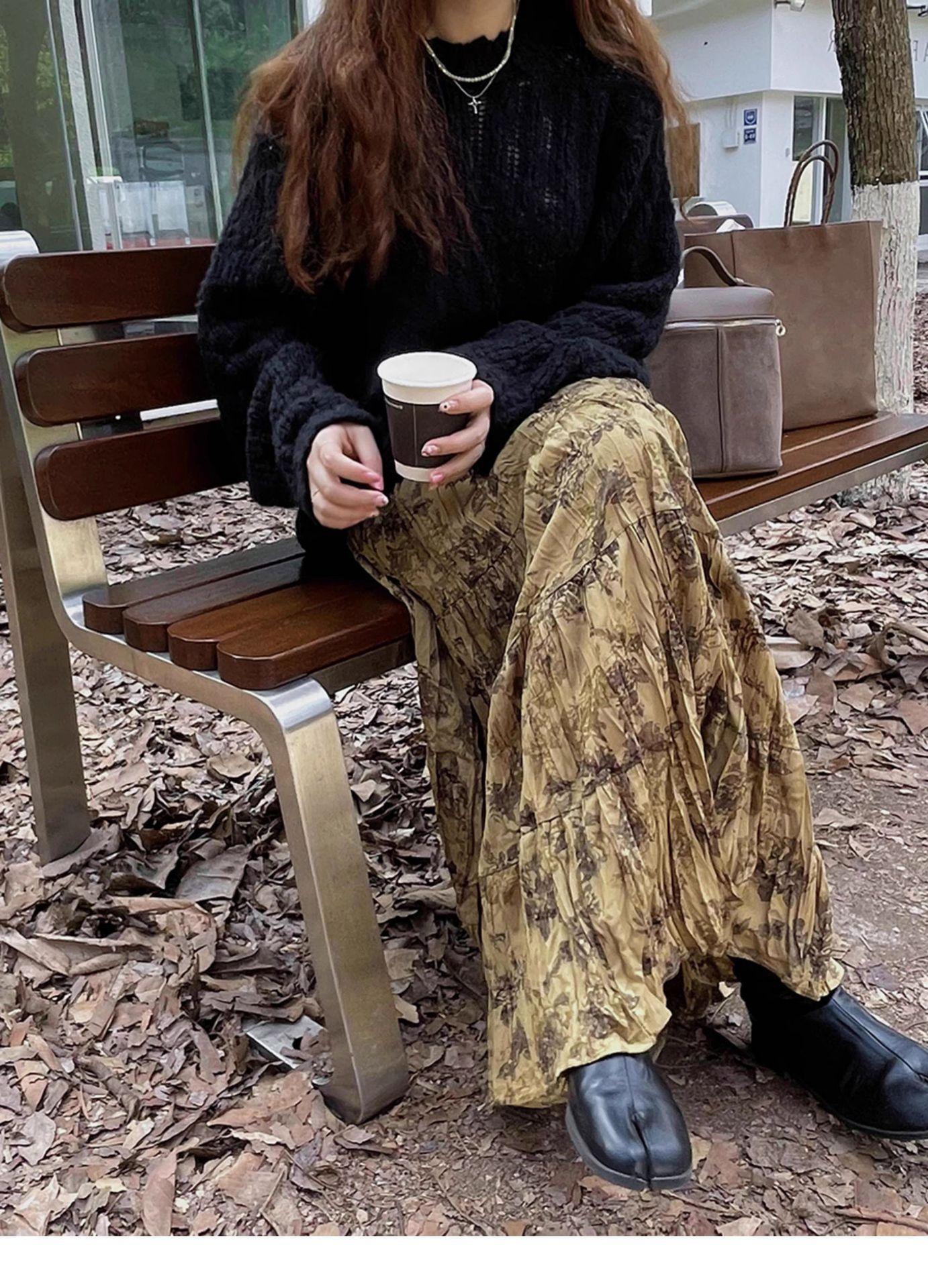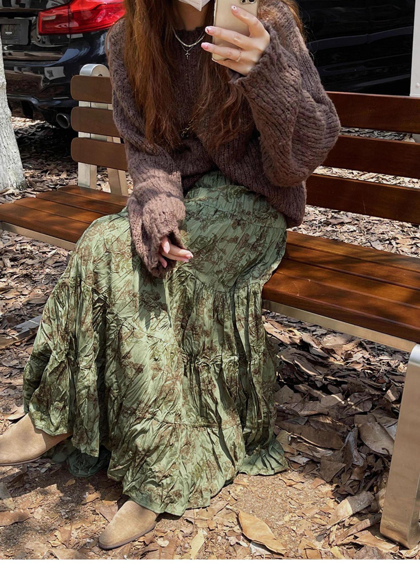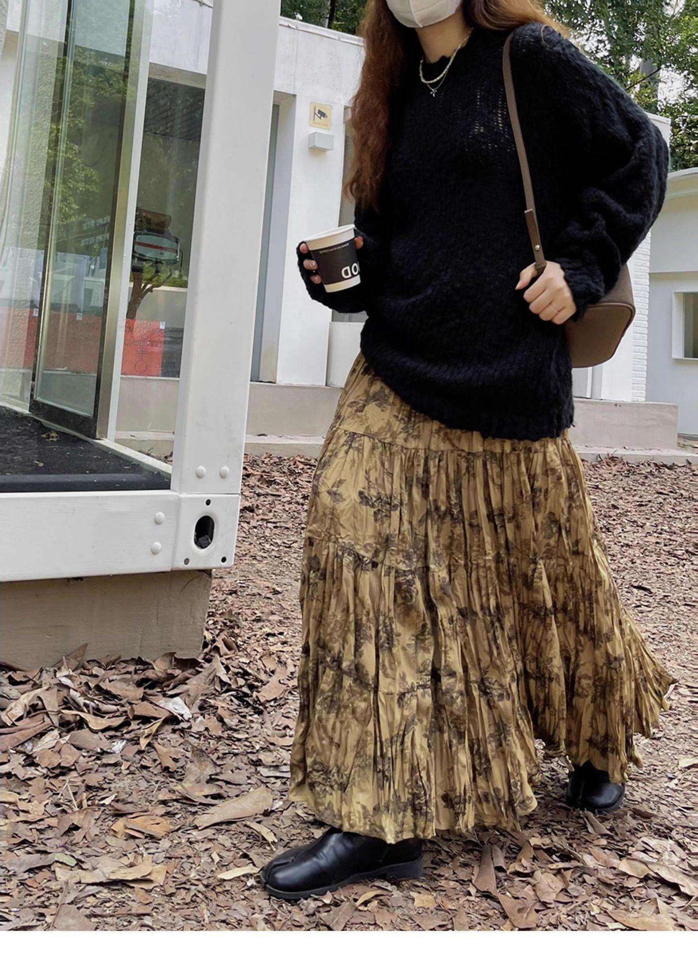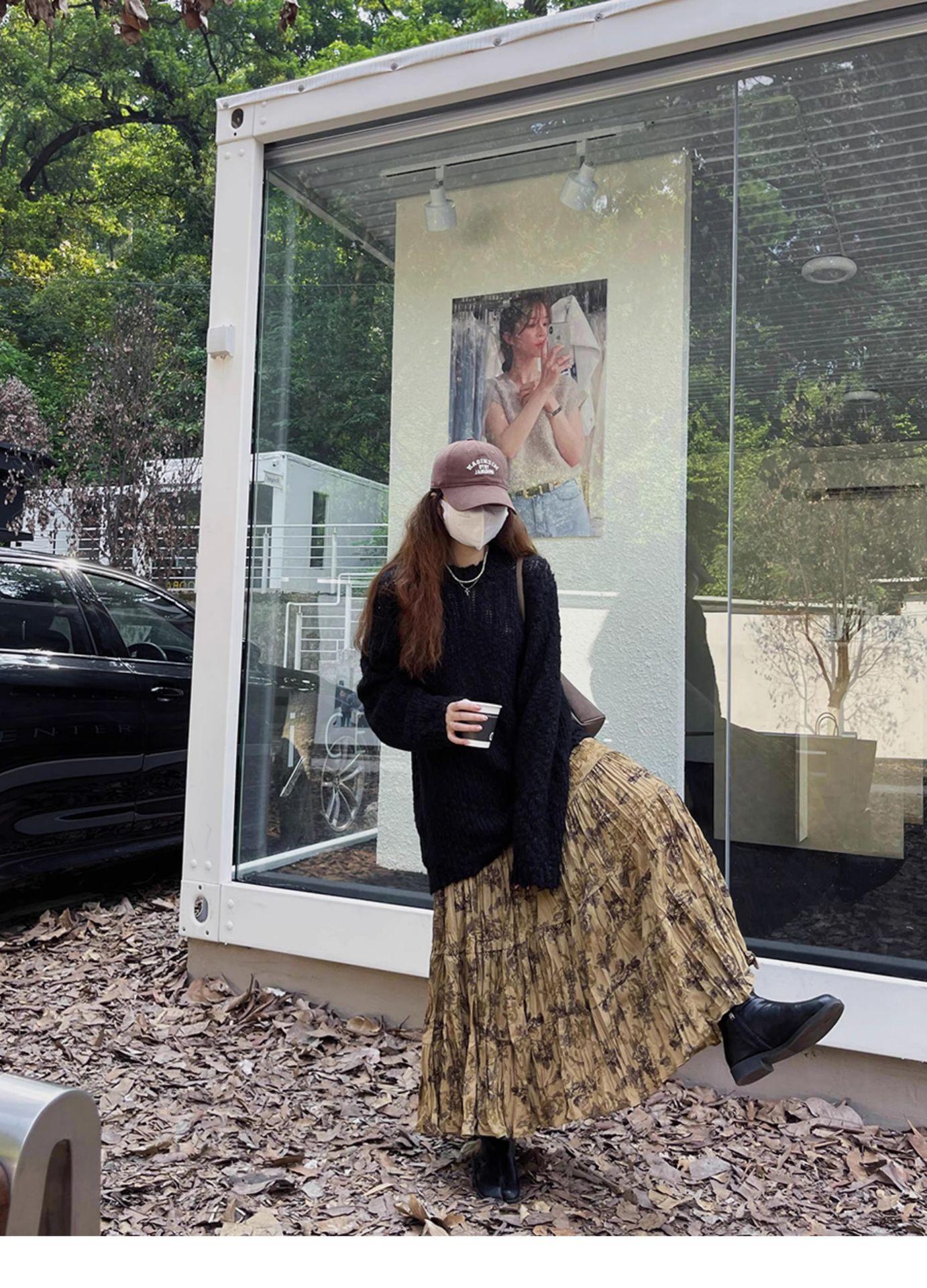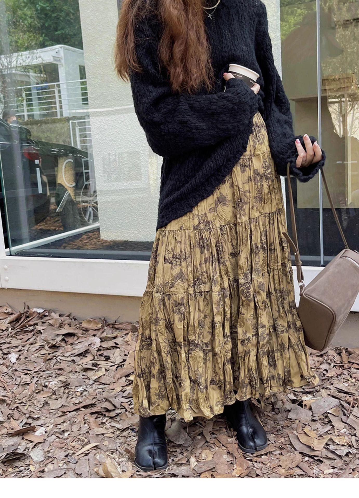 Falda Larga Patchwork de Cintura Alta Estilo Coreano, Falda A-Line Plisada, Falda Floral Vintage, Casual y Versátil para Otoño