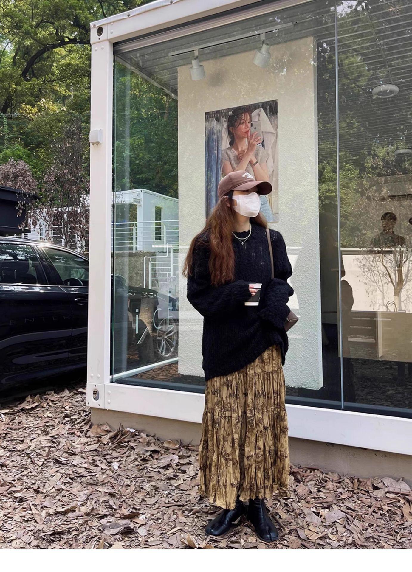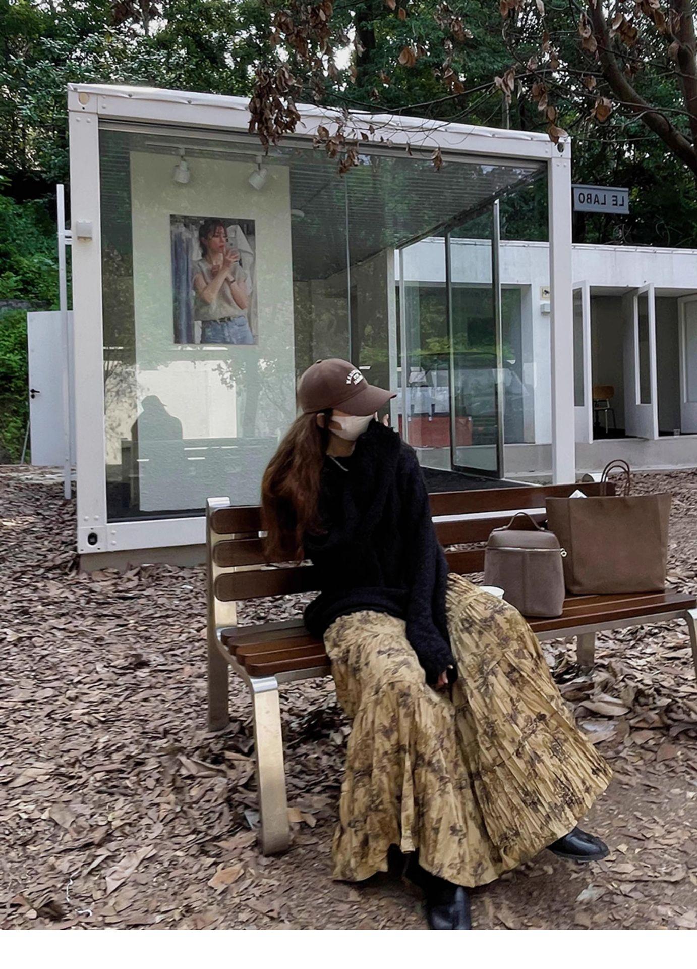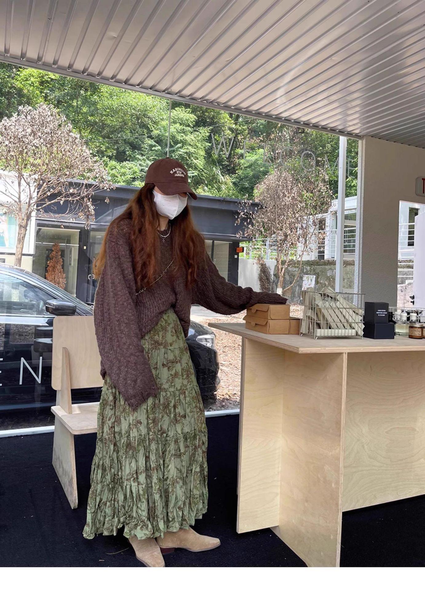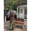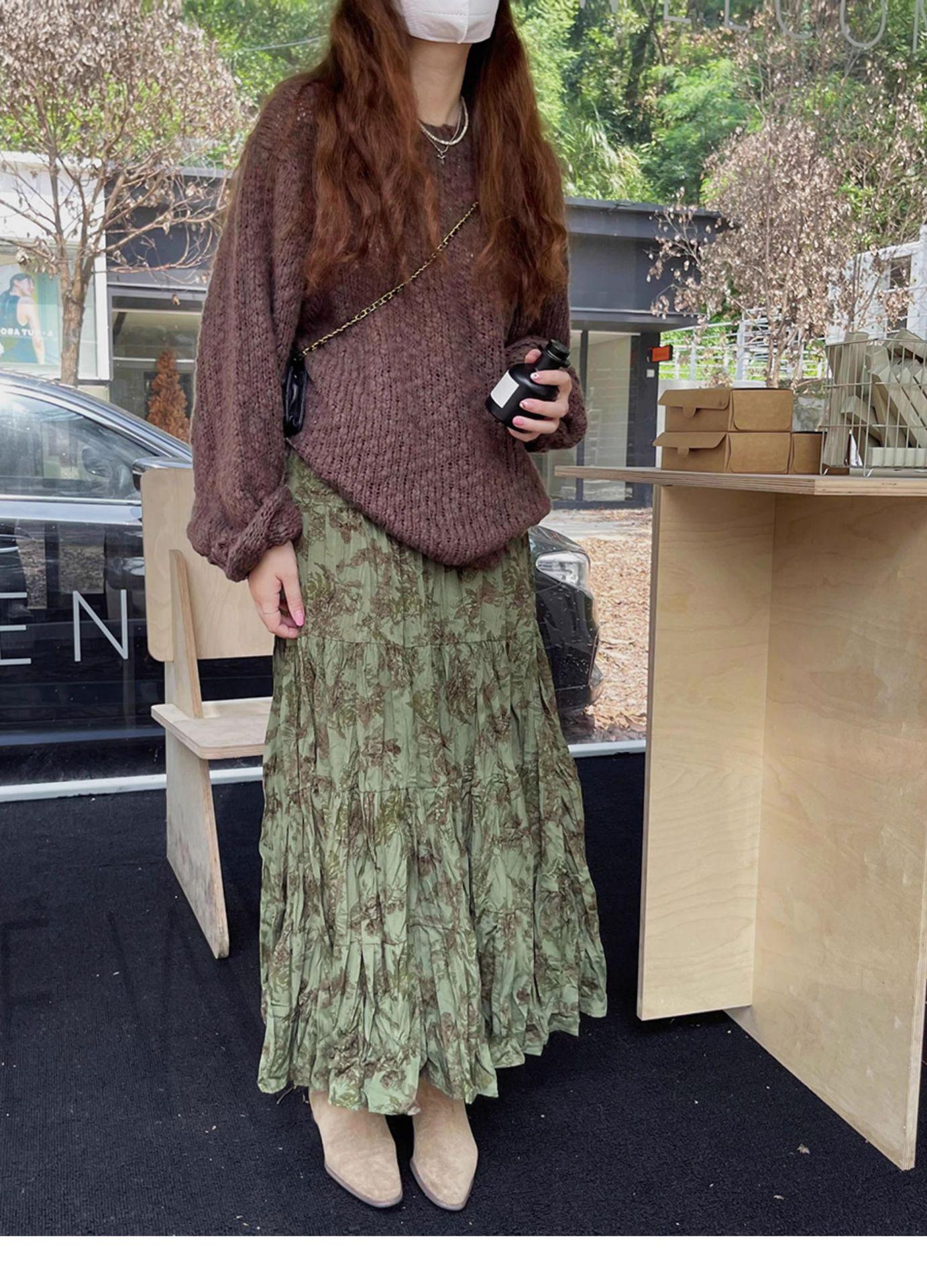 Falda Larga Patchwork de Cintura Alta Estilo Coreano, Falda A-Line Plisada, Falda Floral Vintage, Casual y Versátil para Otoño
