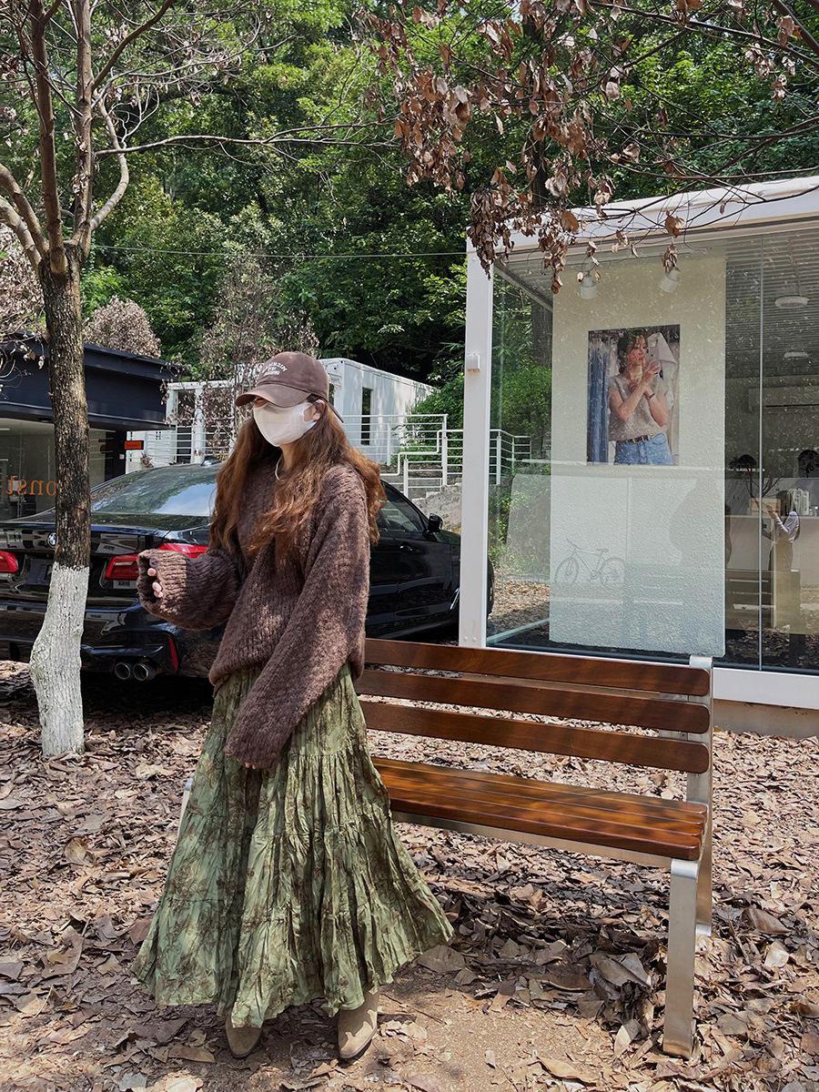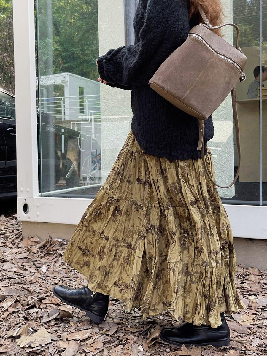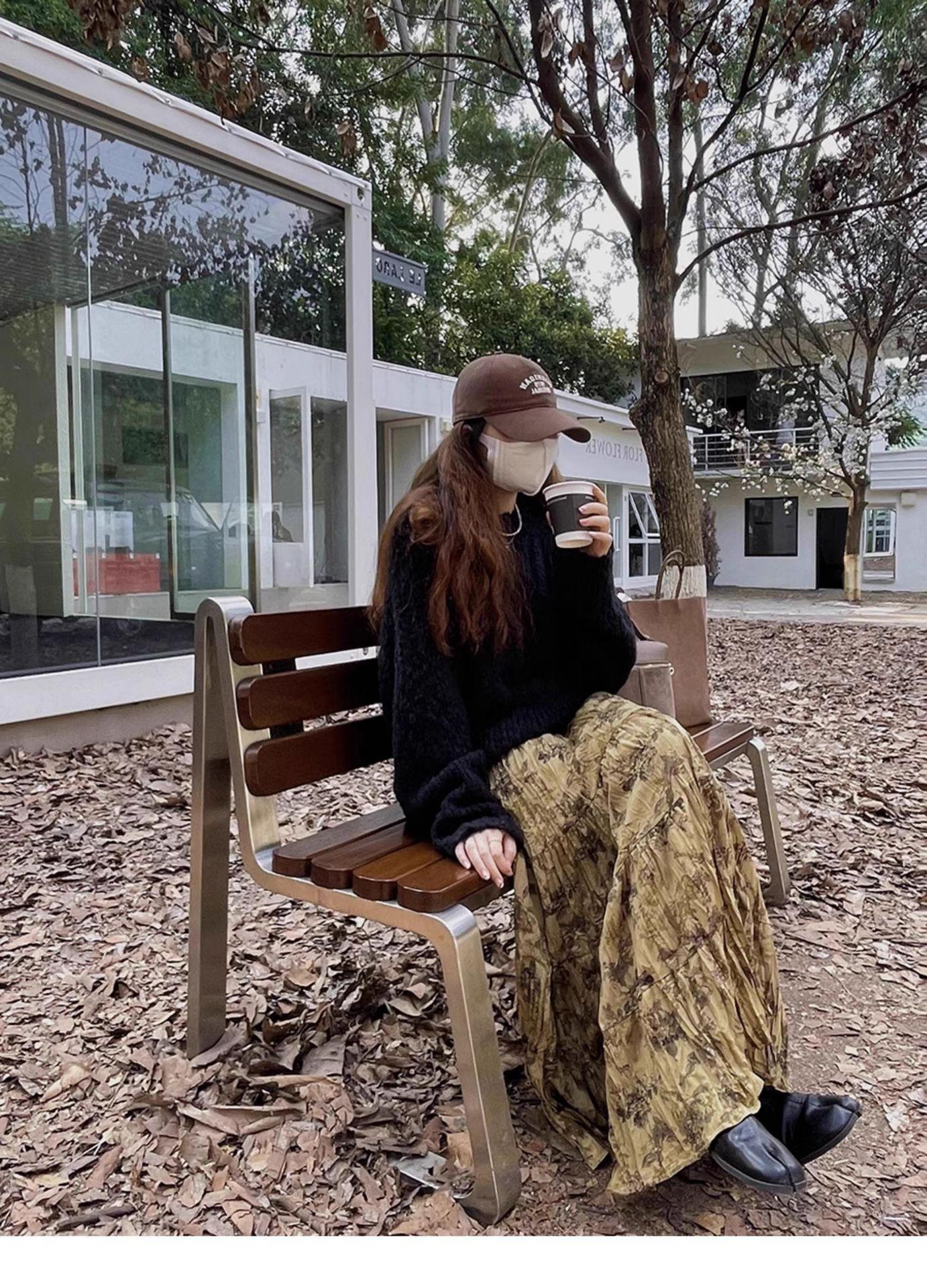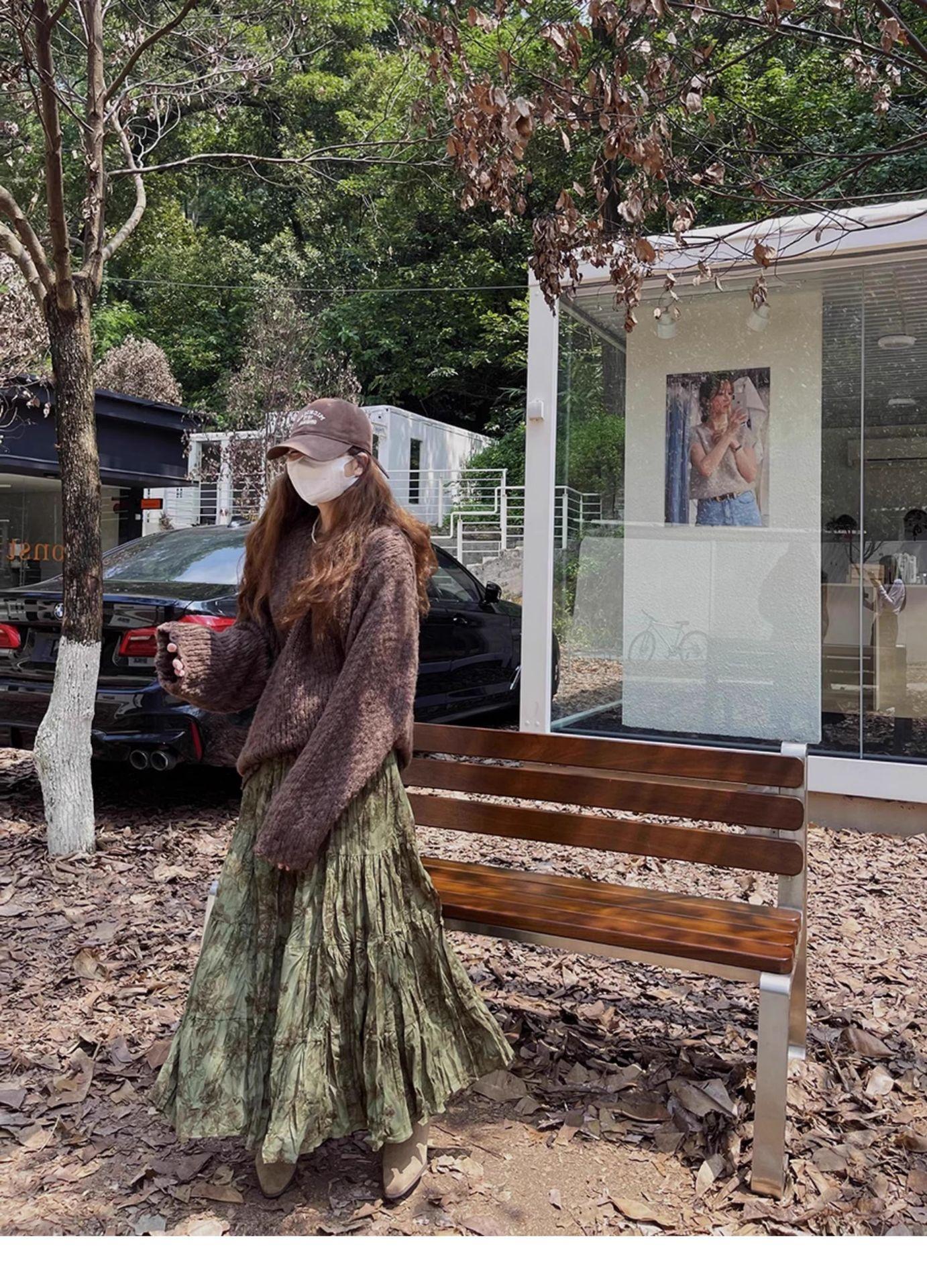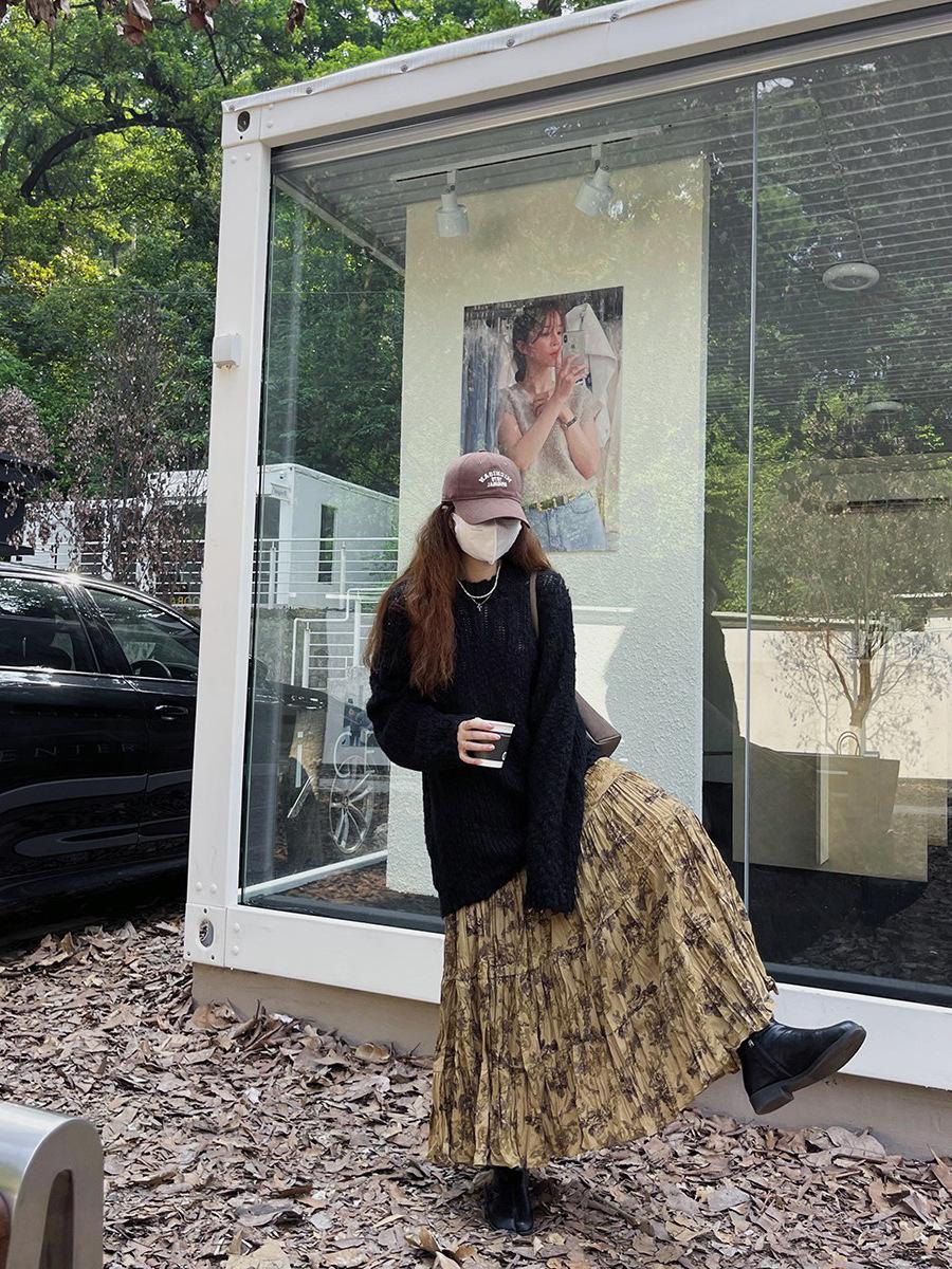 Falda Larga Patchwork de Cintura Alta Estilo Coreano, Falda A-Line Plisada, Falda Floral Vintage, Casual y Versátil para Otoño