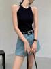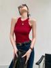 Camisola pequeña roja para mujer, prenda exterior de verano, hermosa espalda, traje interior sin mangas, hombros descubiertos, cuello alto, top dulce