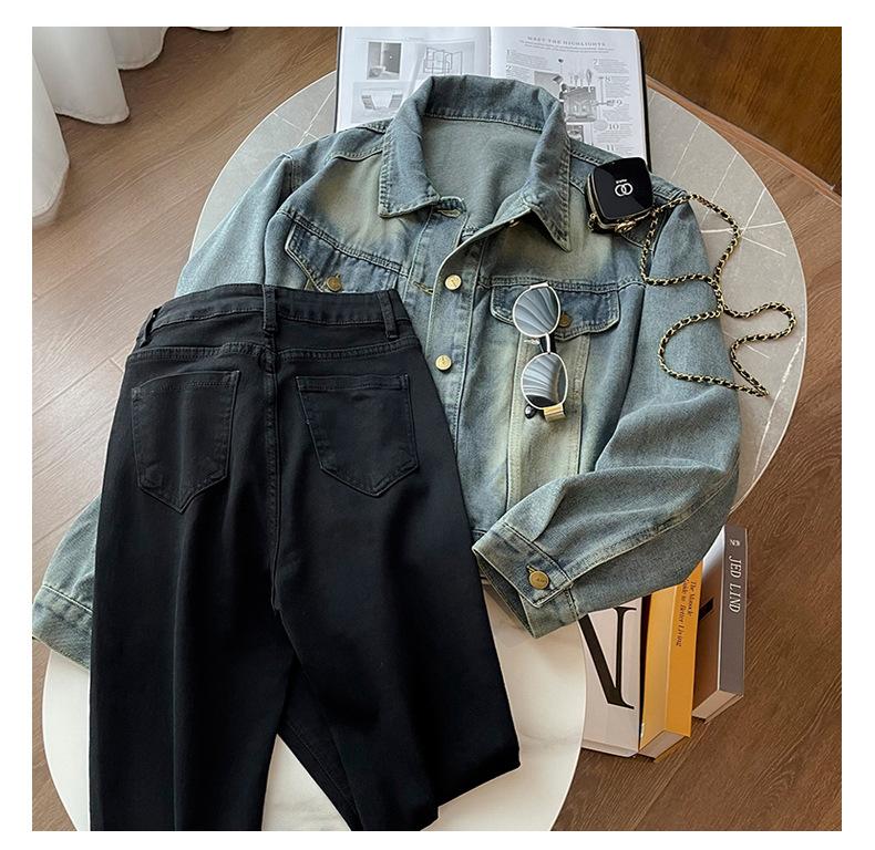 Black bootcut pants, Light blue coat, Brown coat, Black coat