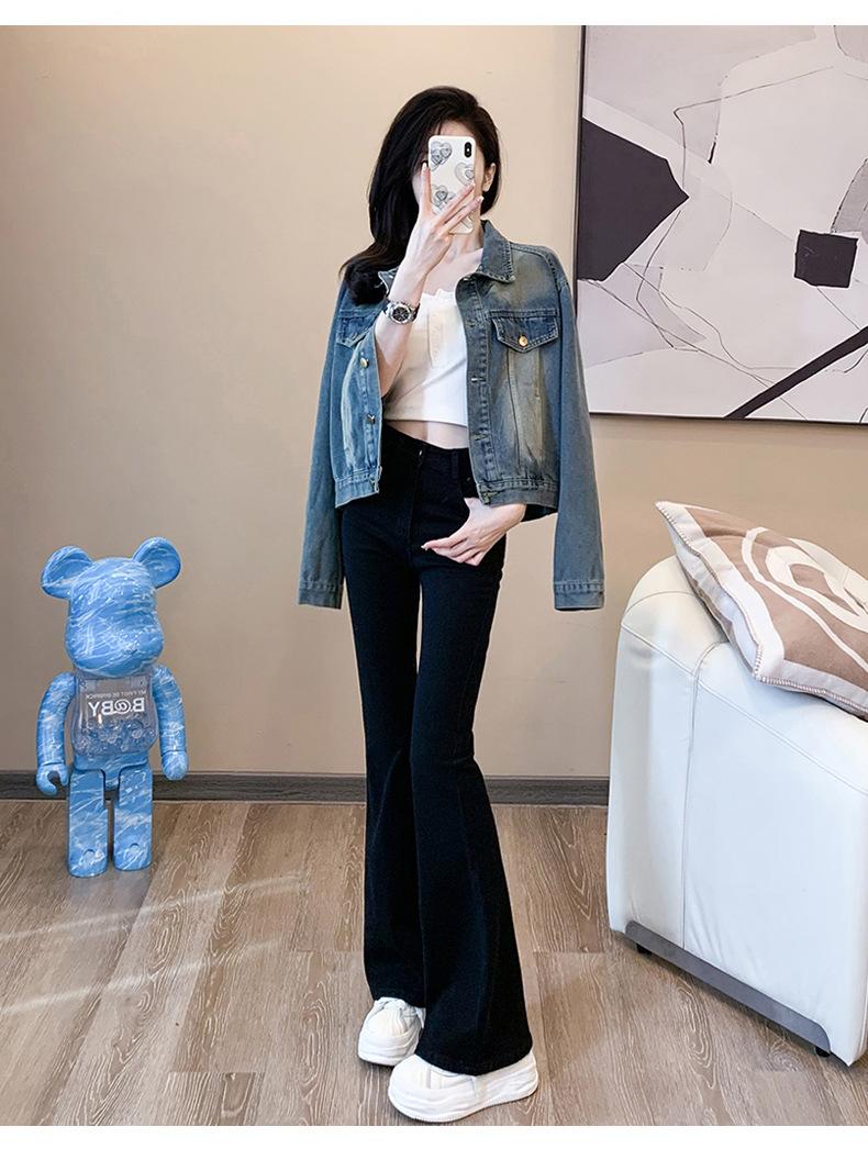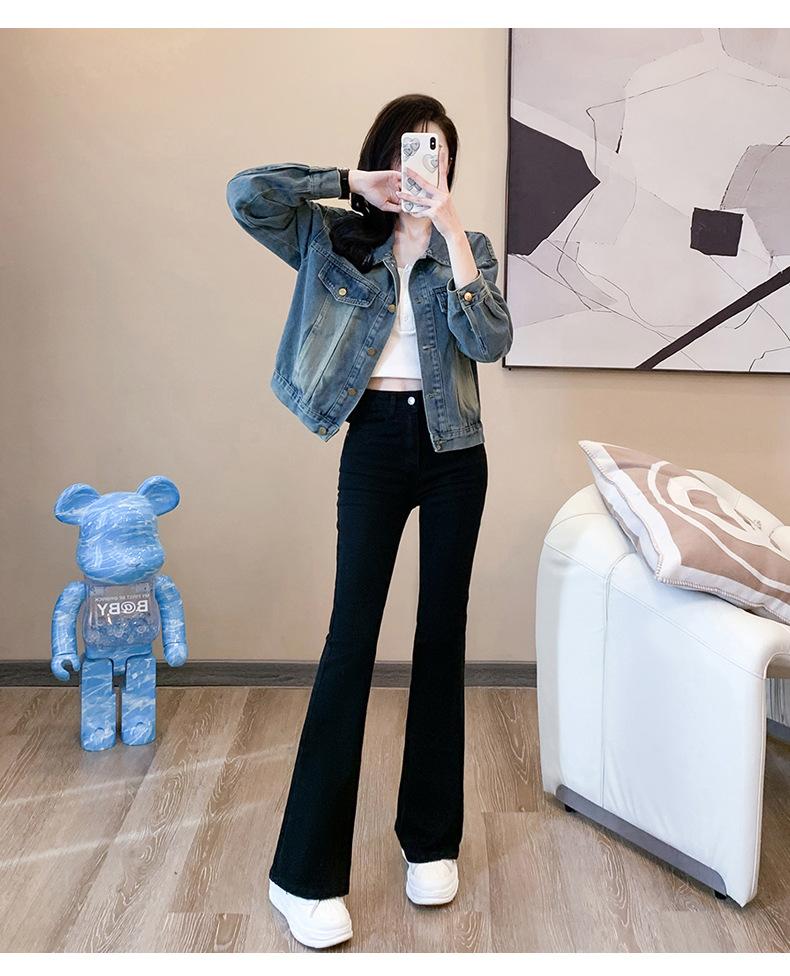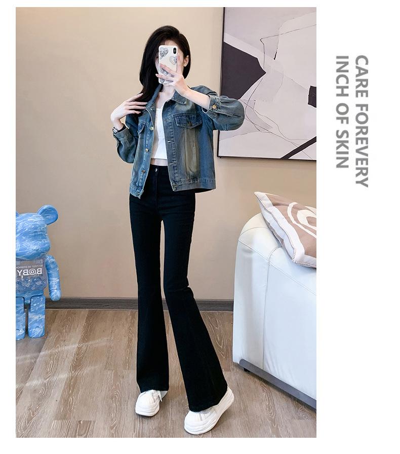 Jeans ajustados negros de cintura alta para mujer, nuevos para primavera y otoño 2025, de alta elasticidad, corte ajustado, adelgazantes, combinan con todo, pantalones acampanados