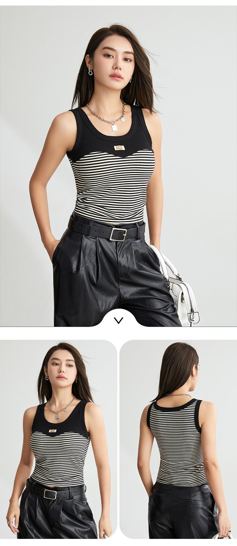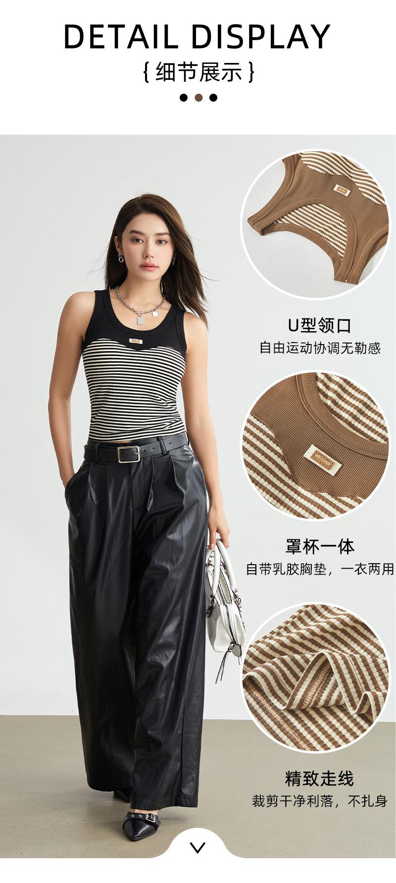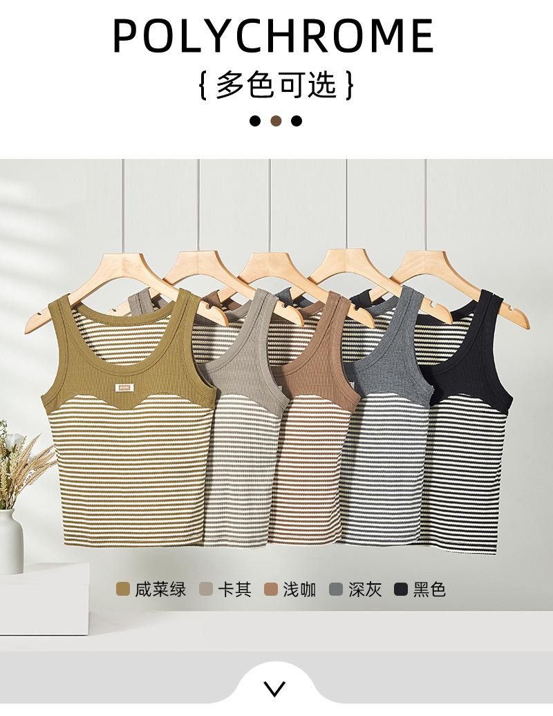 Chaleco corto a rayas con hombros anchos para mujer, prenda exterior sin mangas con almohadilla para el pecho integrada, estilo informal, primavera y verano, 2025