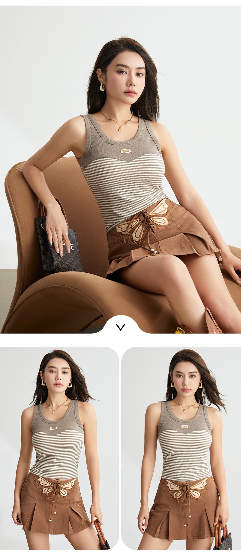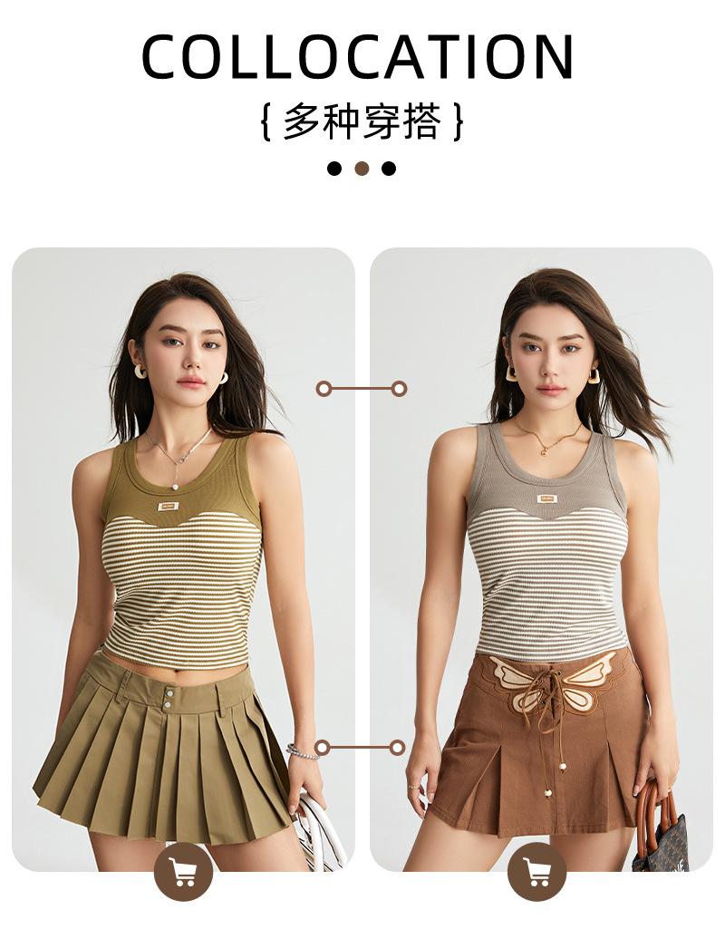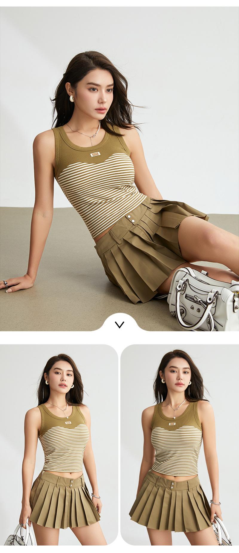 Chaleco corto a rayas con hombros anchos para mujer, prenda exterior sin mangas con almohadilla para el pecho integrada, estilo informal, primavera y verano, 2025