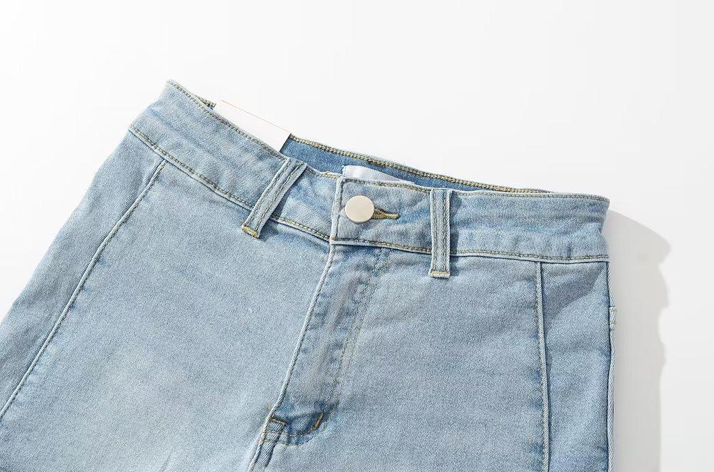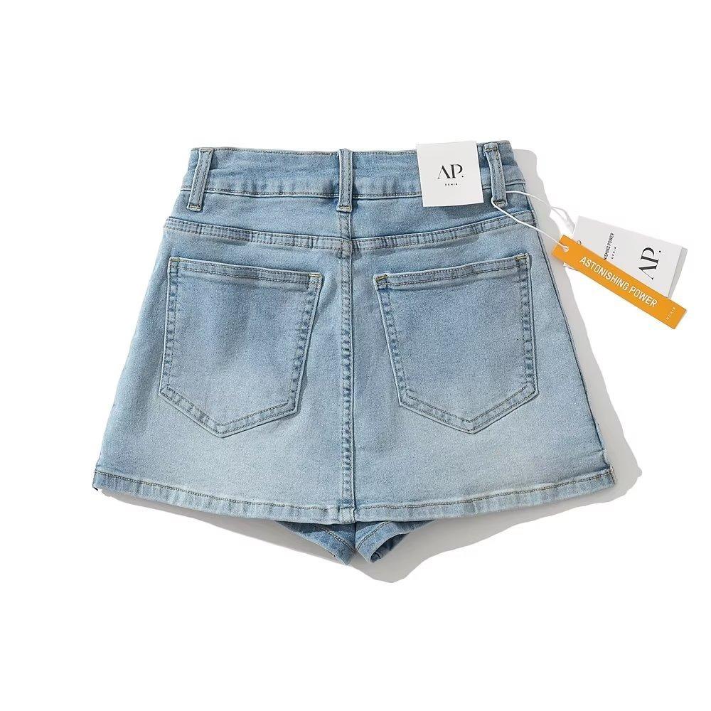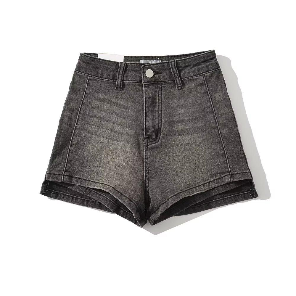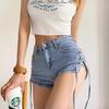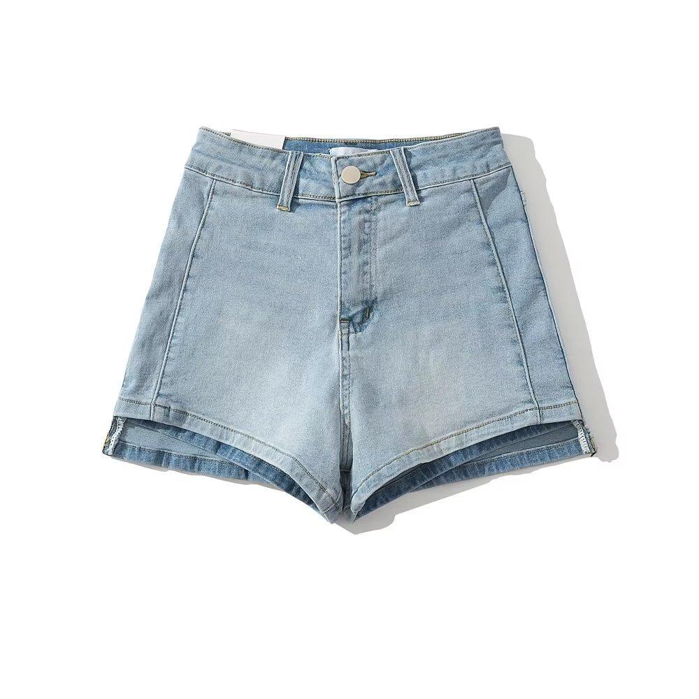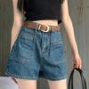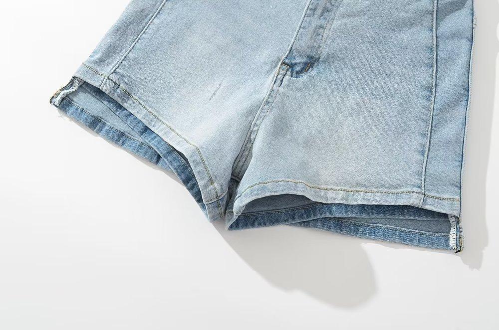 Shorts de mezclilla rectos lavados en blanco cepillado estilo europeo y americano con bolsillo trasero para mujer 2023 Verano nuevo cintura alta adelgazantes pantalones cortos
