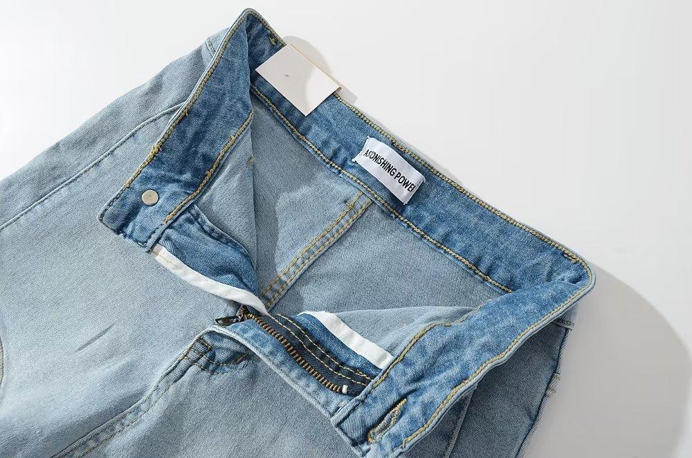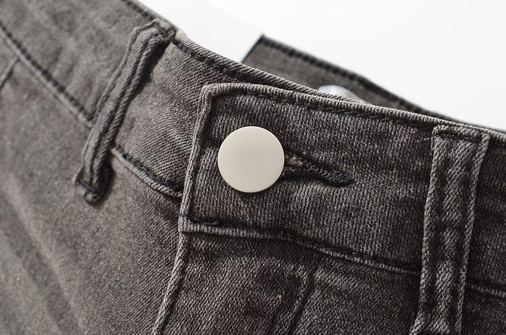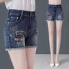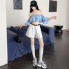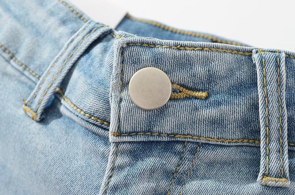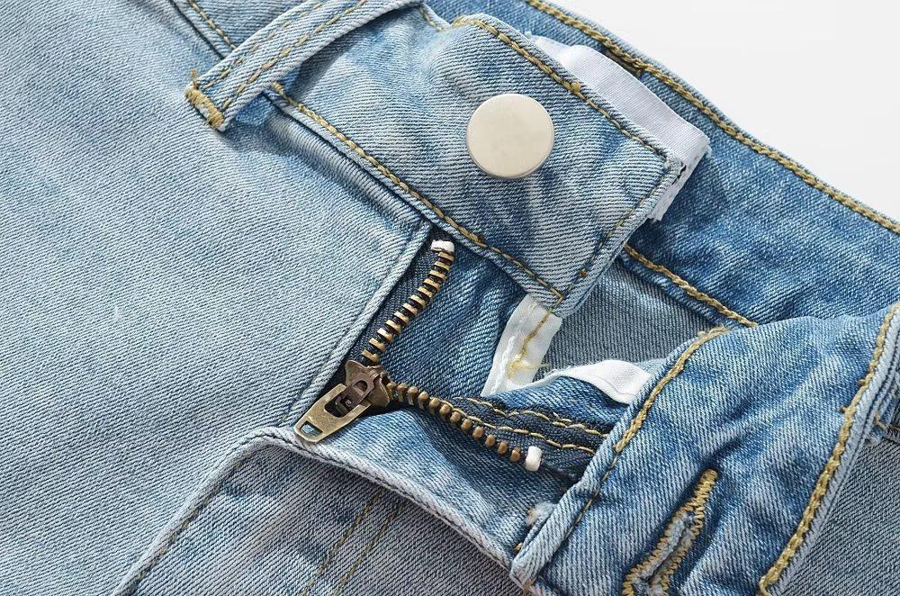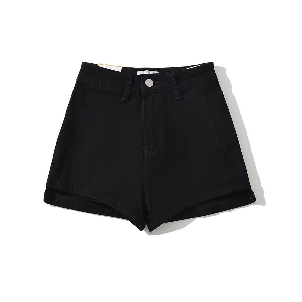 Shorts de mezclilla rectos lavados en blanco cepillado estilo europeo y americano con bolsillo trasero para mujer 2023 Verano nuevo cintura alta adelgazantes pantalones cortos