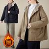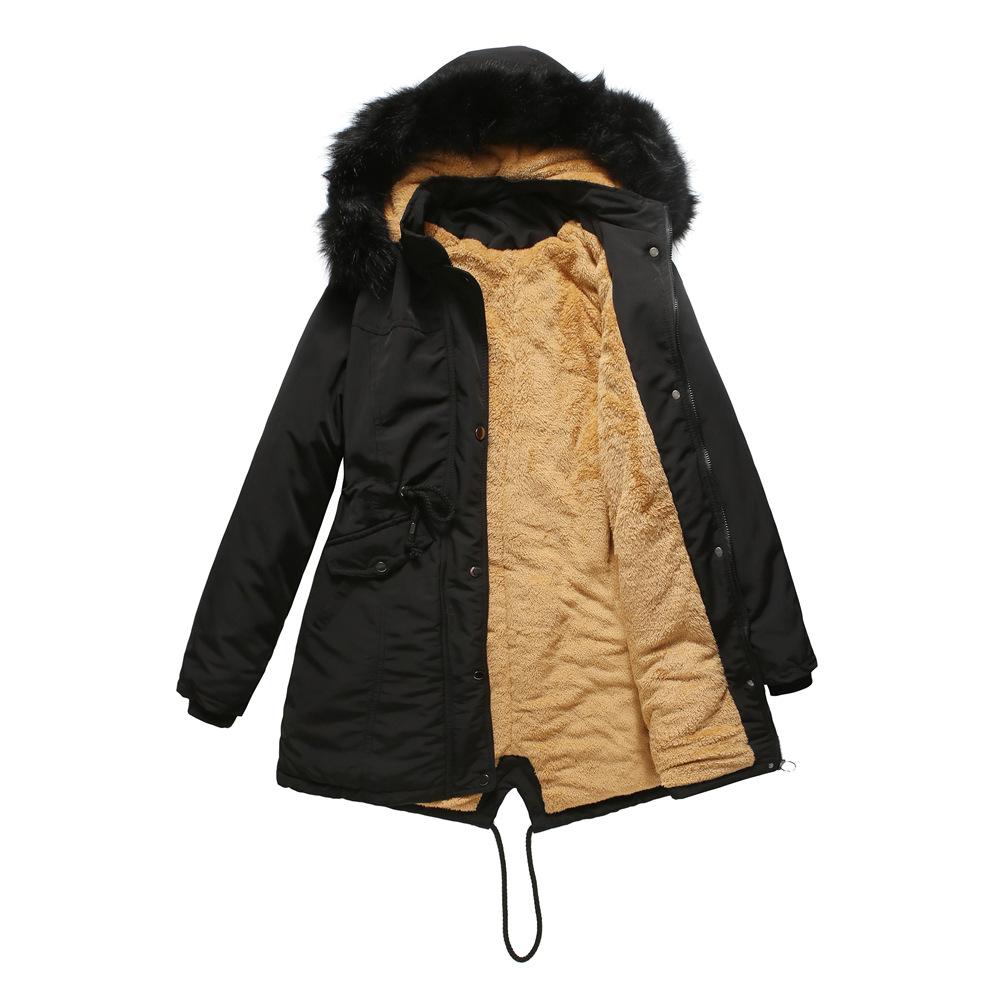 Abrigo de Algodón Cálido Nuevo de Otoño e Invierno 2020 Chaqueta Acolchada de Algodón Grueso con Forro Polar para Mujer Abrigo con Capucha Desmontable y Cuello Grande de Lana