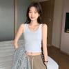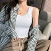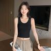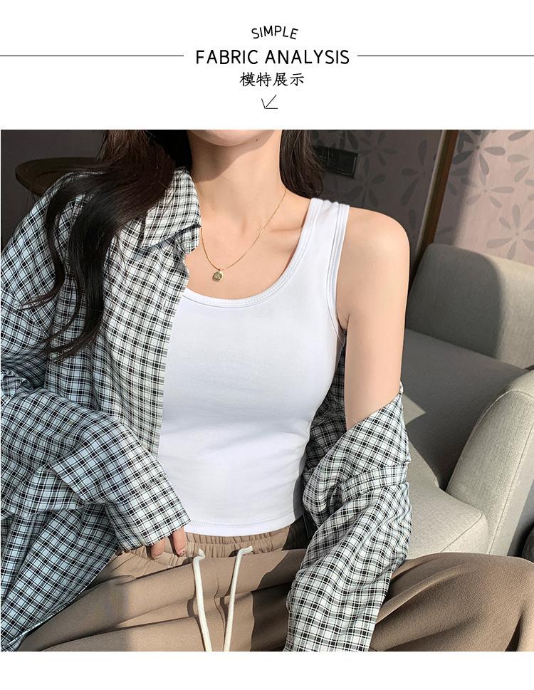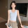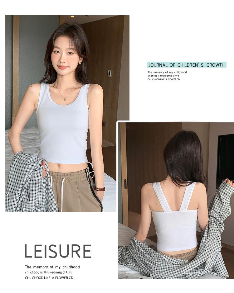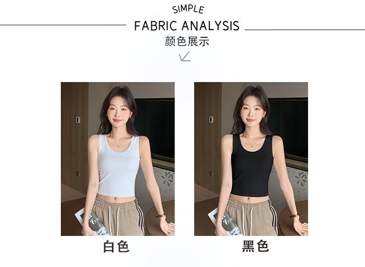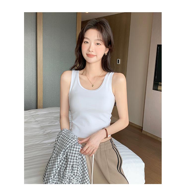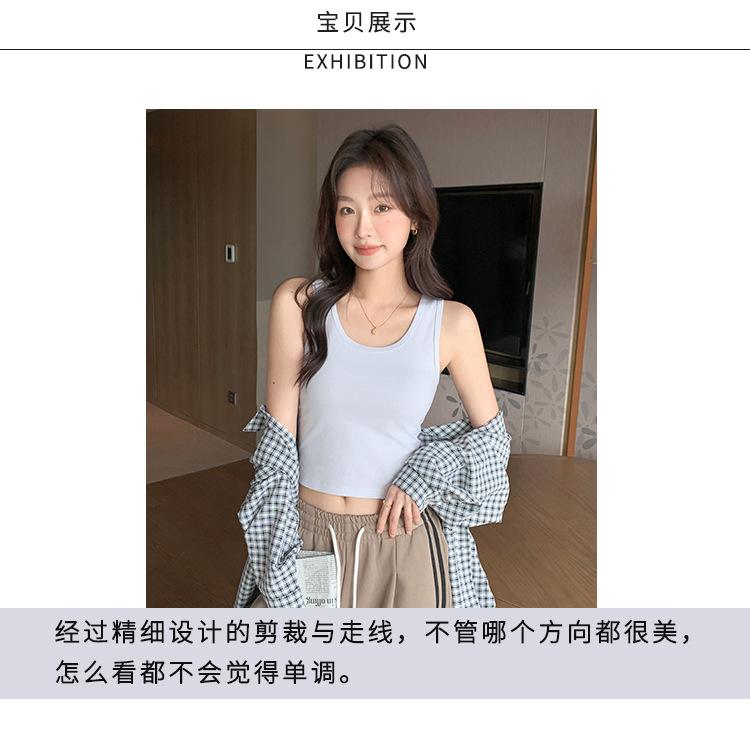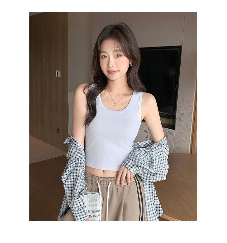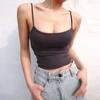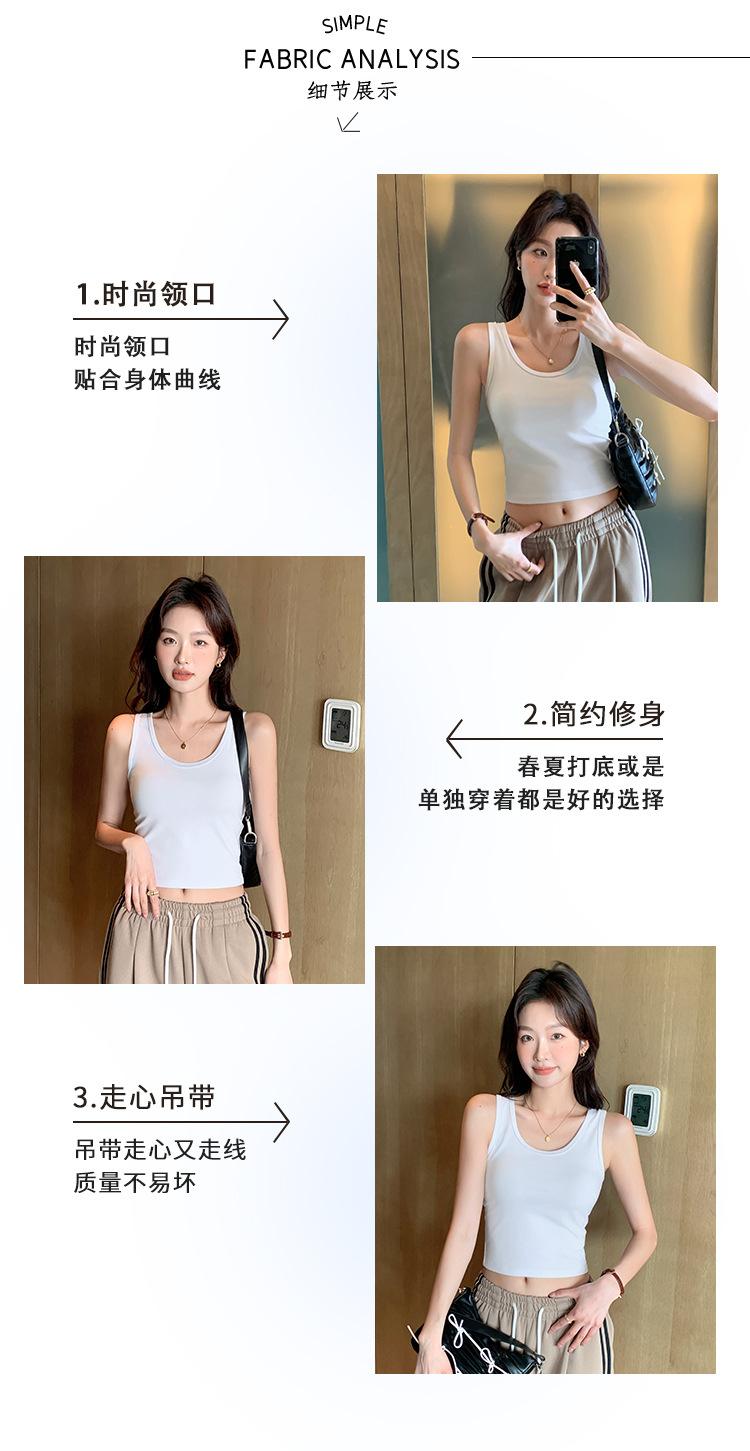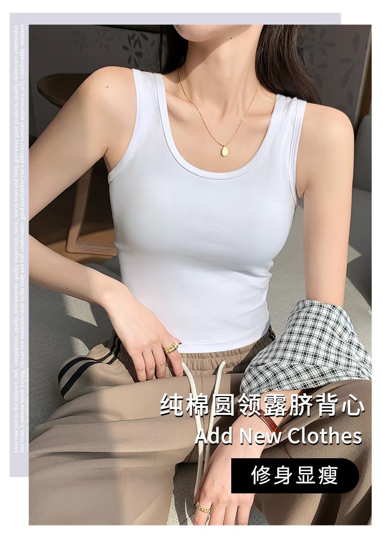 Verano Nuevo Ultracorto Color Puro Tirantes Algodón Puro Ajustado Cuello Redondo Ombliguera con Ombligo Expuesto y Capa Base Ajustada