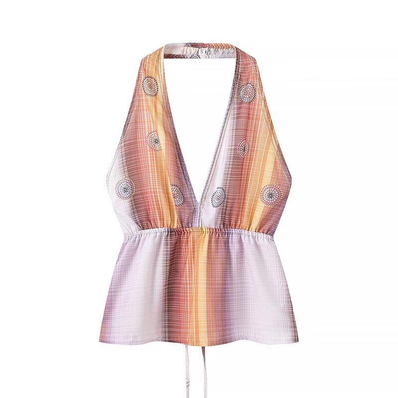 Novedad de verano 2024, top de tubo con estampado sin espalda de moda urbana transfronteriza europea y americana para mujer w091 1947