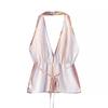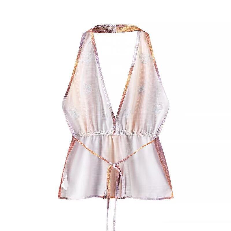 Blusa sin tirantes estampada con espalda descubierta para mujer, estilo urbano europeo y americano, 2024, 1947