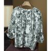 Huaye Primavera y Verano Seda Falsa Dos Piezas Estampada Nueva Camiseta de Manga Tres Cuartos para Mujer Look Adelgazante Camisa Básica de Seda de Morera