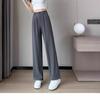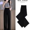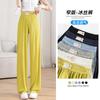 Pantalones de Pierna Ancha con Abertura de Seda Helada para Mujer 2024 Verano Delgados Versión Pequeña Estrecha Drapeados Seda Cupro Casual Rectos
