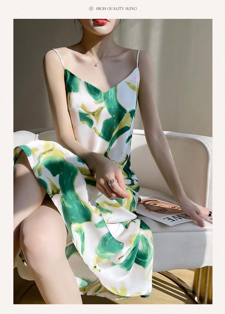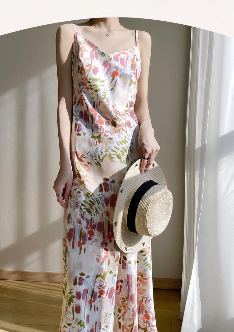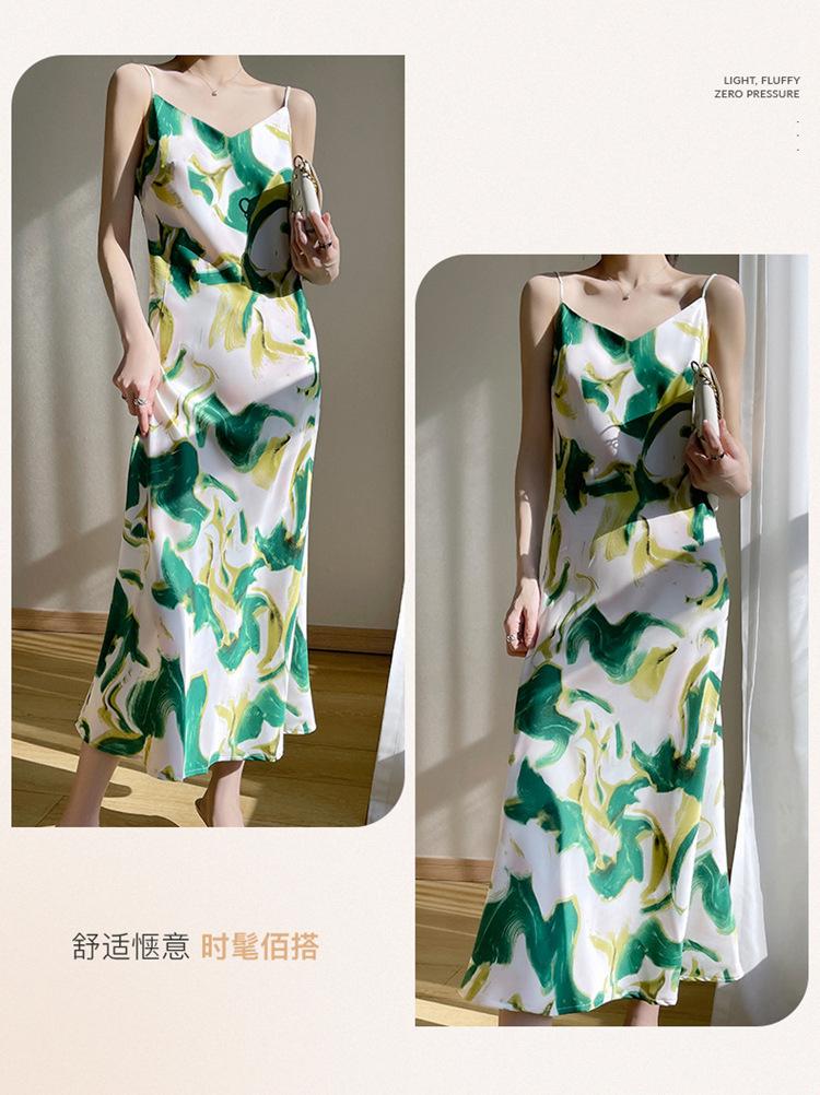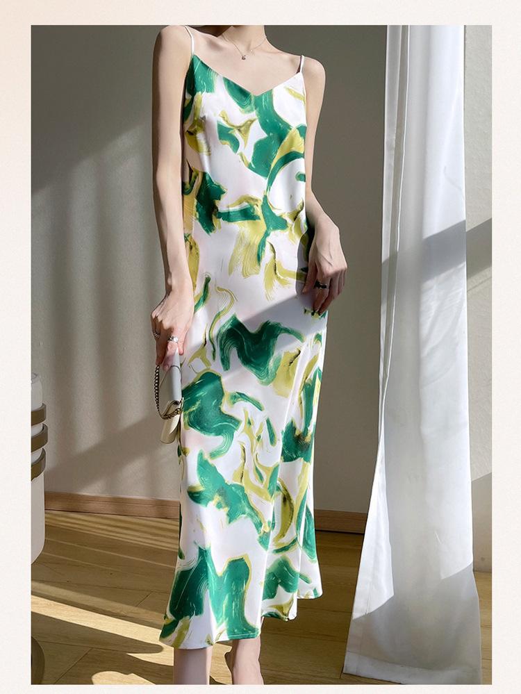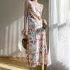 Vestido lencero de seda con escote en V y estampado floral para mujer, largo y sexy, de verano 2023
