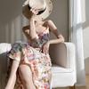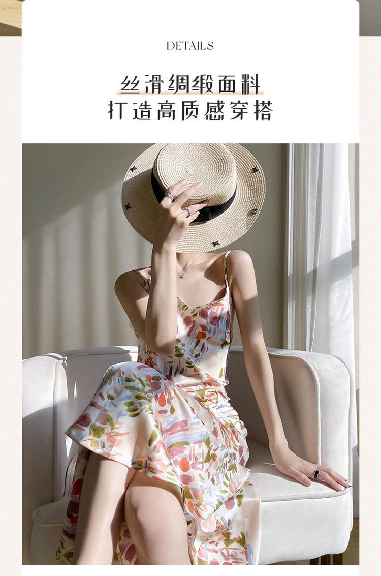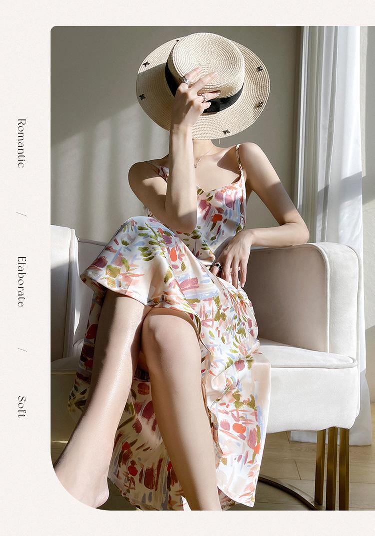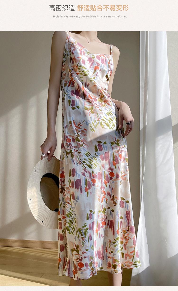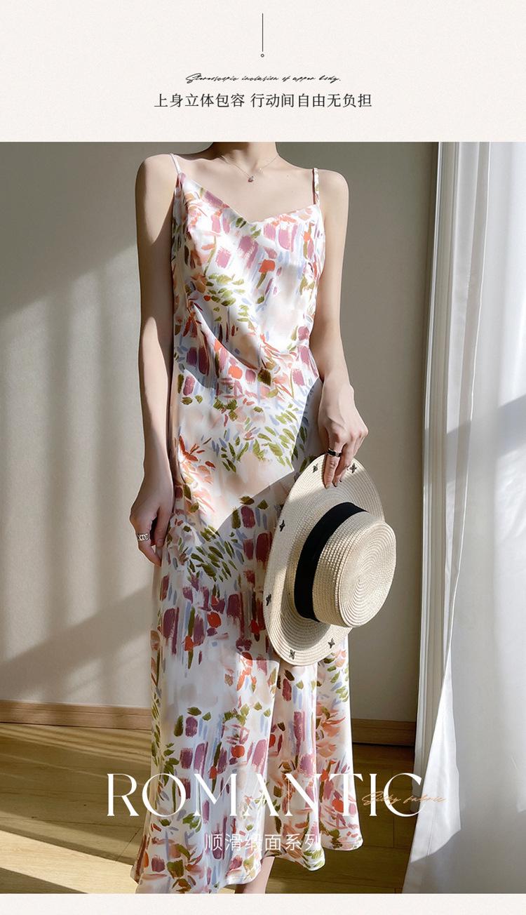 Vestido lencero de seda con escote en V y estampado floral para mujer, largo y sexy, de verano 2023