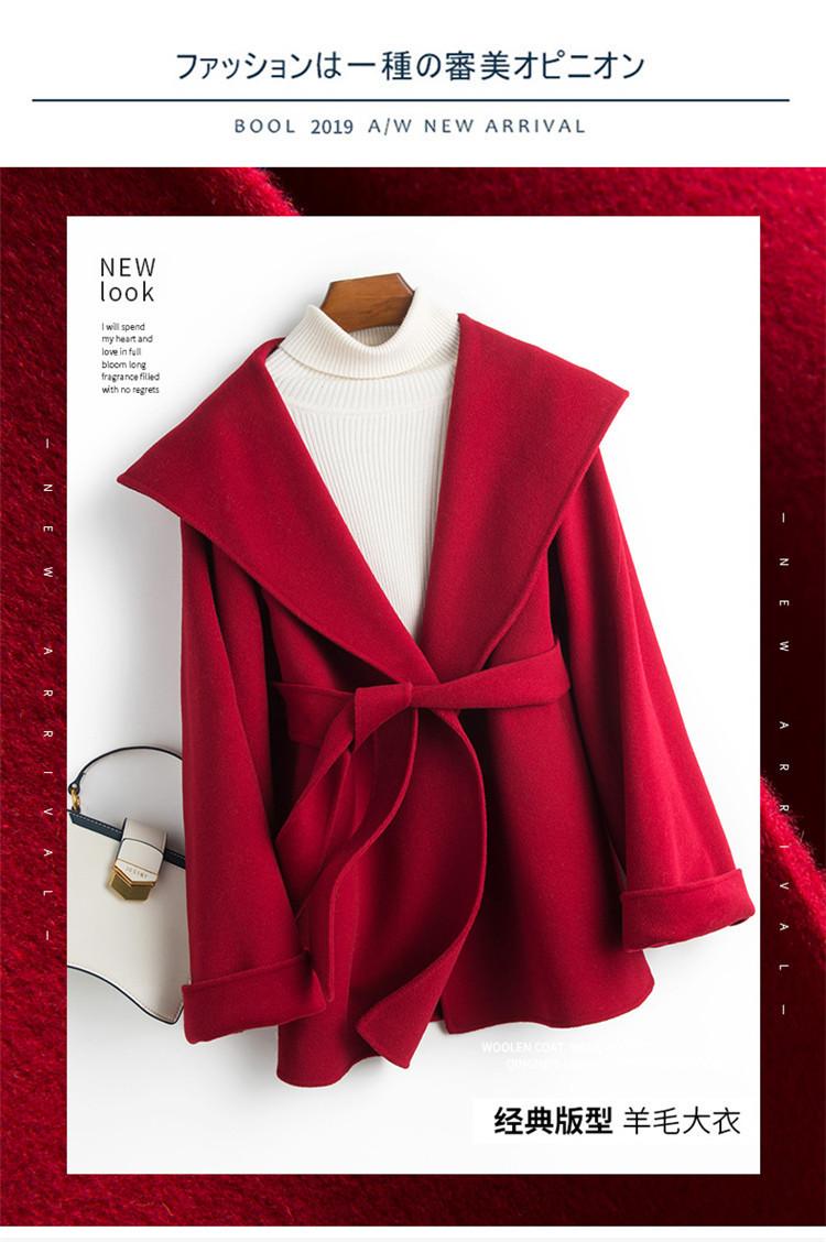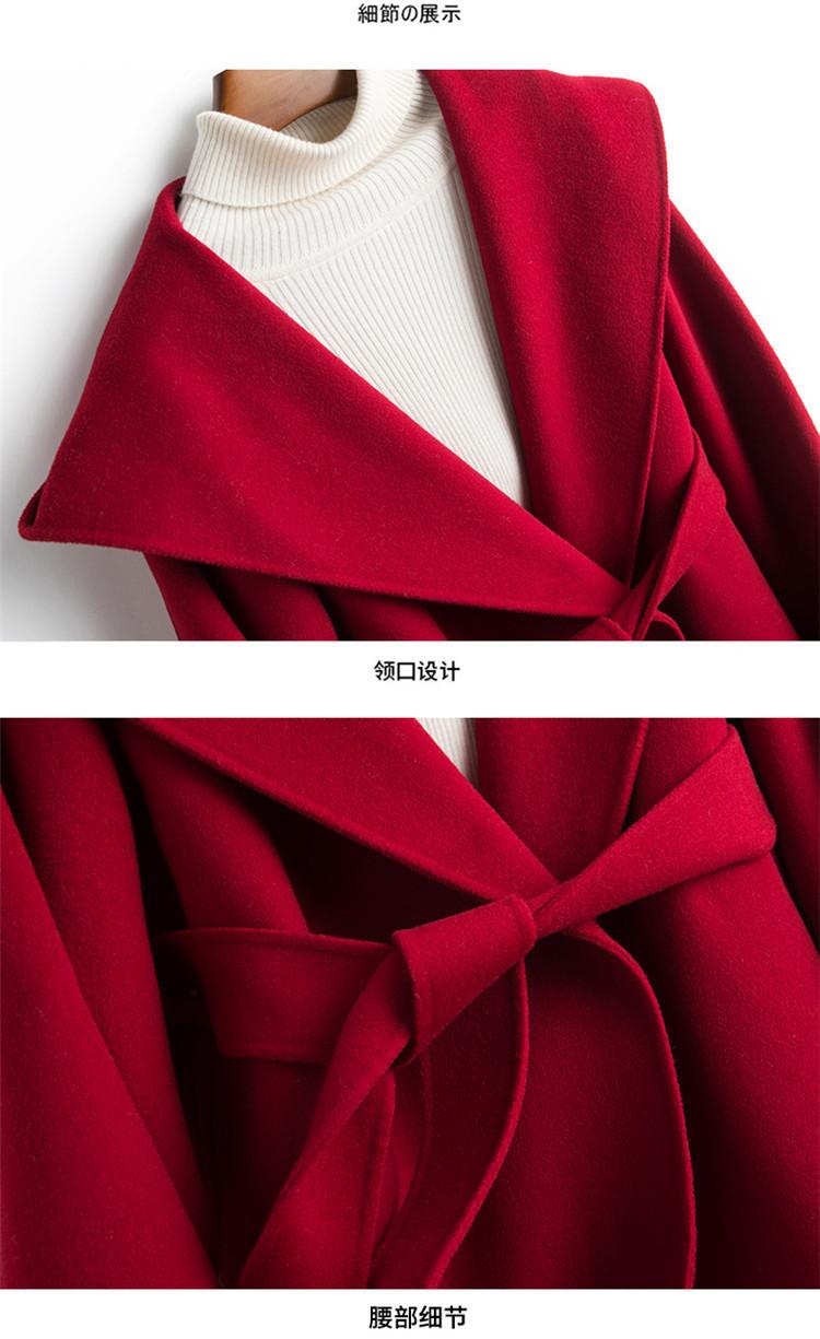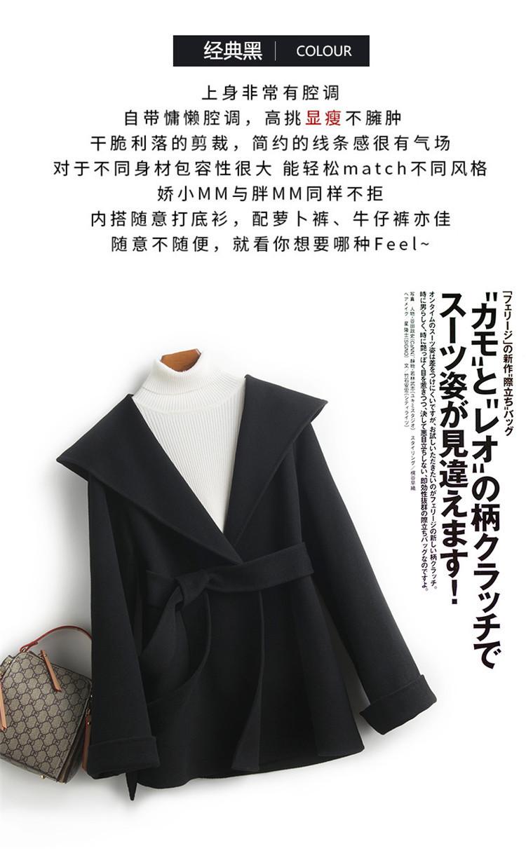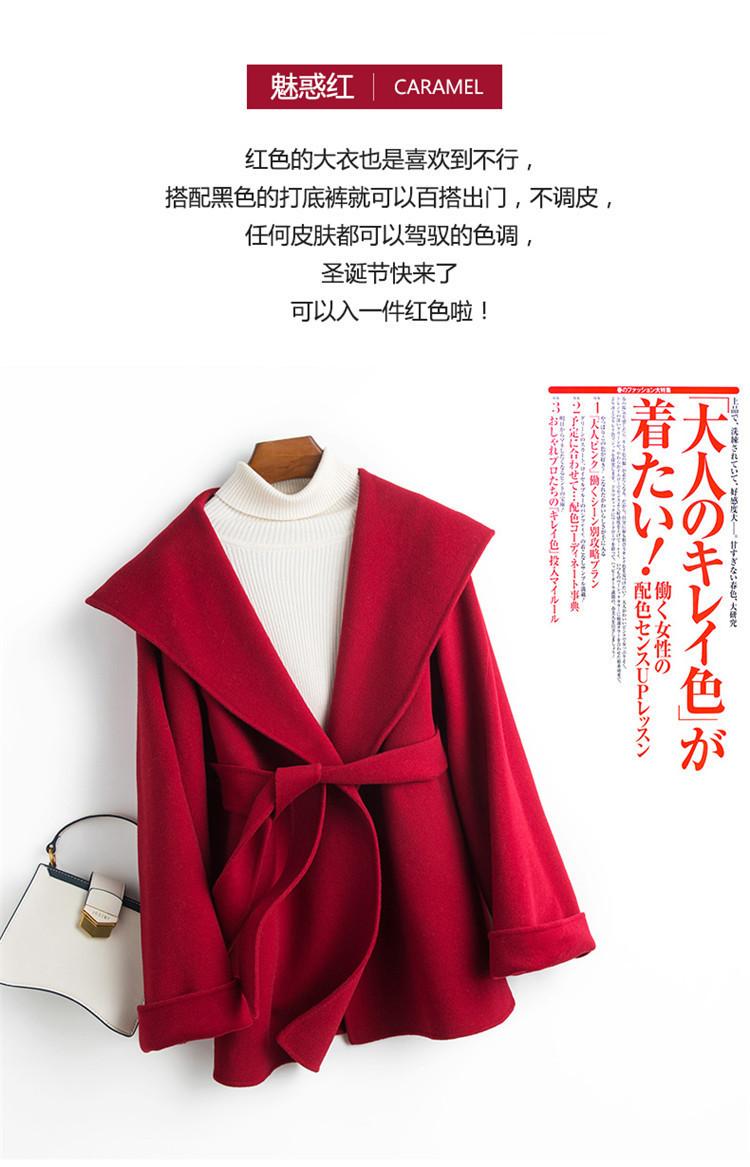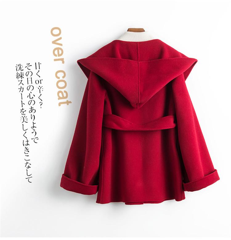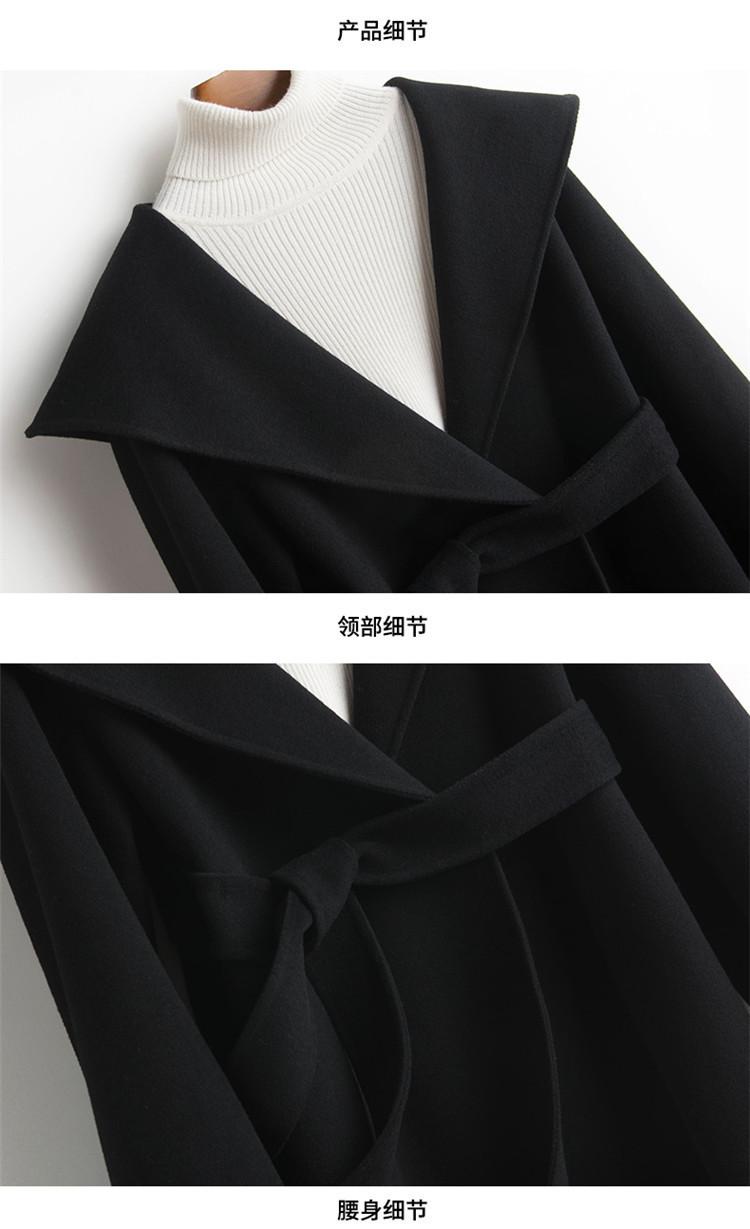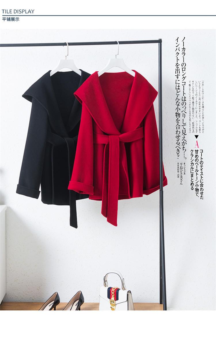 Abrigo de lana de doble cara con solapa y capucha para mujer, abrigo de lana grueso de otoño e invierno, suelto, nuevo estilo