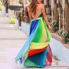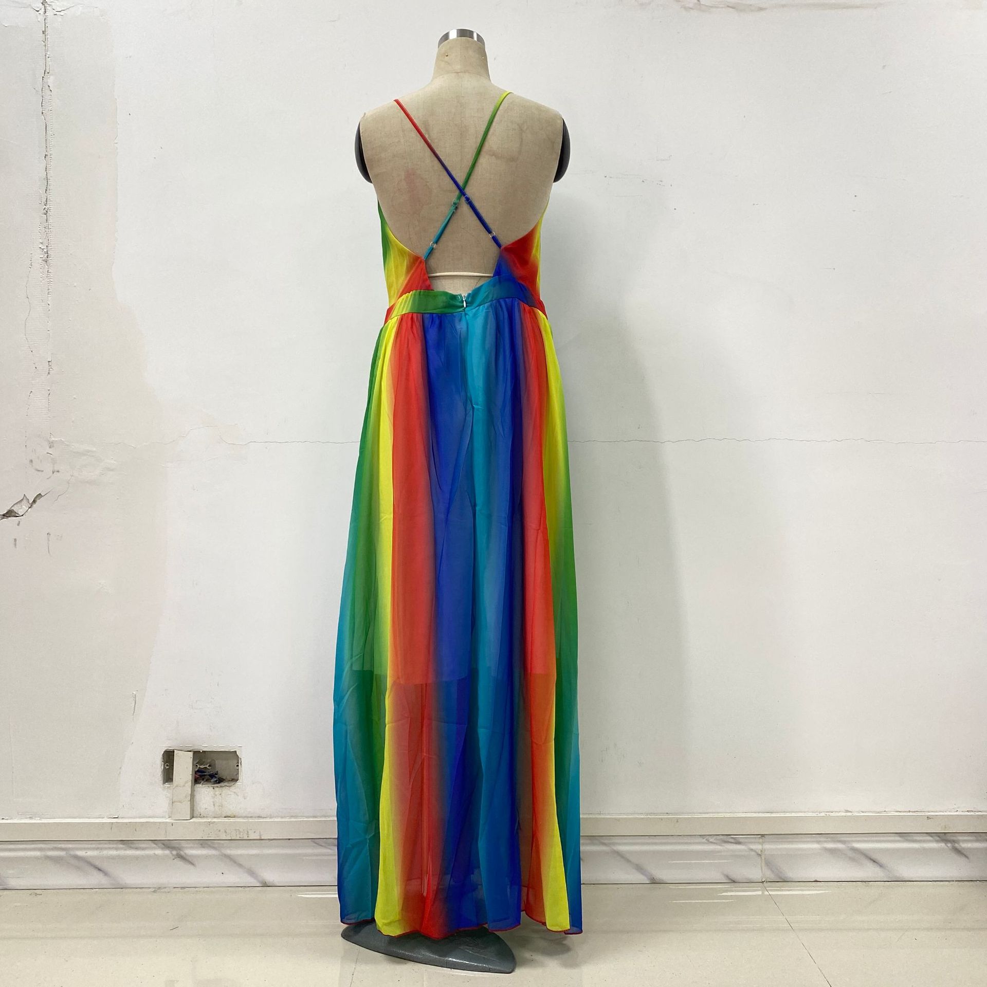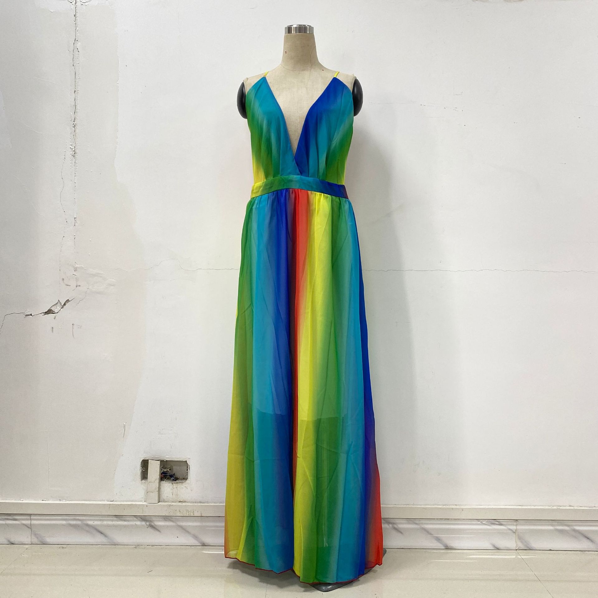Primavera y Verano 2025 Nuevo Europeo y Americano Exportación Transfronteriza para Mujer Nuevo Transfronterizo Sexy Profundo V Arcoíris Chifón Vestido de Tirantes