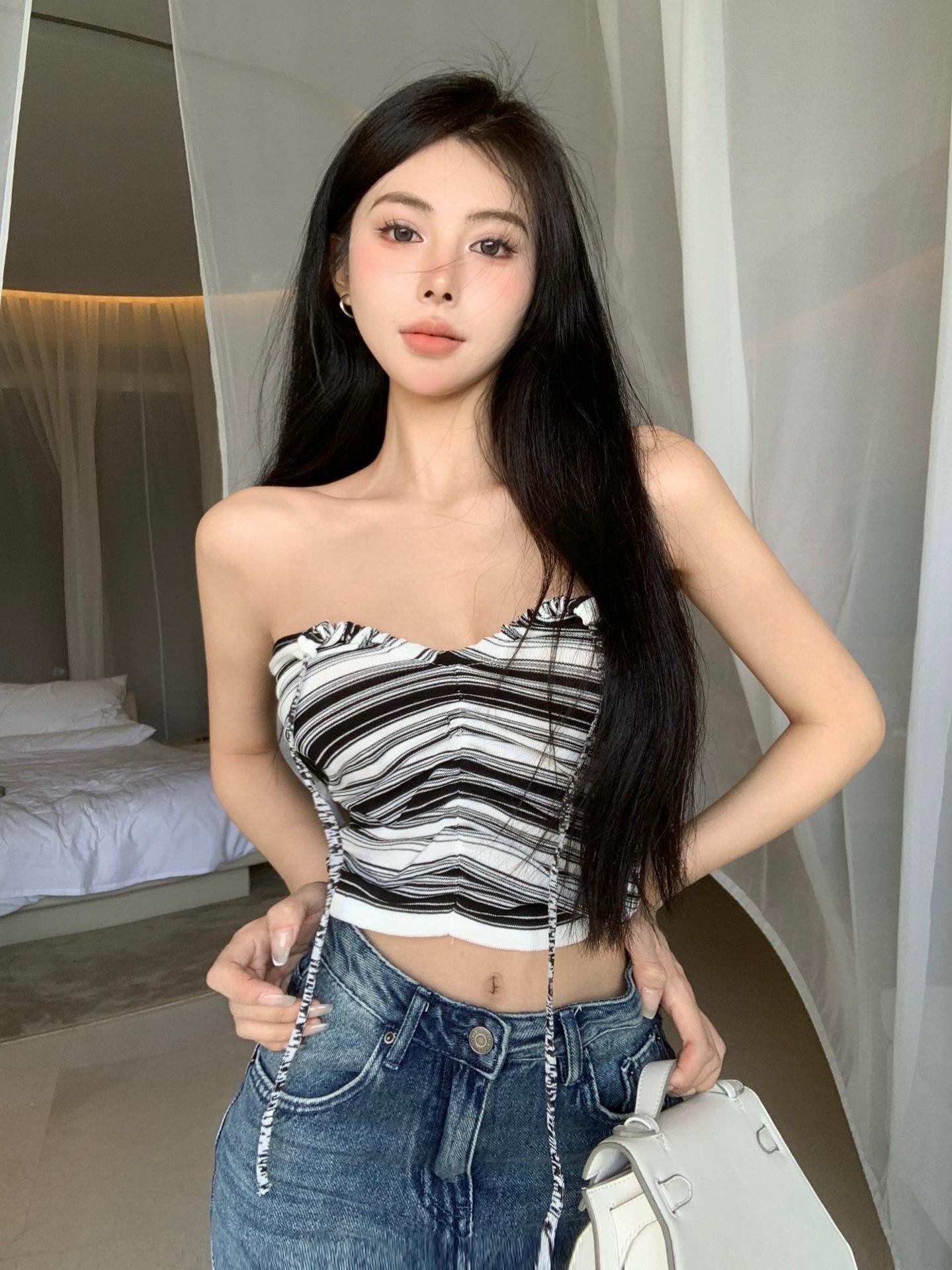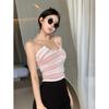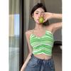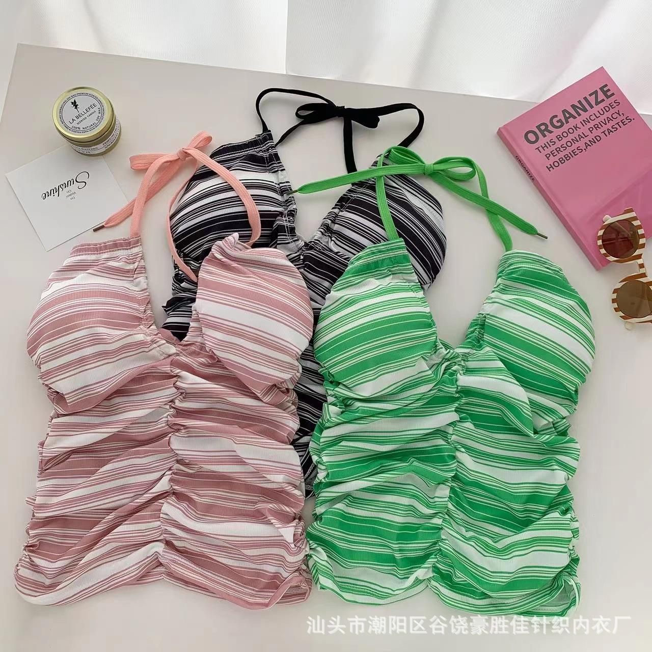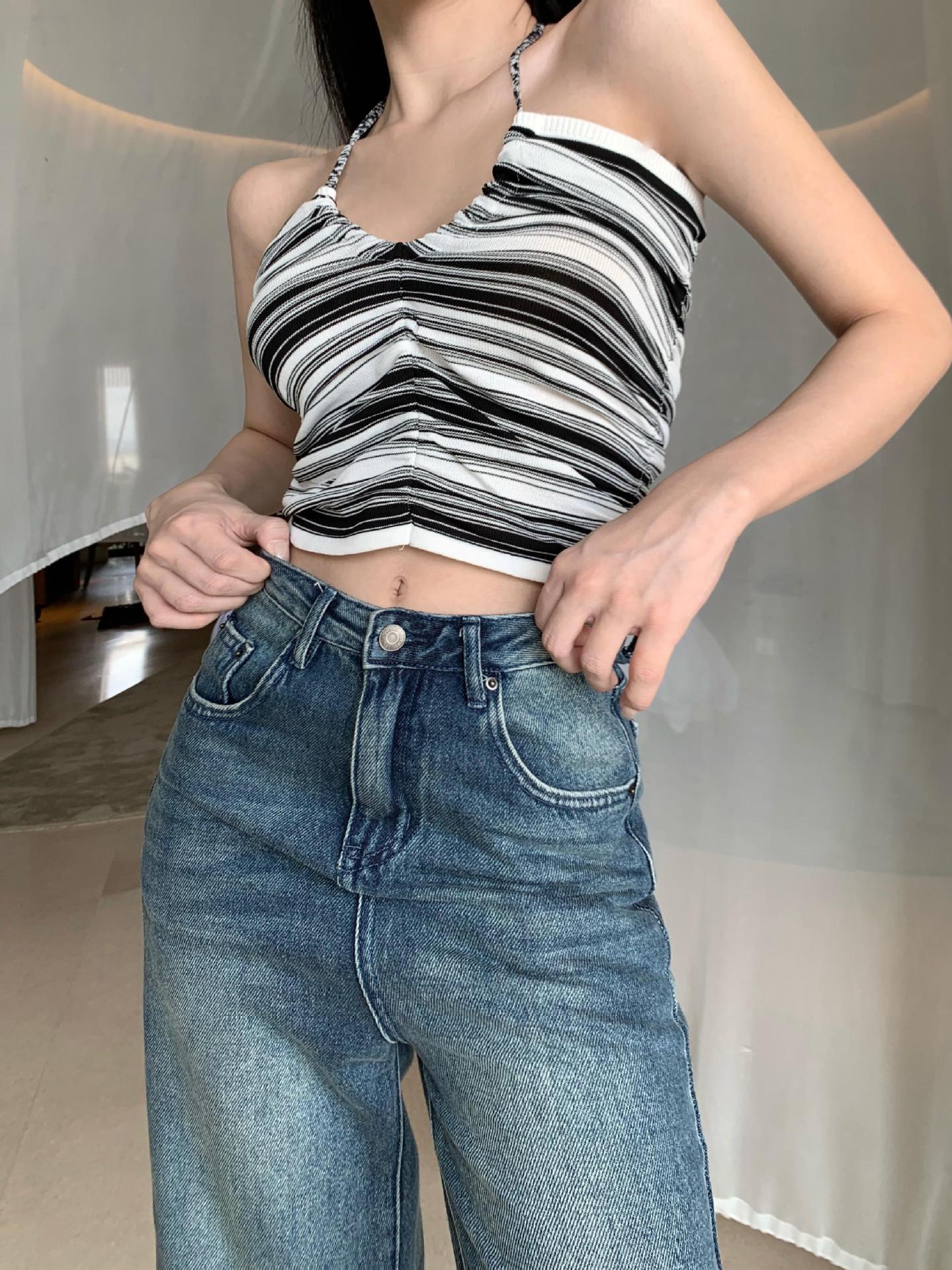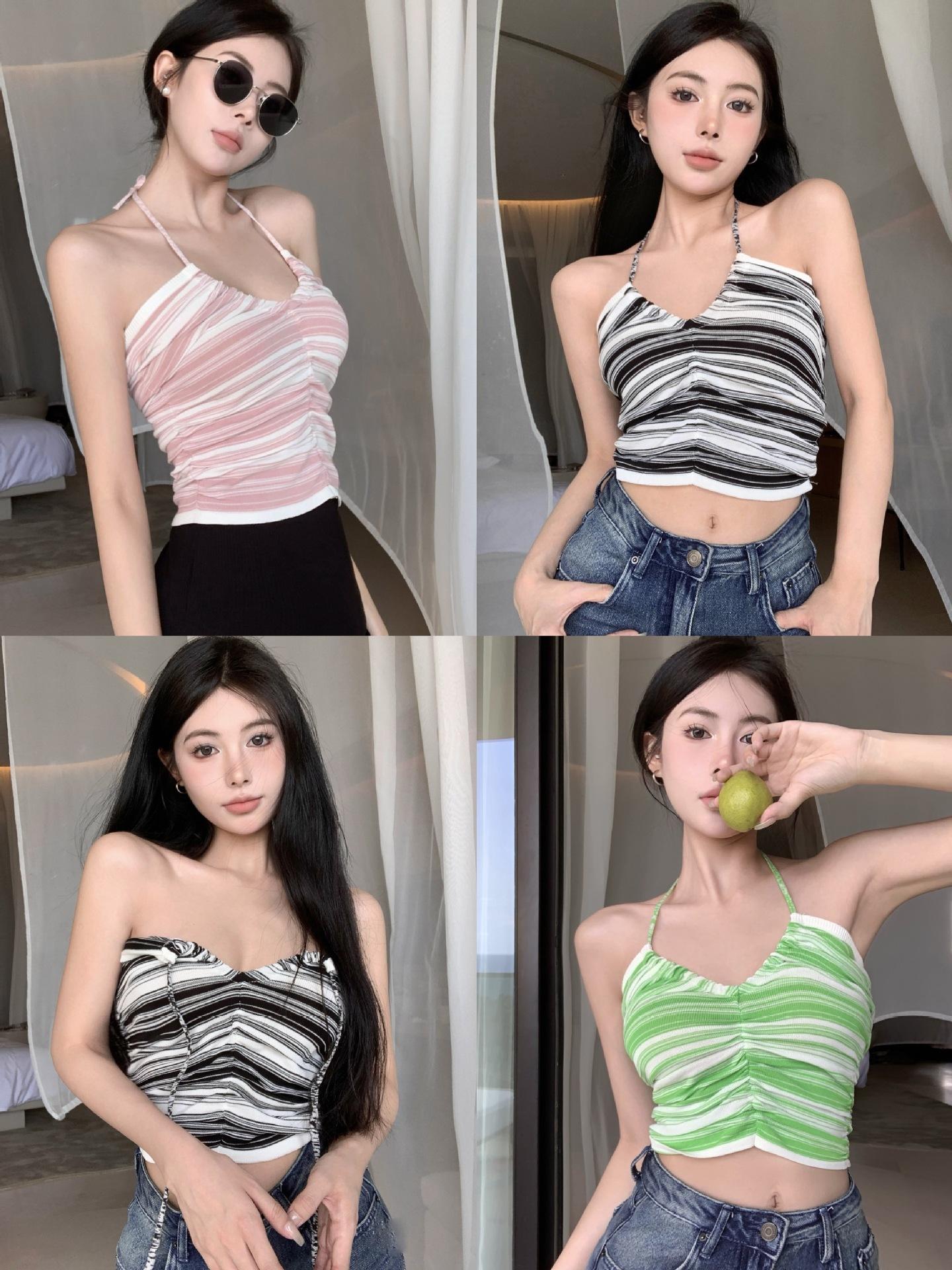Camisola sexy con cuello halter para mujer de Spice Girls, estilo francés corto, elegante, a rayas, hermosa espalda, exterior, top puro para el verano