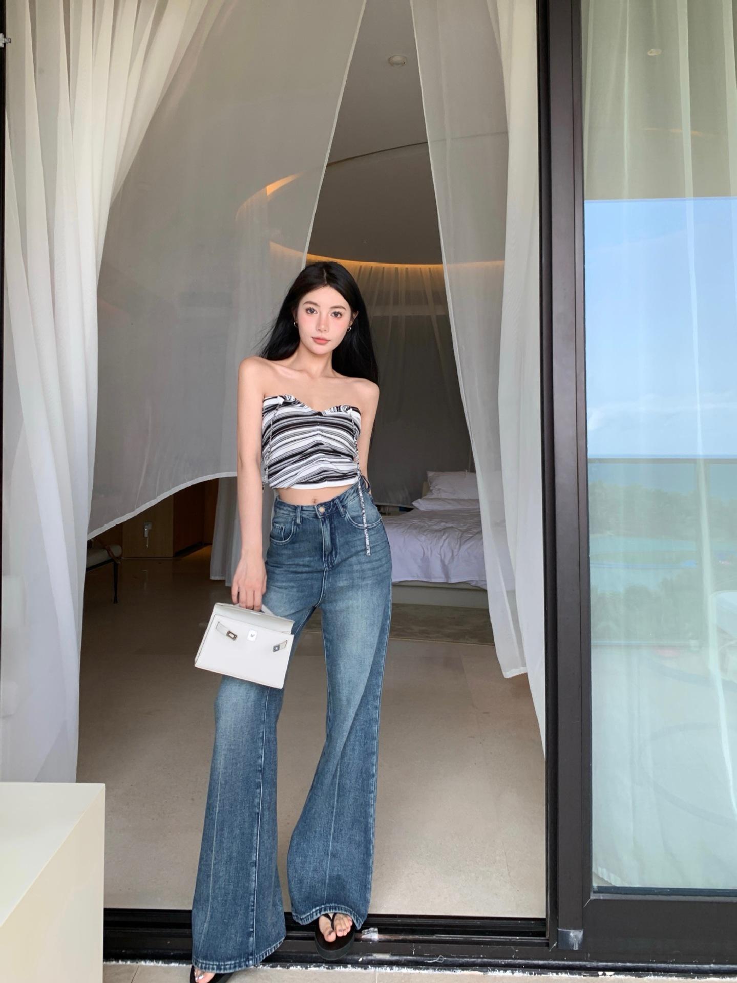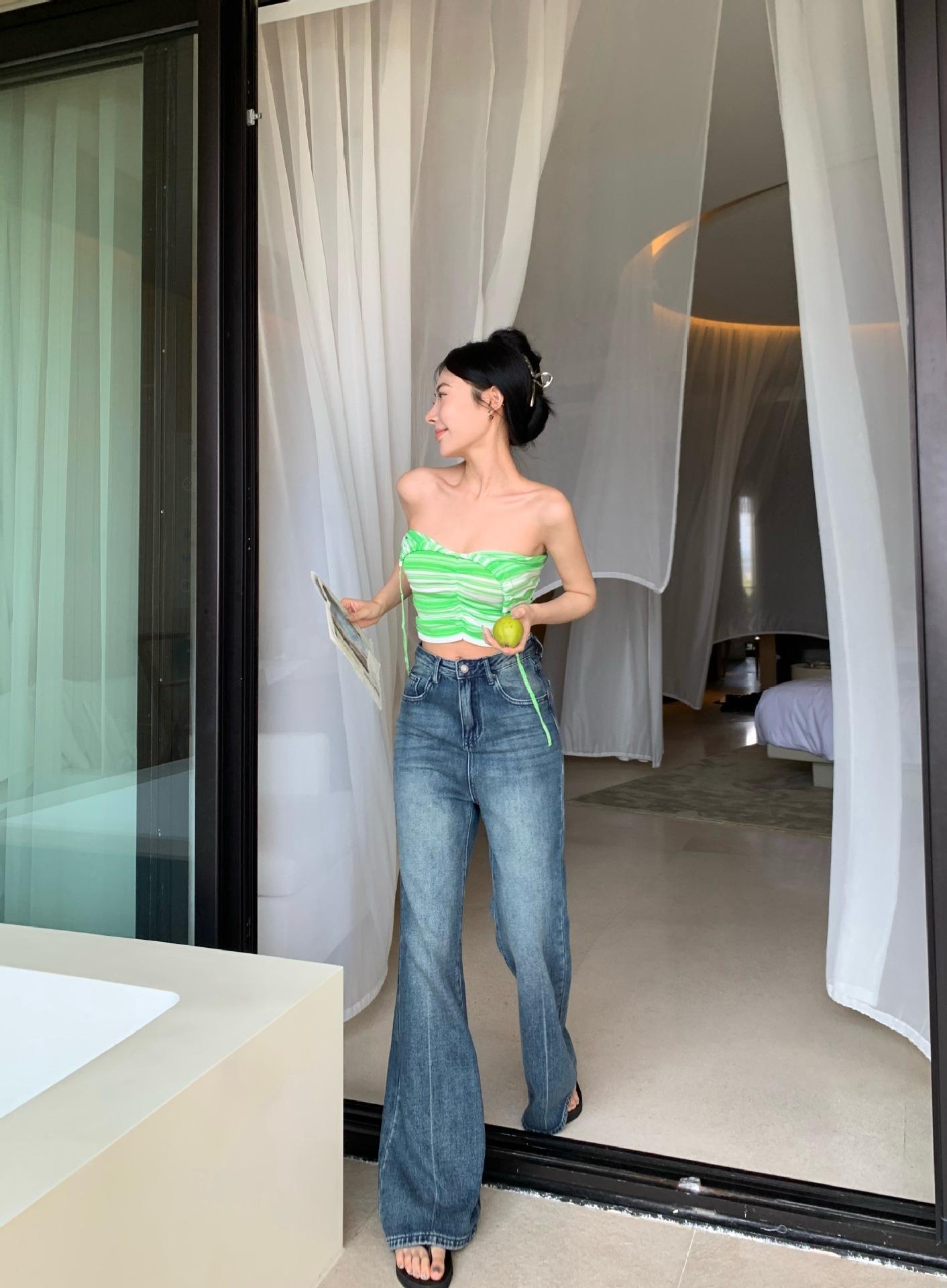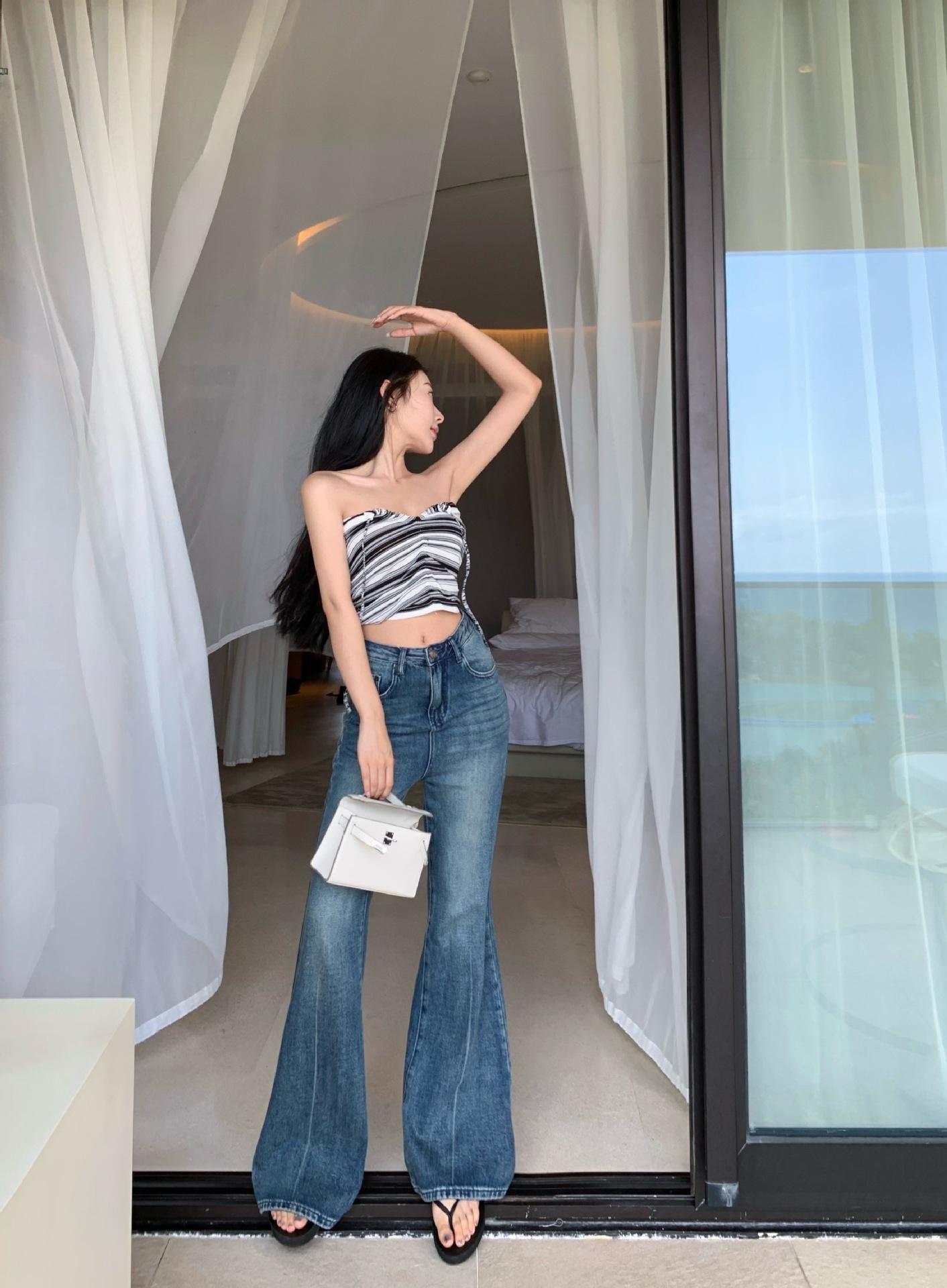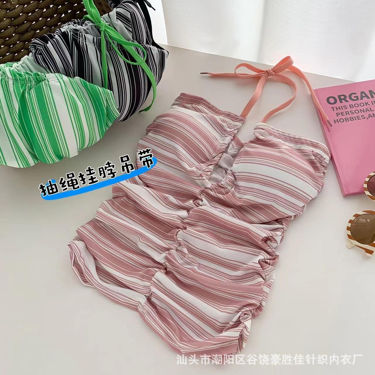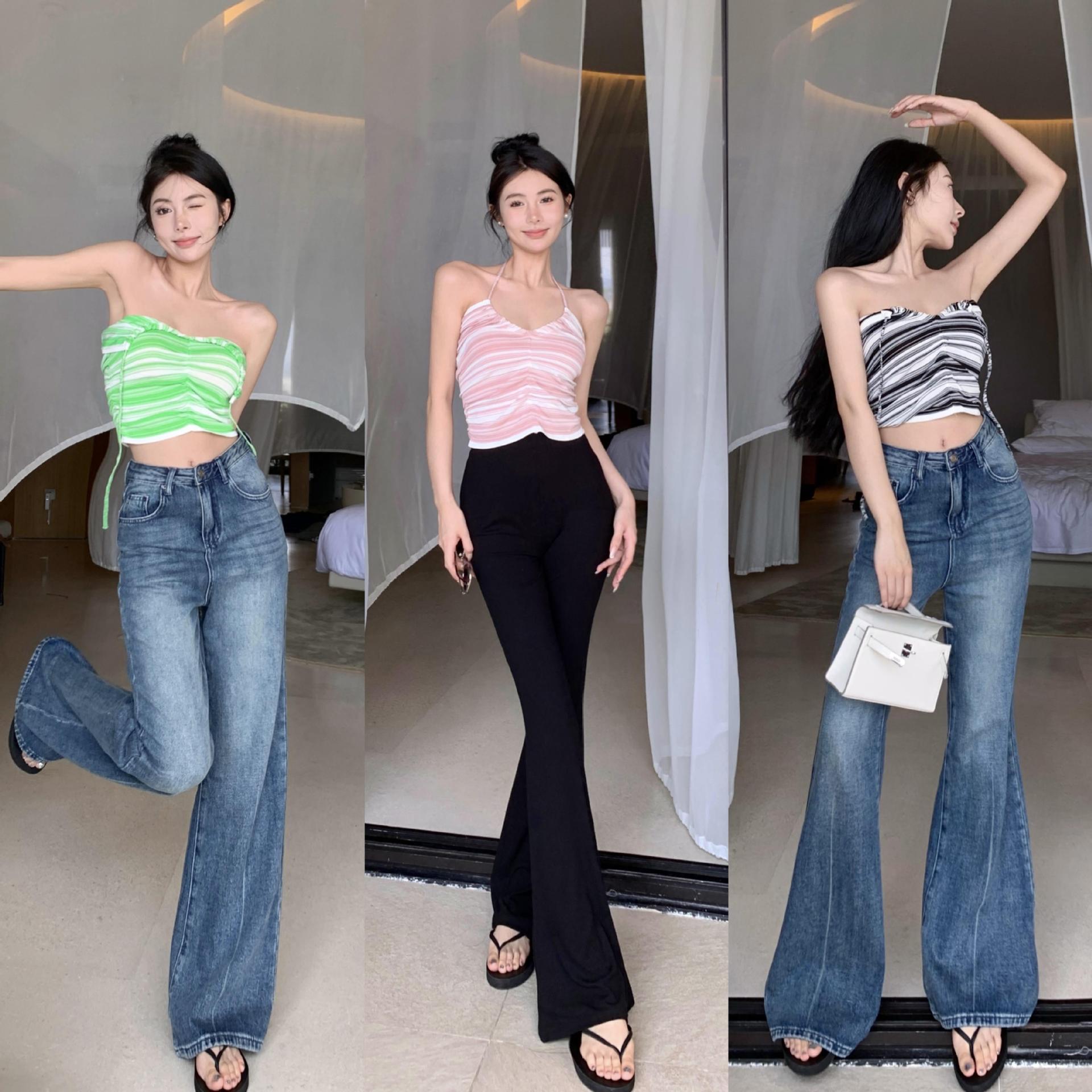 Camisola sexy con cuello halter para mujer de Spice Girls, estilo francés corto, elegante, a rayas, hermosa espalda, exterior, top puro para el verano