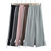 Pantalones casuales de cintura alta con lazo decorativo de color liso para mujer, pantalones holgados y adelgazantes de pierna ancha, de cintura alta y combinables, 2024