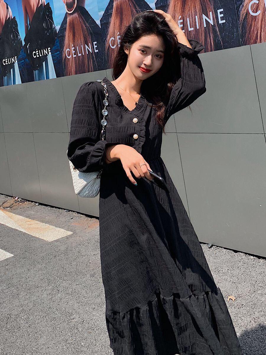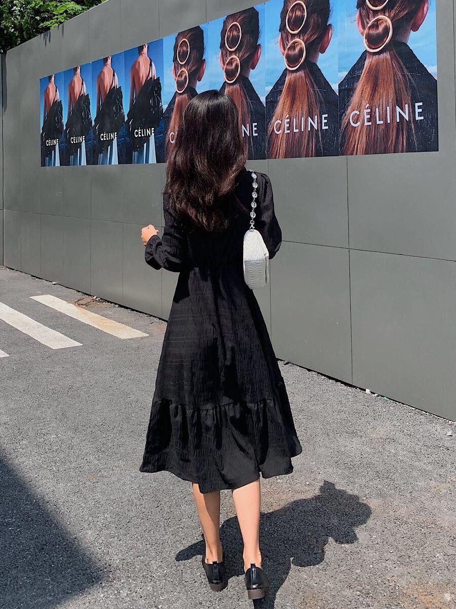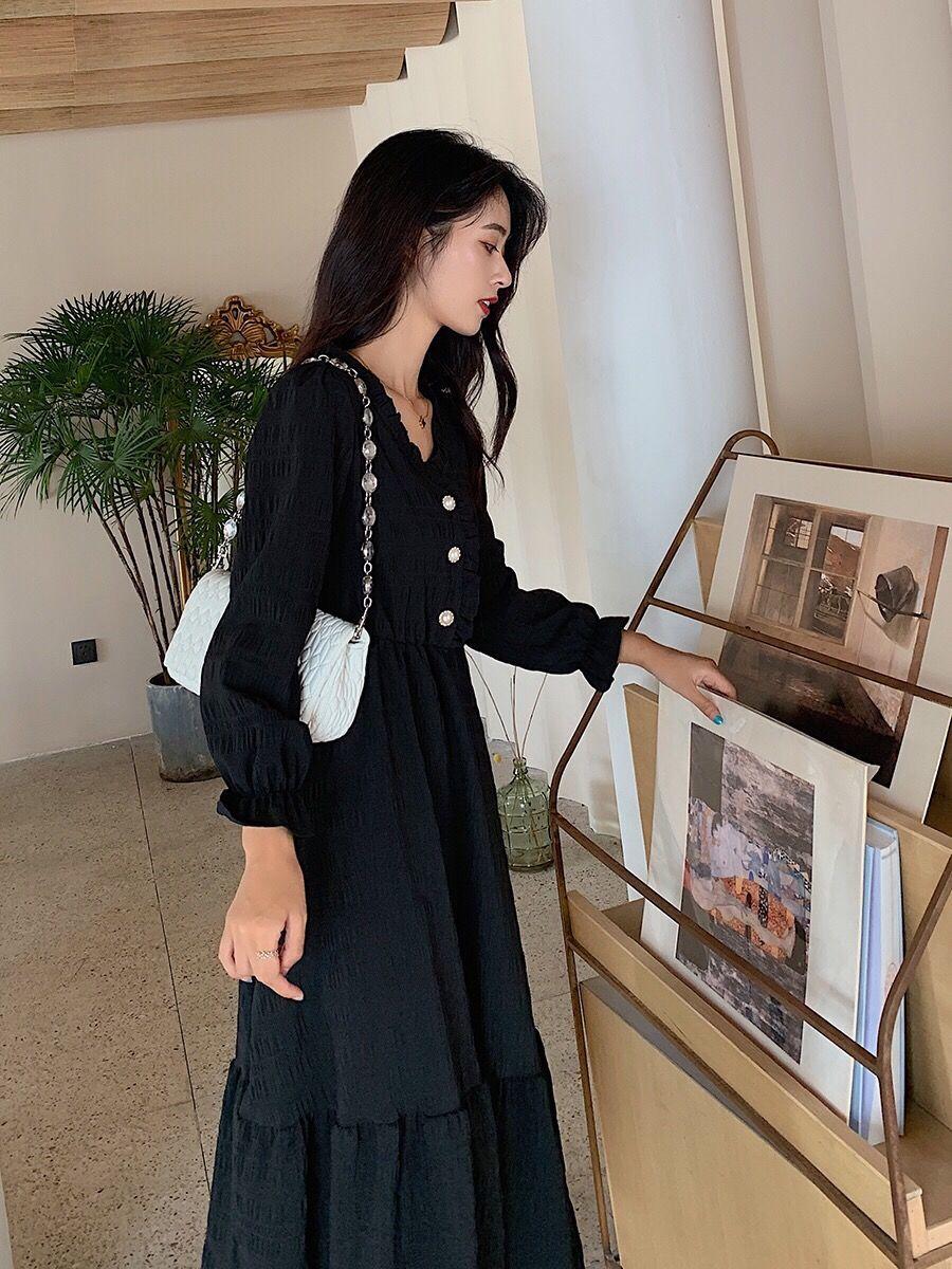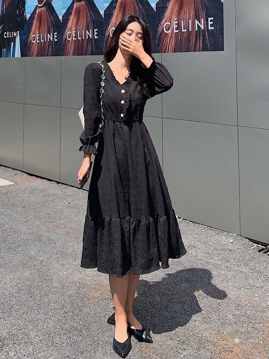 2025 Nuevo Vestido Estilo Hepburn Blanco Francés Falda Manga Larga para Mujer Adelgazante de Cintura Largo Medio Falda de Hada