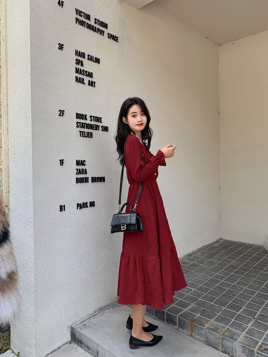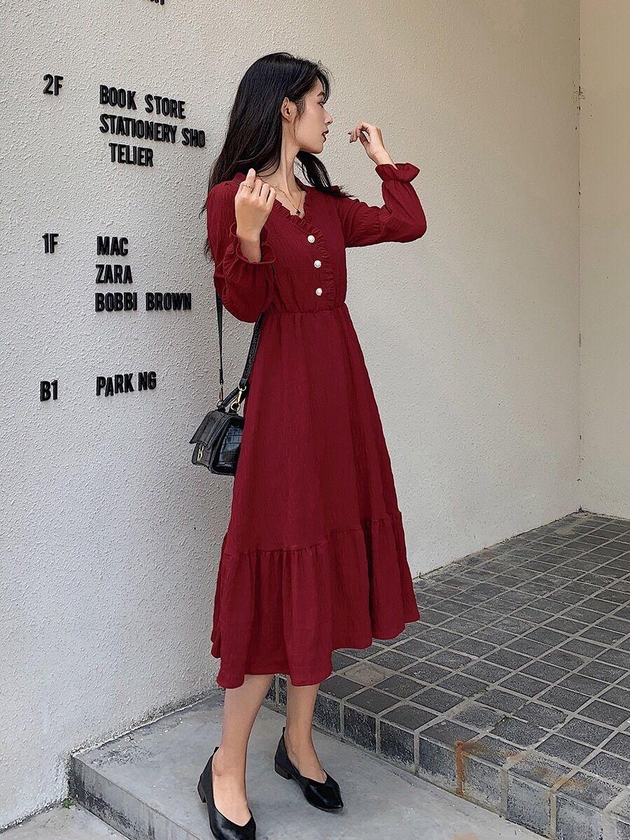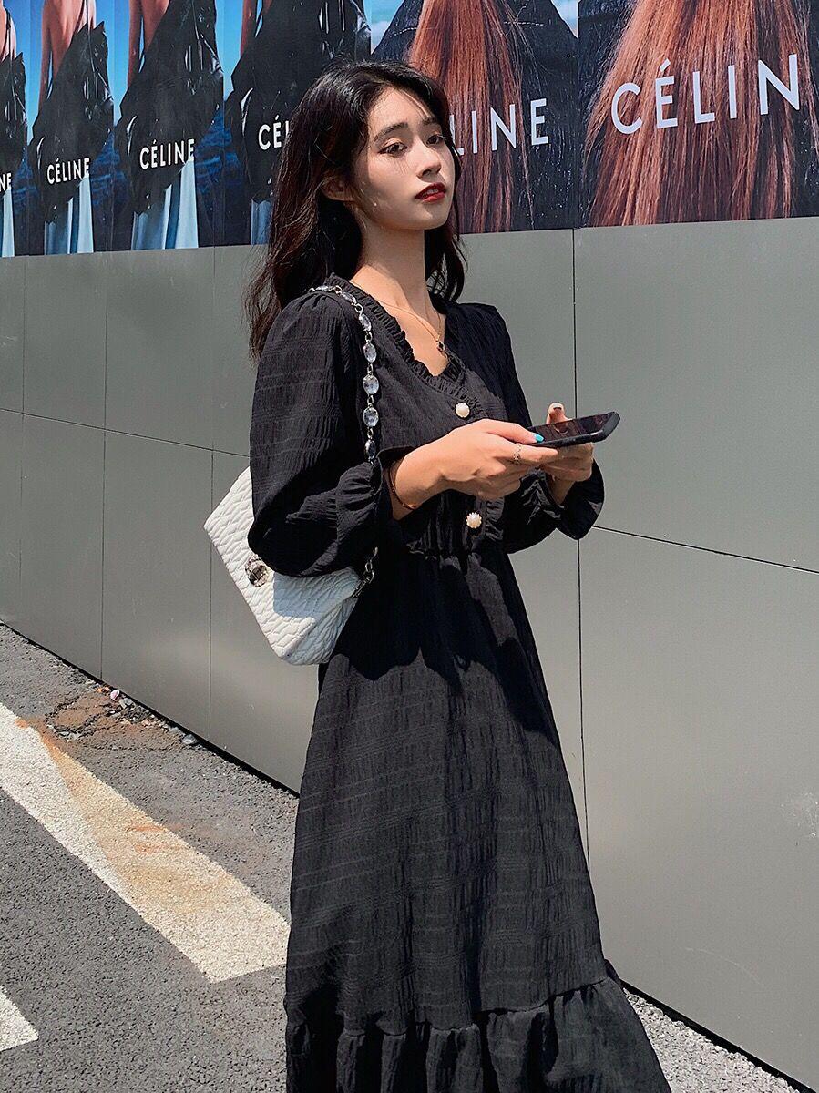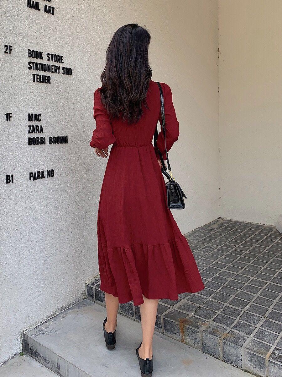 2025 Nuevo Vestido Estilo Hepburn Blanco Francés Falda Manga Larga para Mujer Adelgazante de Cintura Largo Medio Falda de Hada