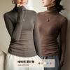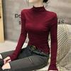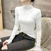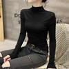 Camiseta básica de cuello alto medio de color puro Derong para mujer 2025 Otoño e Invierno Nueva Ajustada de manga larga Top