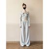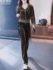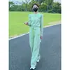 Sudadera de Solapa con Hombro Descubierto de Diseño Nuevo Otoño 2025 Hongshan Pantalones Casuales de Pierna Ancha Traje Deportivo para Mujer