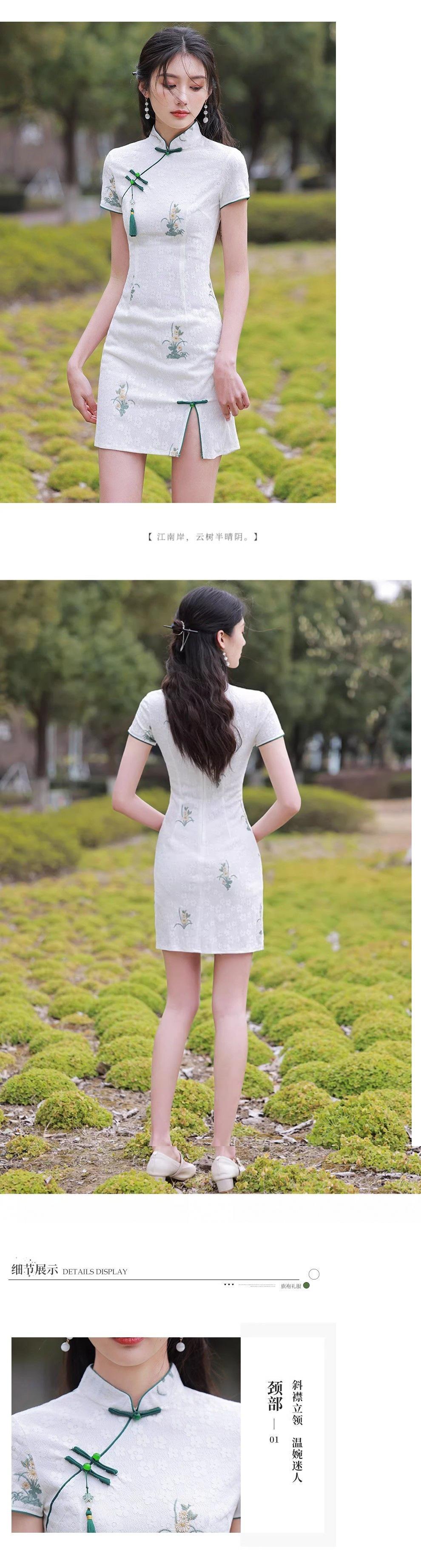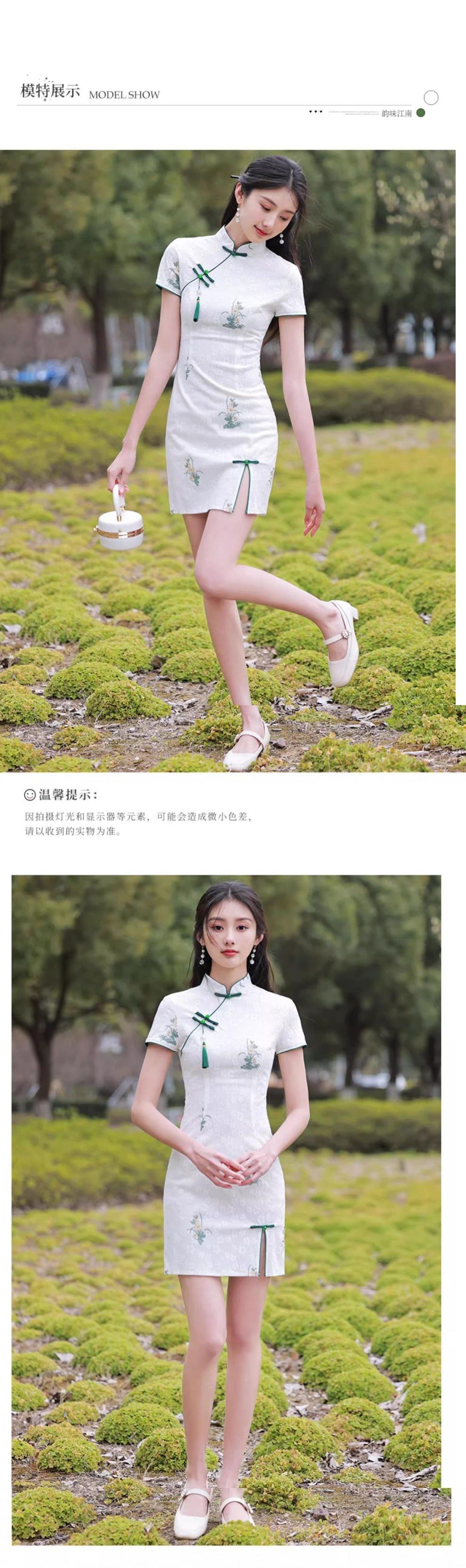 Cheongsam blanco de verano, nuevo estilo mejorado, para niñas pequeñas, de alta gama, elegante, estilo corto, estilo fresco.