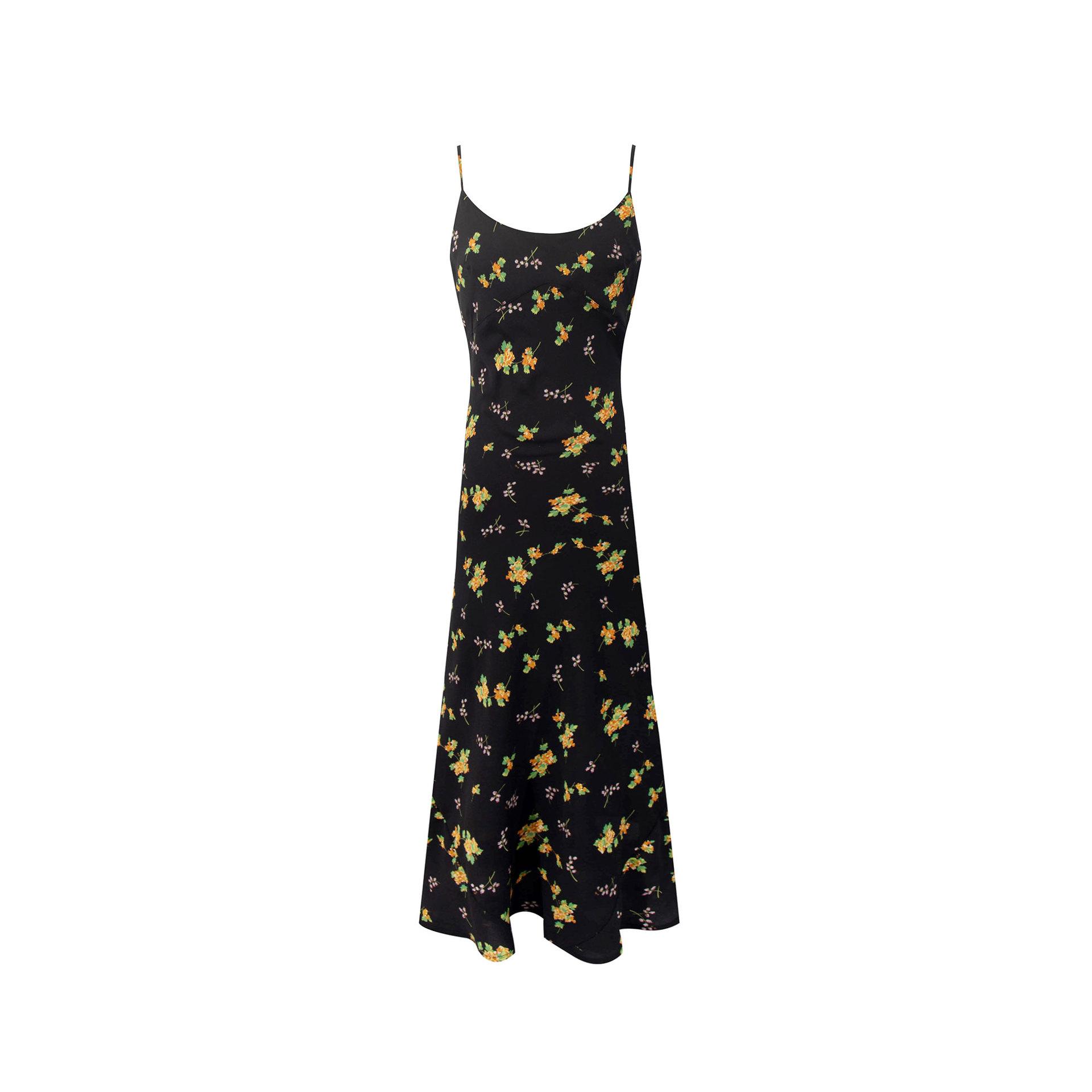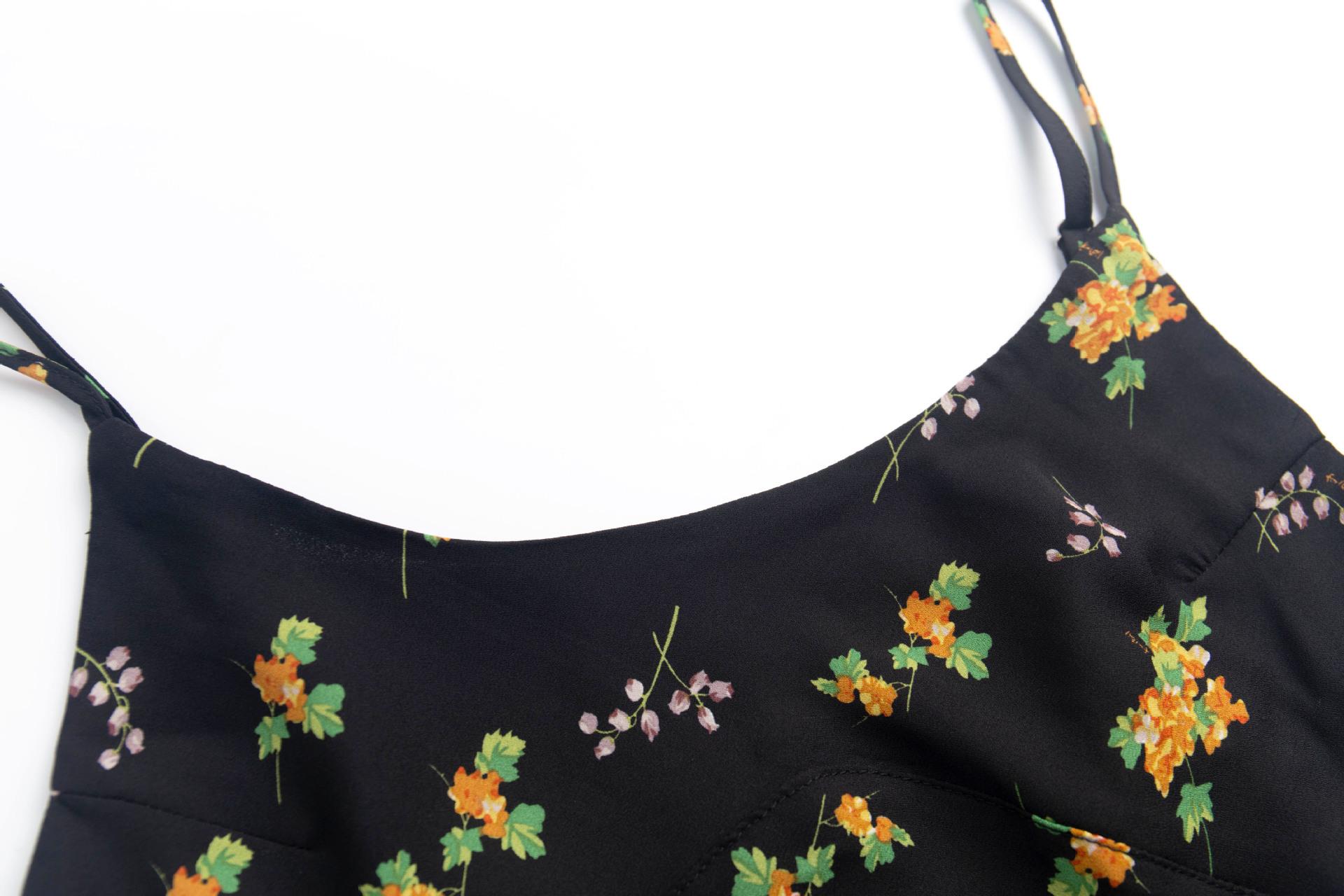 L24066-24 Vestido de tirantes sexy con estampado floral, estilo festivo francés, para principios de primavera, que adelgaza la cintura.