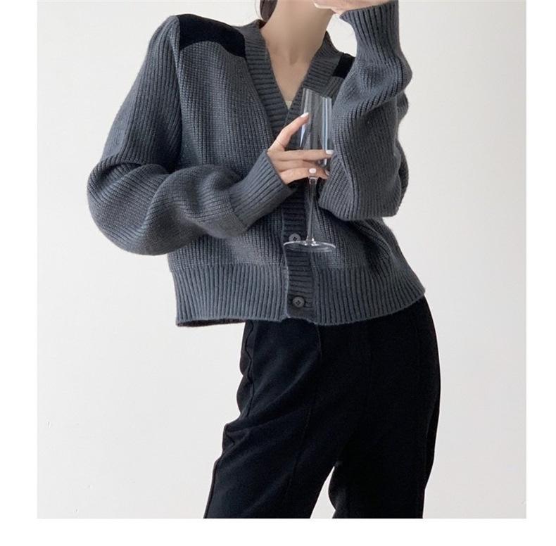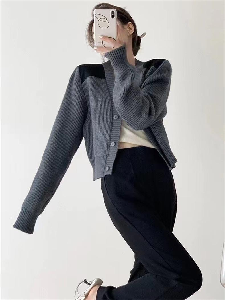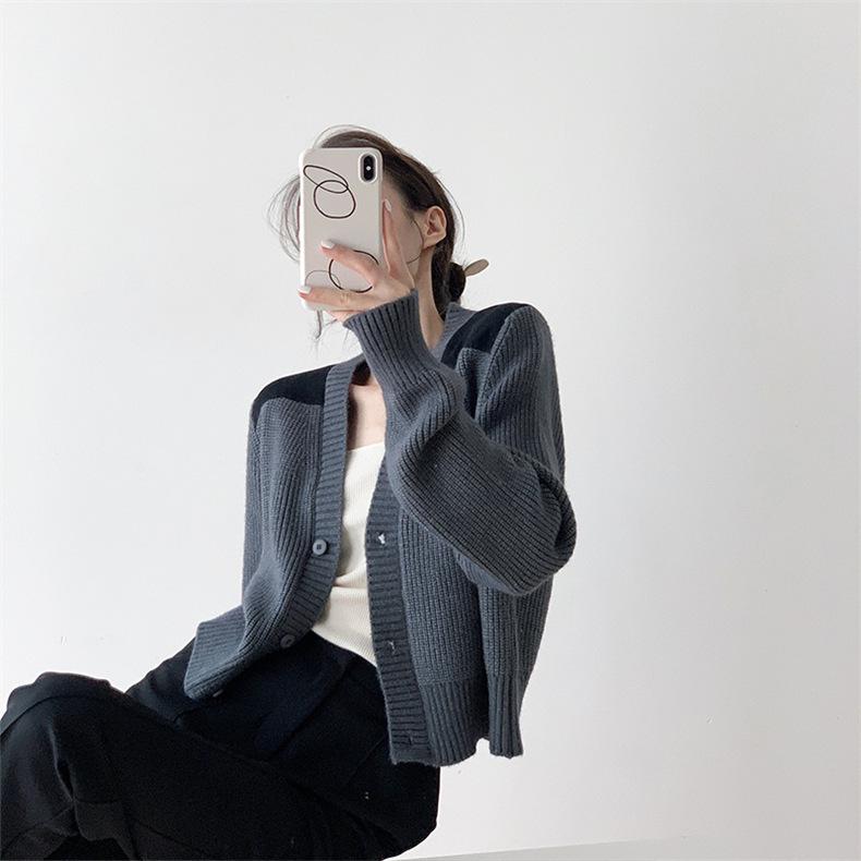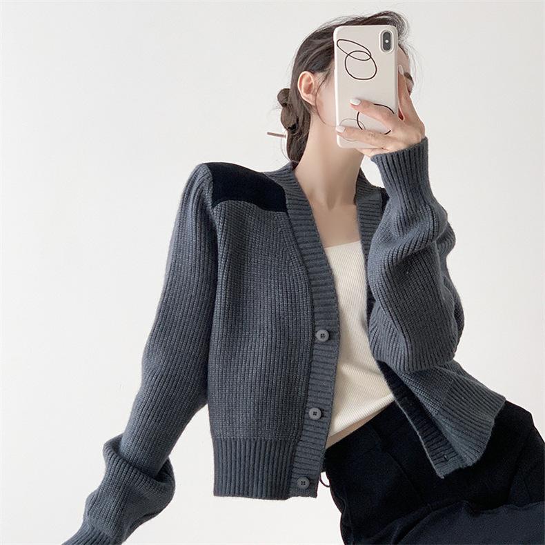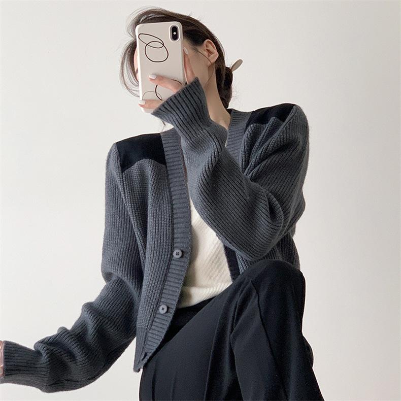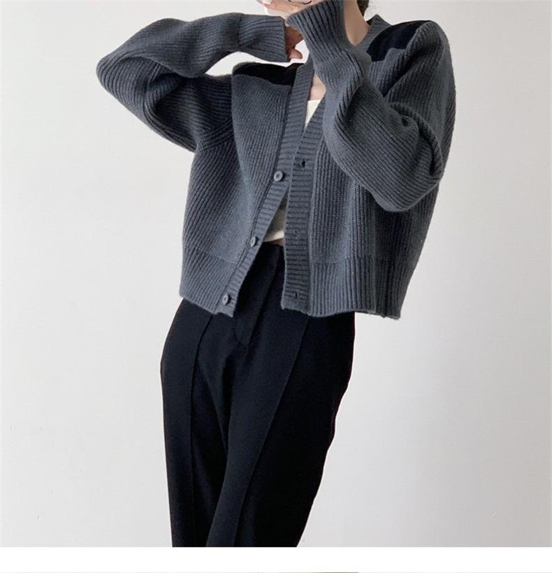Cárdigan de punto para mujer, otoño e invierno, nuevo, holgado, con cuello en V, gris, para uso exterior, moda informal, abrigo corto de un solo pecho
