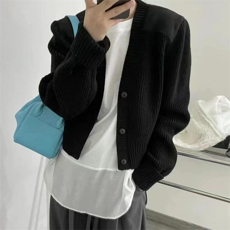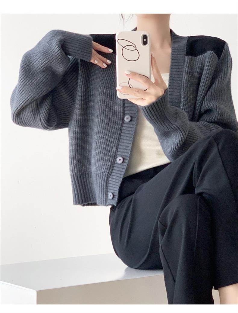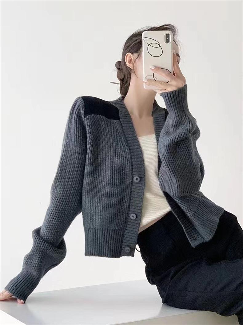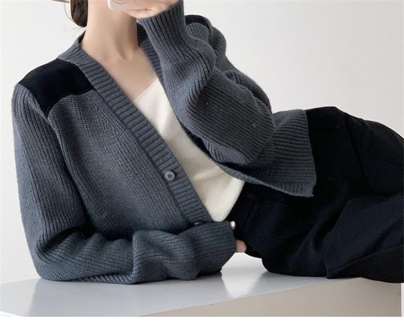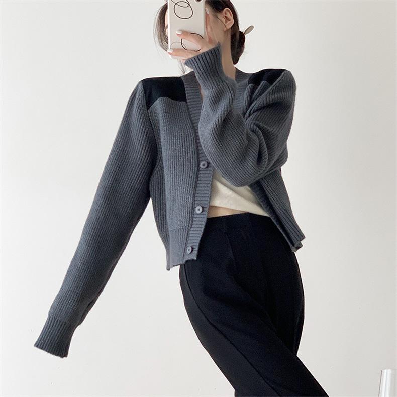 Cárdigan de punto para mujer, otoño e invierno, nuevo, holgado, con cuello en V, gris, para uso exterior, moda informal, abrigo corto de un solo pecho