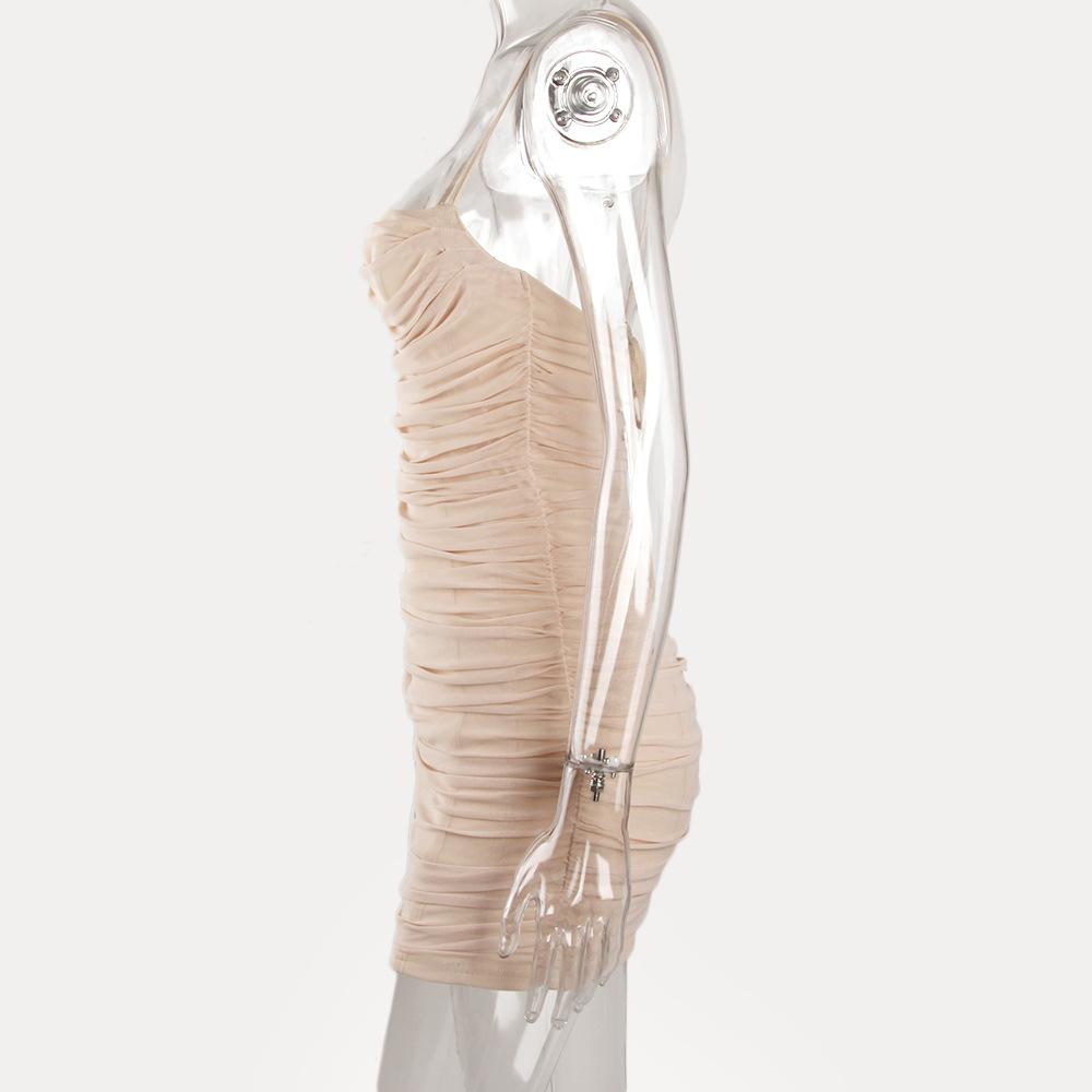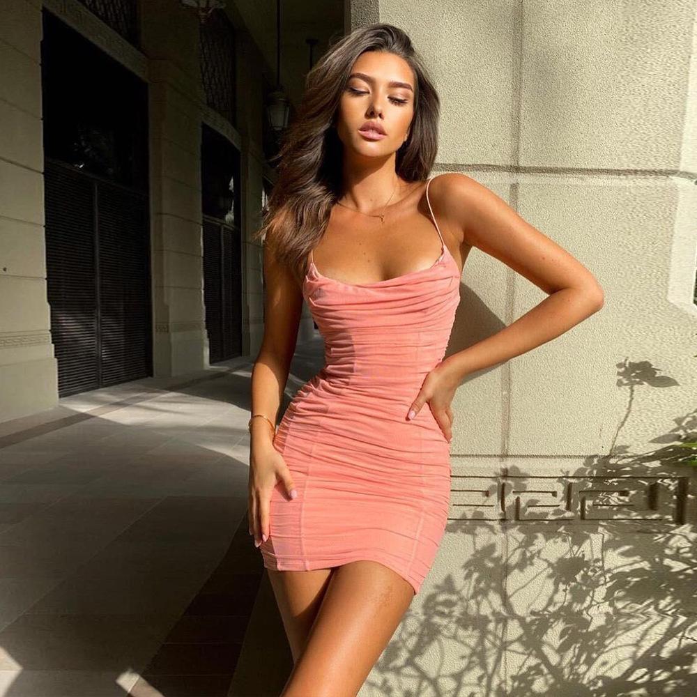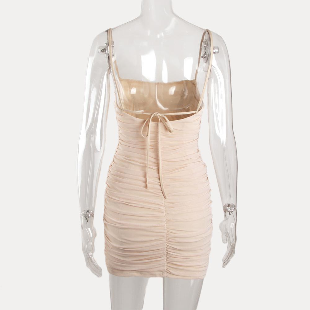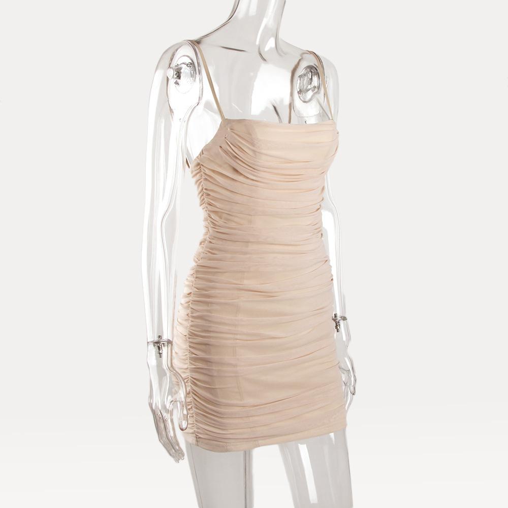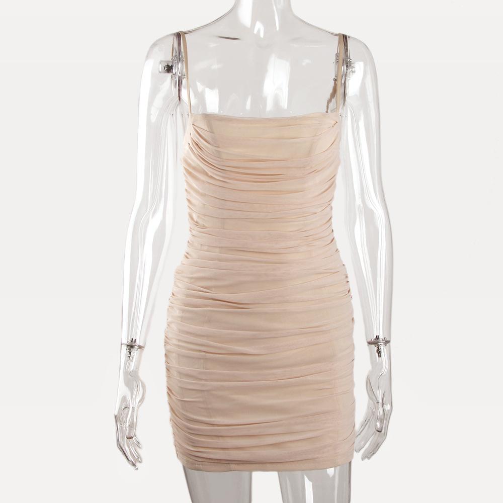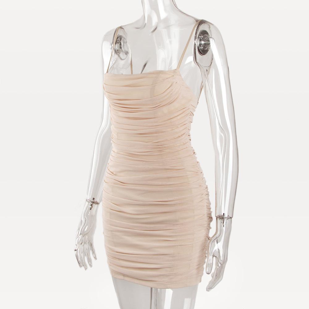 Vestido Corto de Verano Sexy para Mujer sin Espalda con Pliegues, Tirantes de Malla, Color Sólido, Comercio Exterior, Ajustado a la Cadera, Europeo y Americano