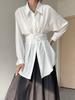 Mengzixi 2024 Primavera y Verano Nuevo Diseño Nicho Moda Camisa con Cinturón de Cintura Estilo Coreano X1848
