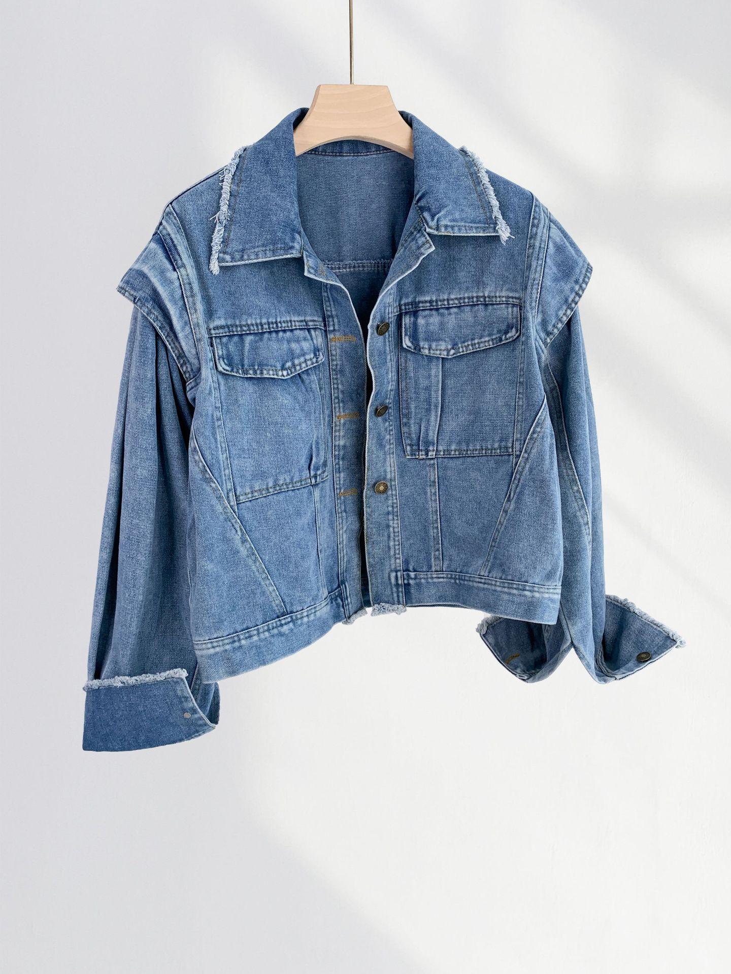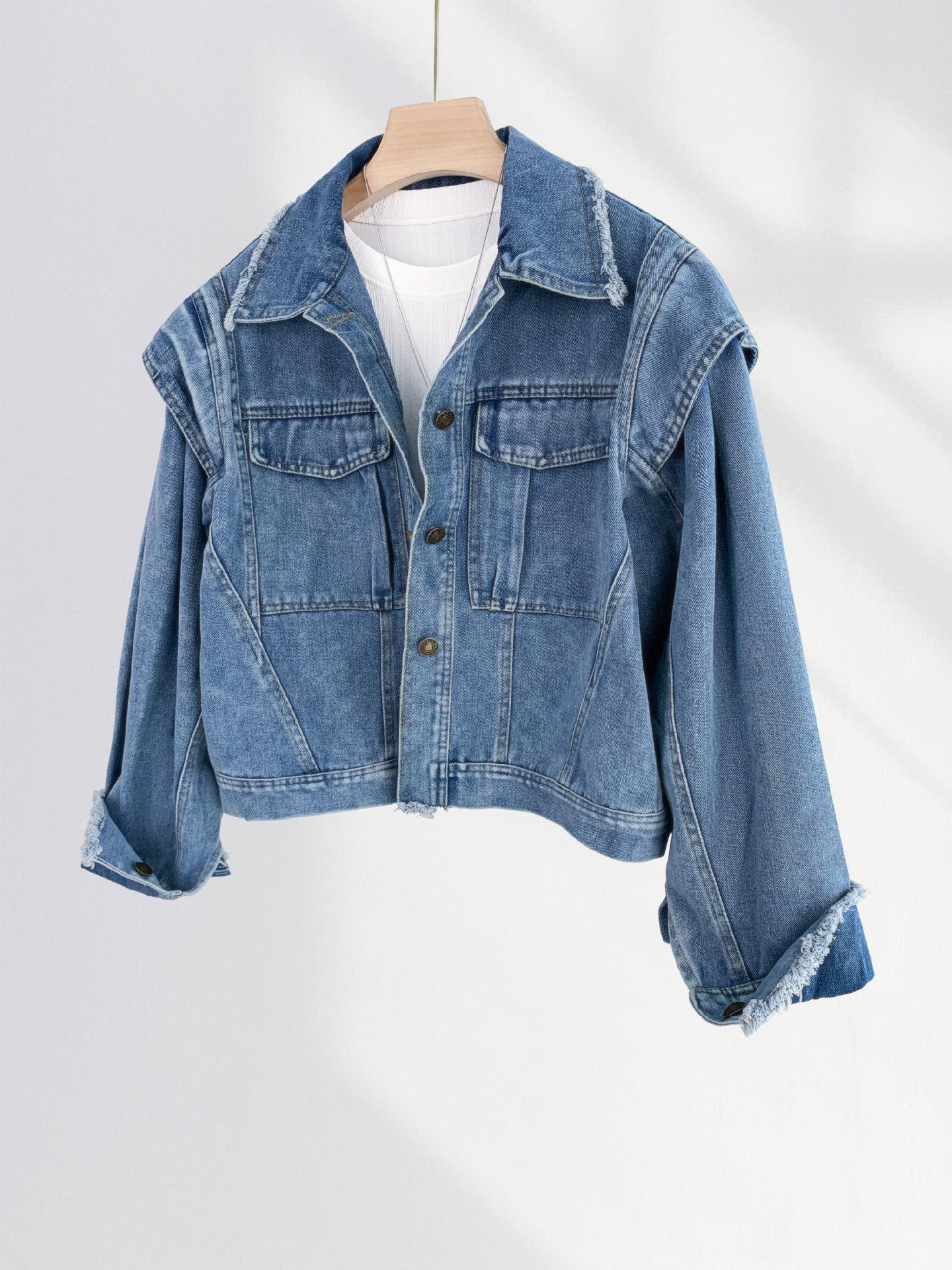Chaqueta de mezclilla estilo retro de Hong Kong de One Piece para mujer, nueva de principios de primavera, estilo coreano, estilo BF, holgada, corta, cruzada