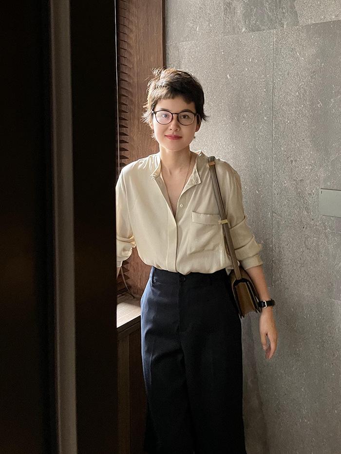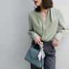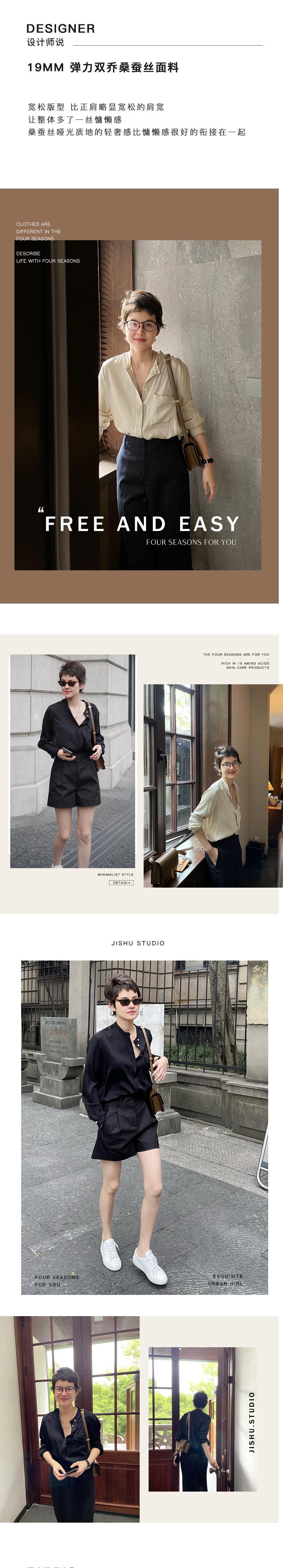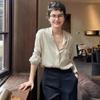 Camisa de Seda para Mujer 2025 Primavera y Verano Nueva Manga Larga Cuello Redondo Holgada Seda de Hangzhou Elástica Doble Alegría Seda de Morera Camisa