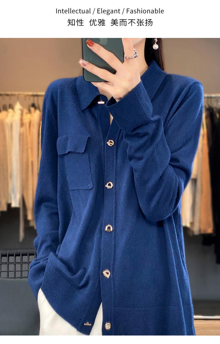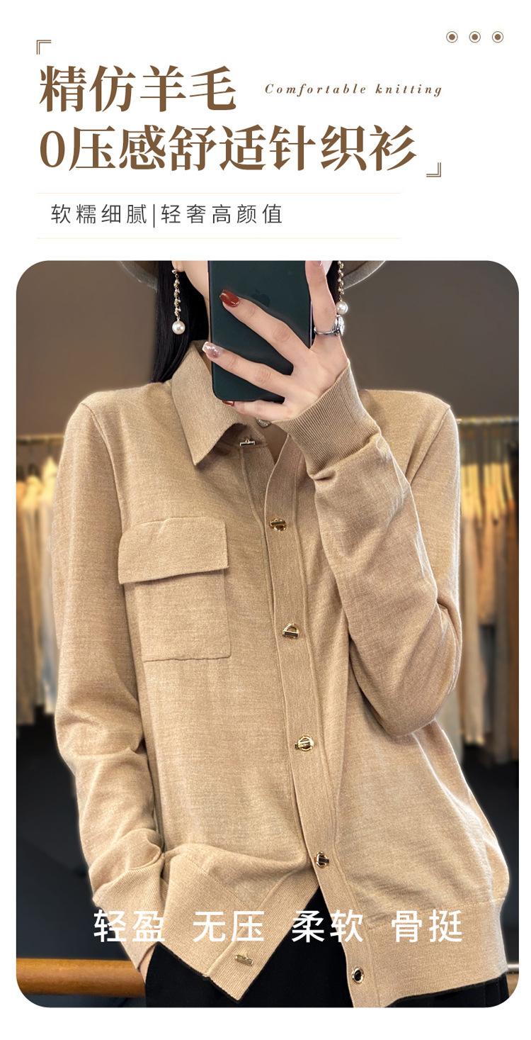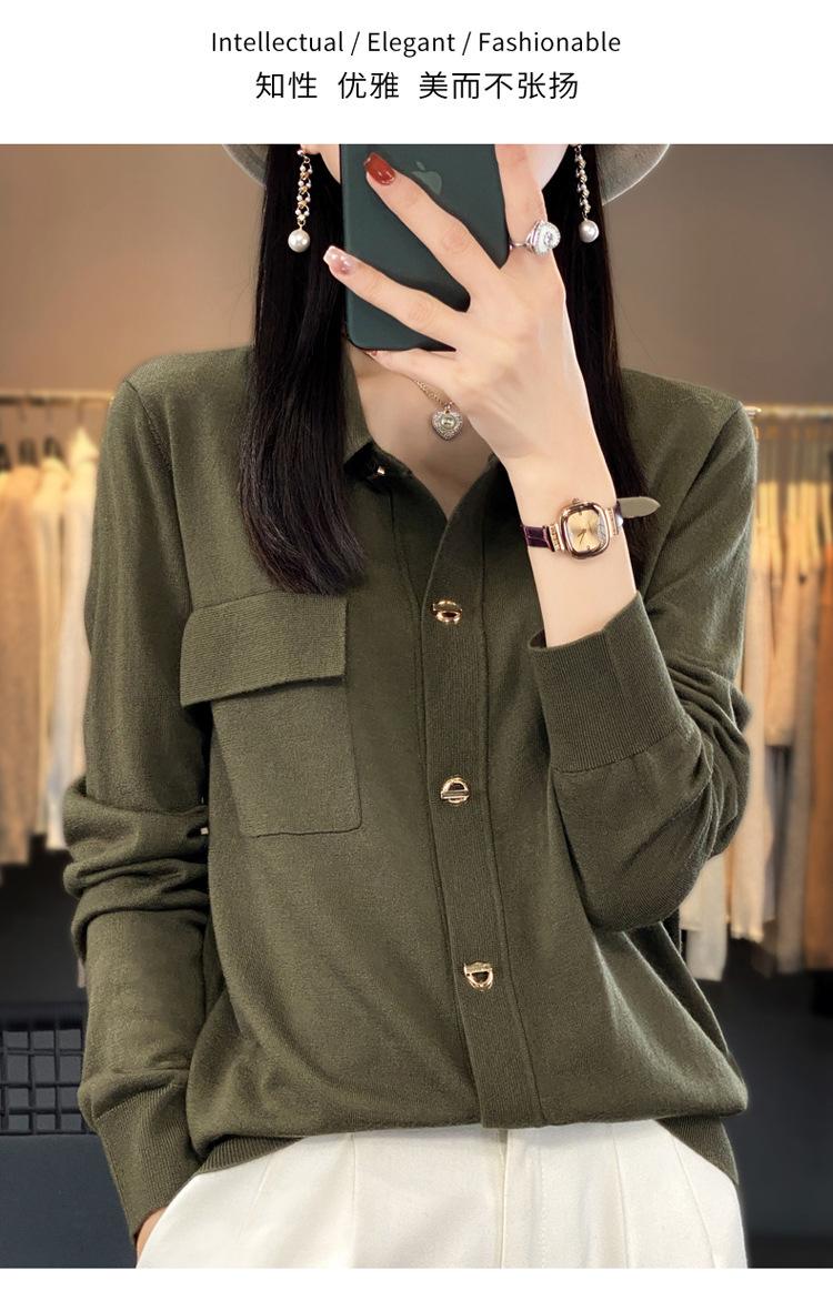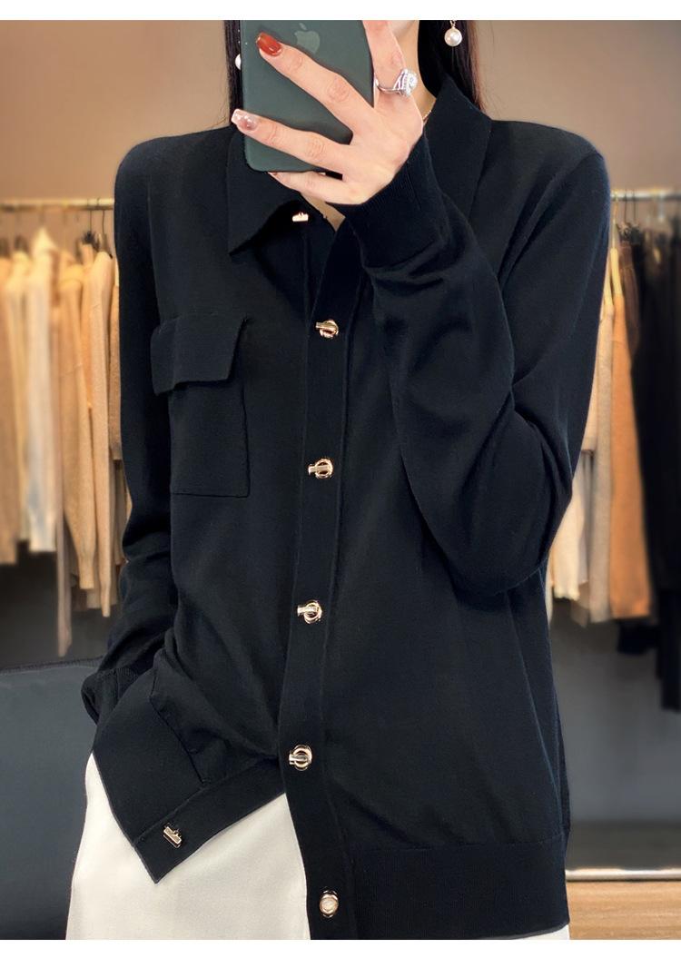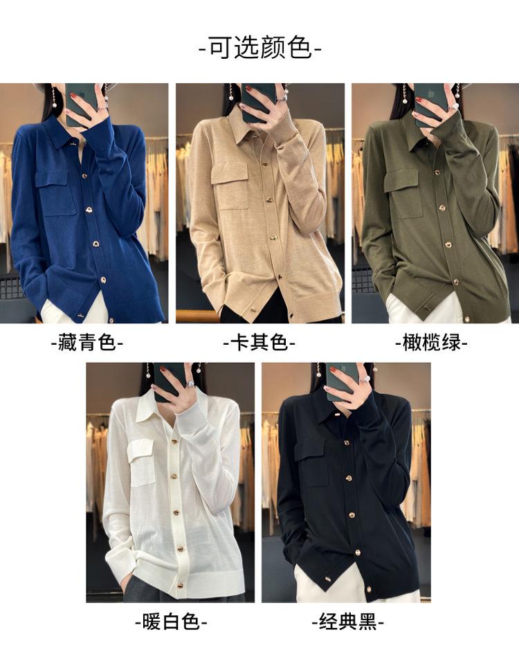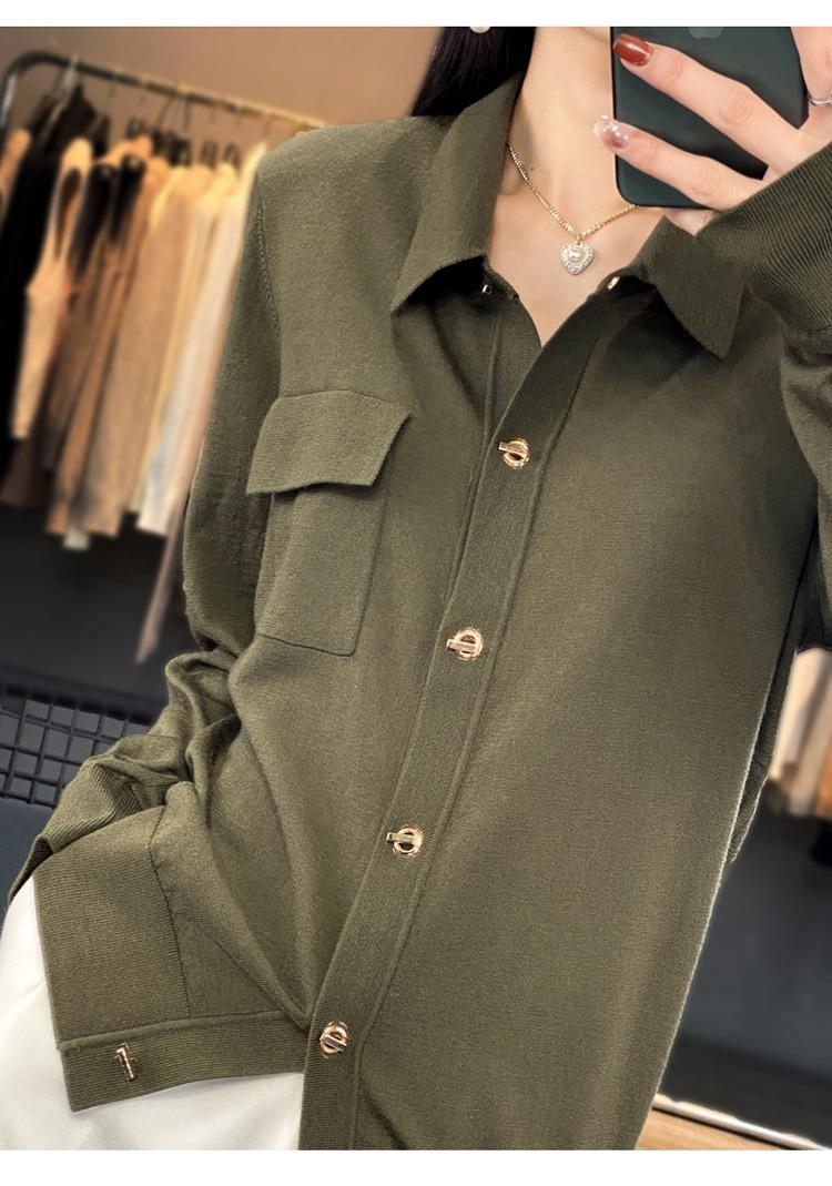 Cárdigan de punto blanco para mujer, camisa de primavera y otoño, elegante, cuello polo, suelto, manga larga, exterior de lana.
