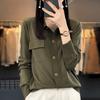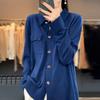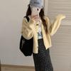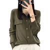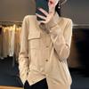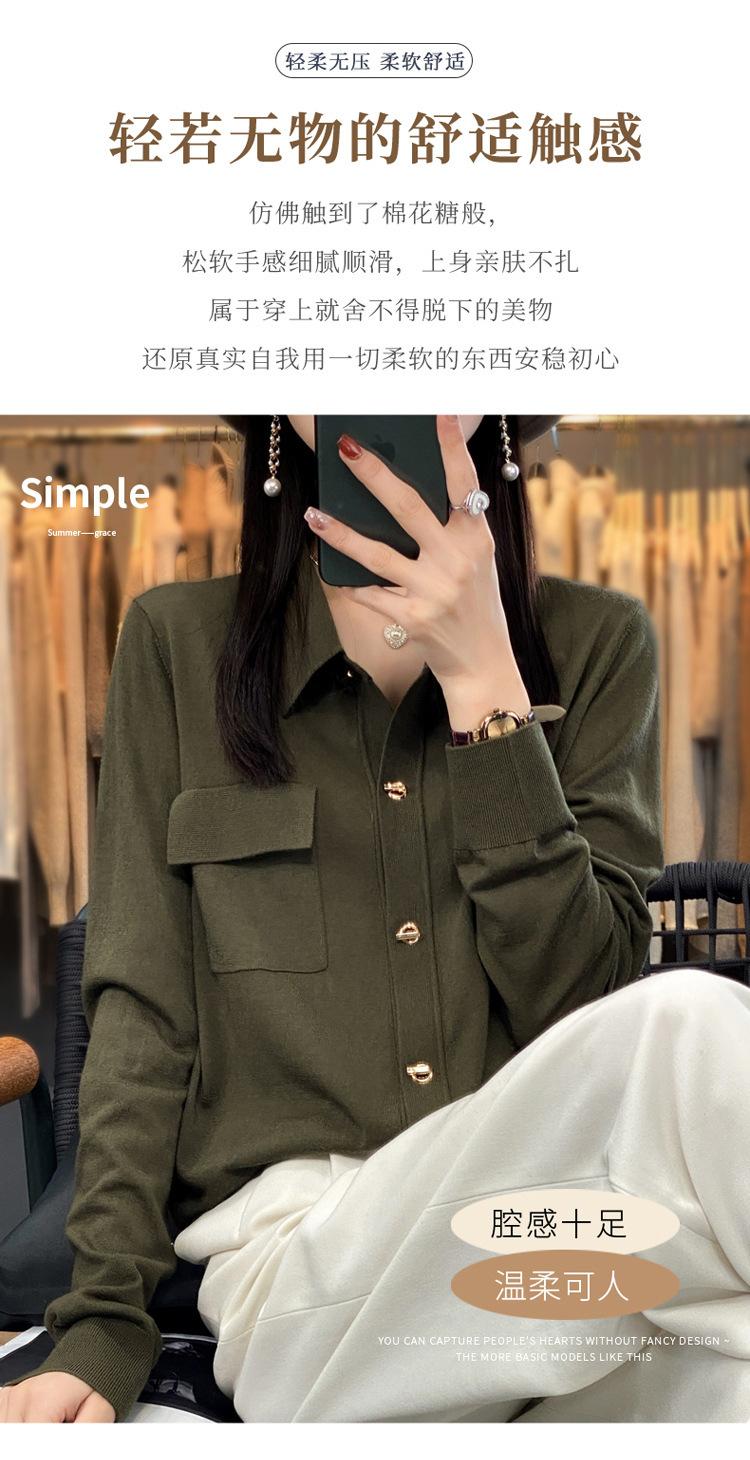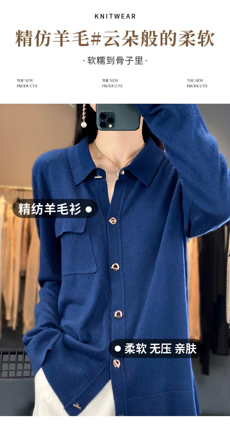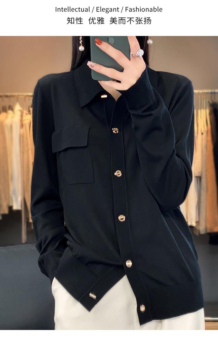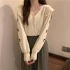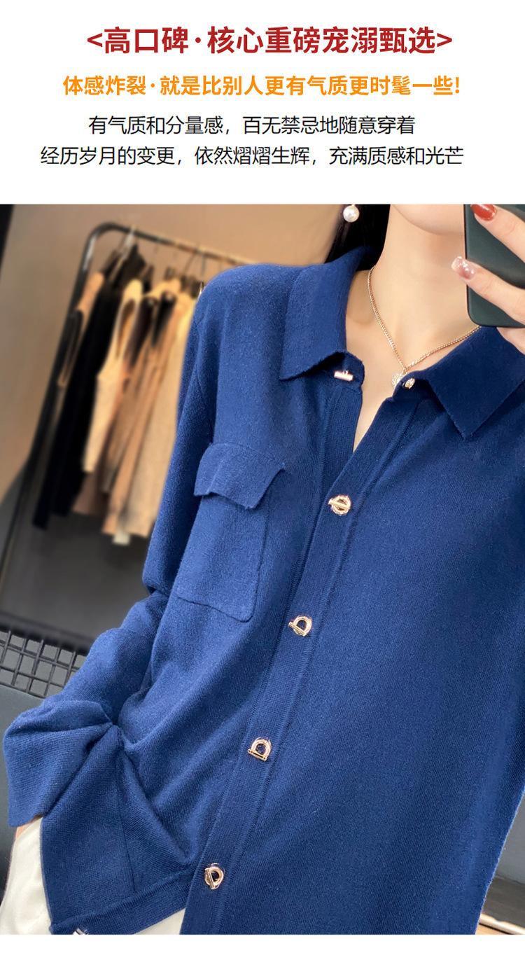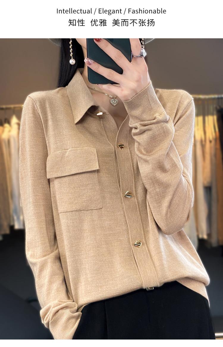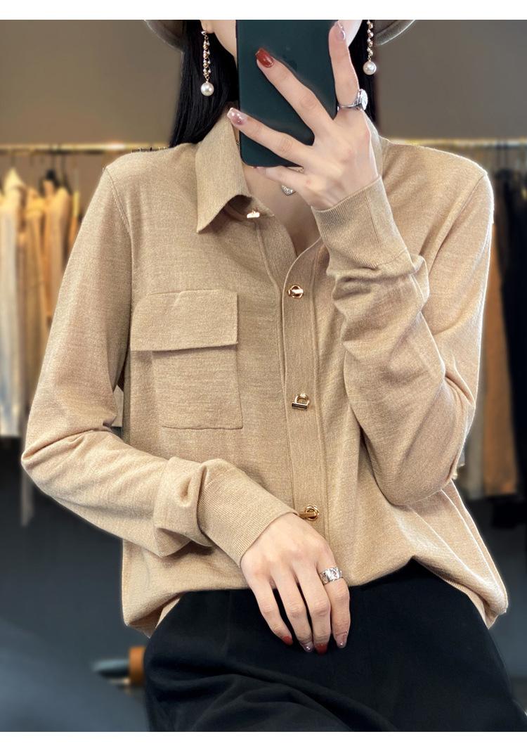 Cárdigan de punto blanco para mujer, camisa de primavera y otoño, elegante, cuello polo, suelto, manga larga, exterior de lana.
