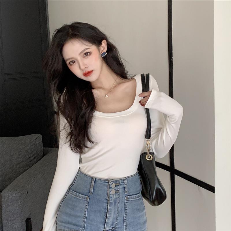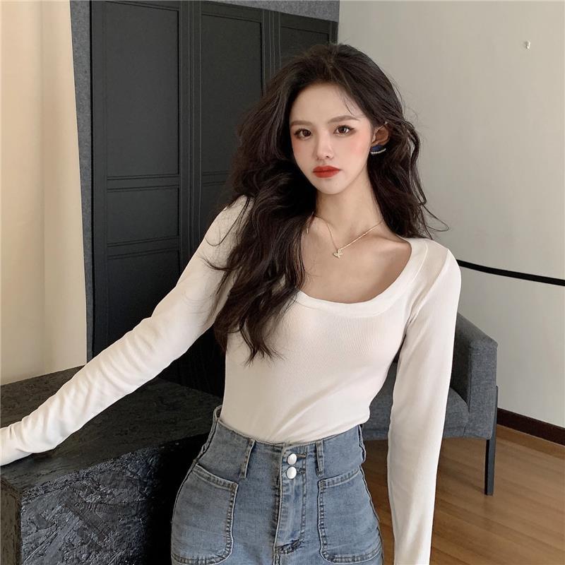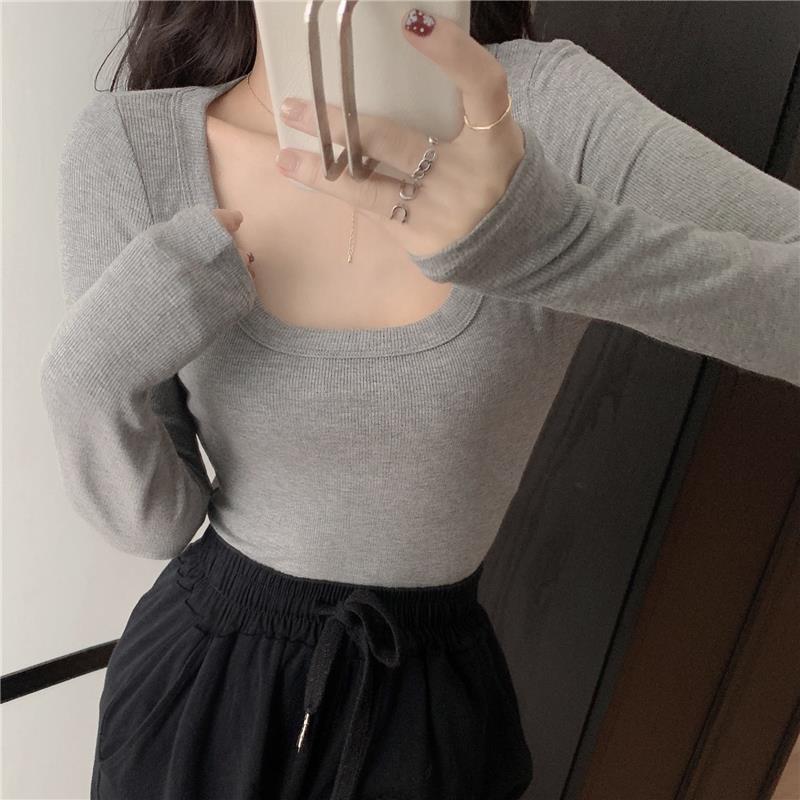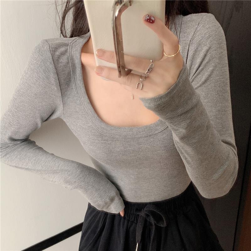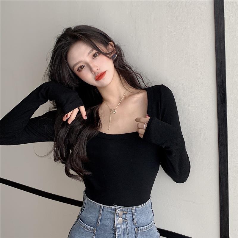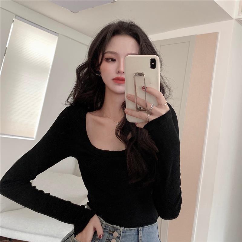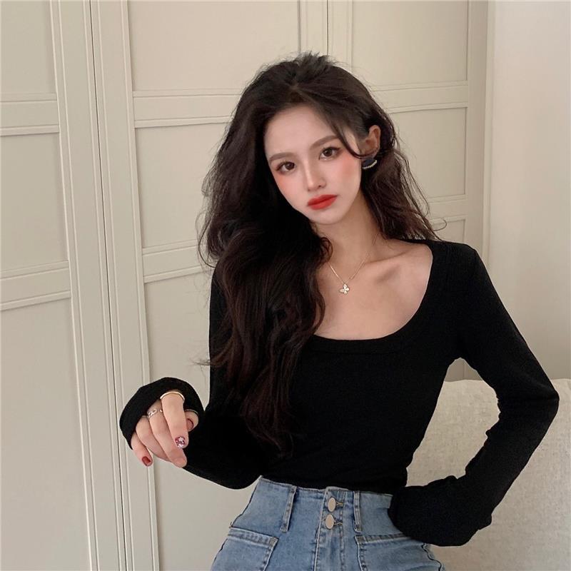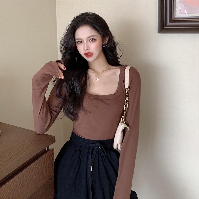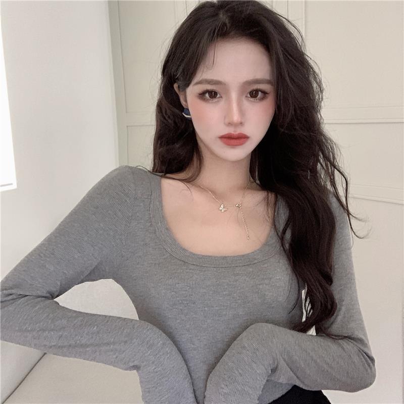 Camiseta de Manga Larga Estilo Coreano para Mujer Nuevo Top de Principios de Otoño Ins Combinable Ajustada Sensación de Alta Gama Chic Hermosa Camiseta Base
