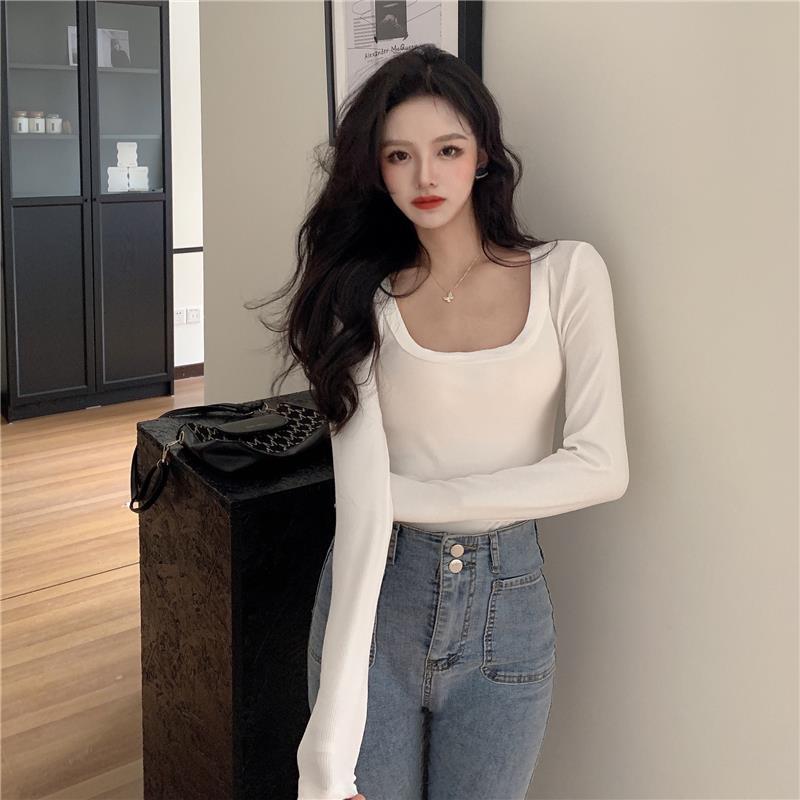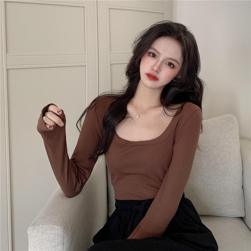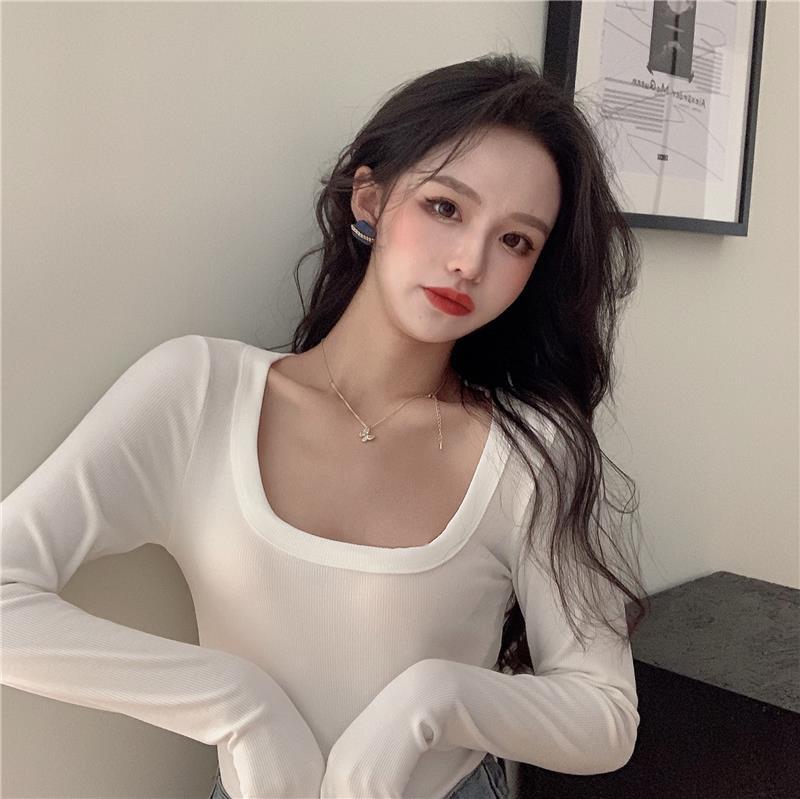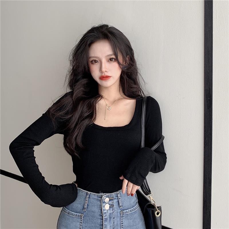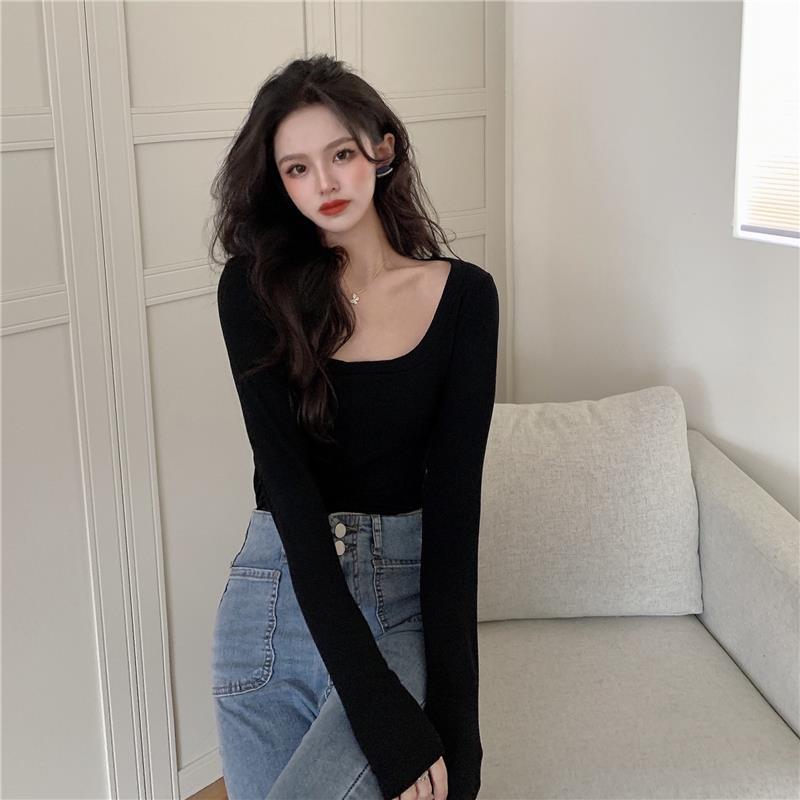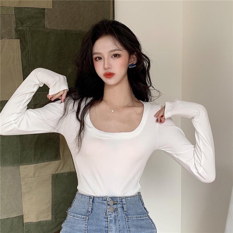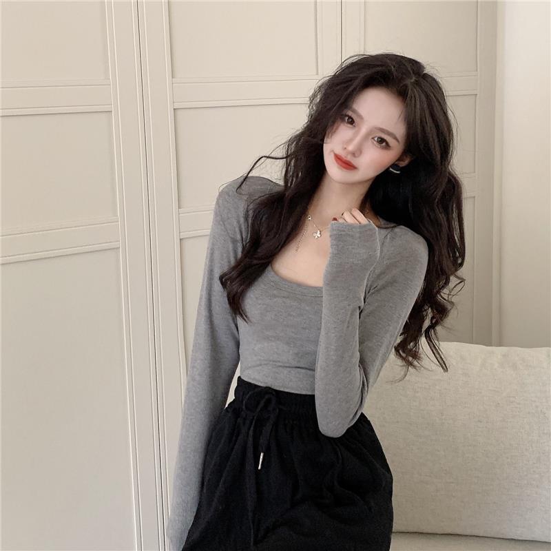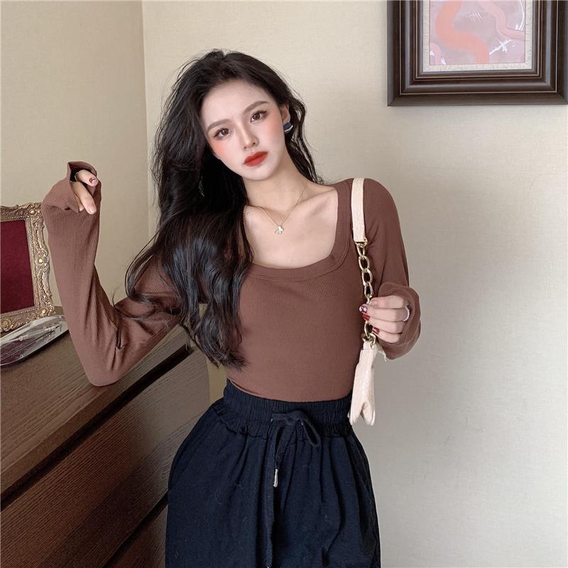 Camiseta de Manga Larga Estilo Coreano para Mujer Nuevo Top de Principios de Otoño Ins Combinable Ajustada Sensación de Alta Gama Chic Hermosa Camiseta Base