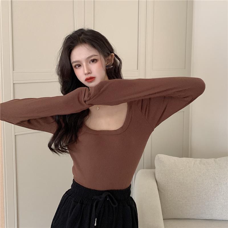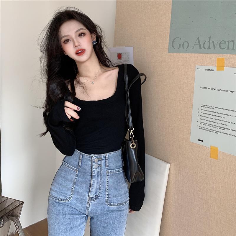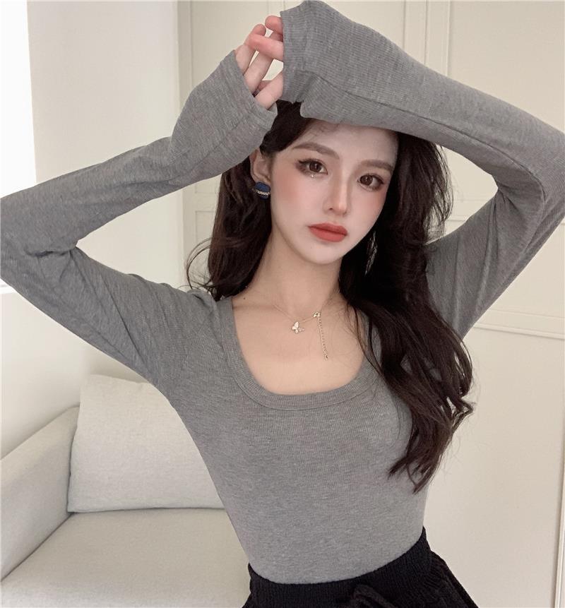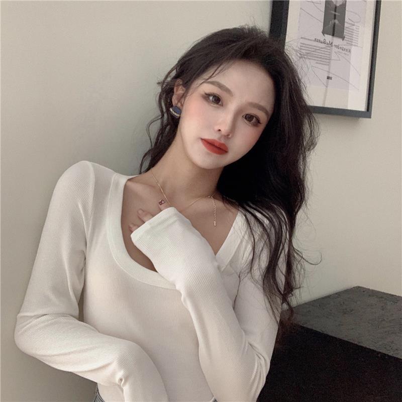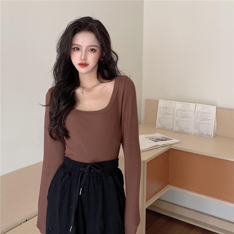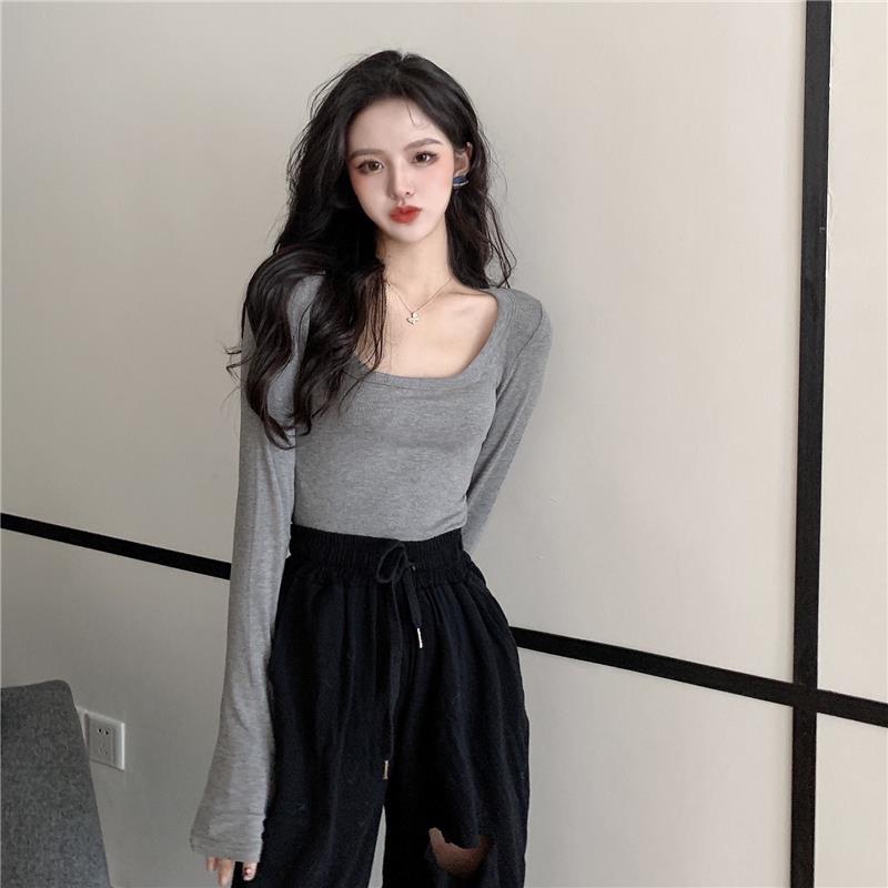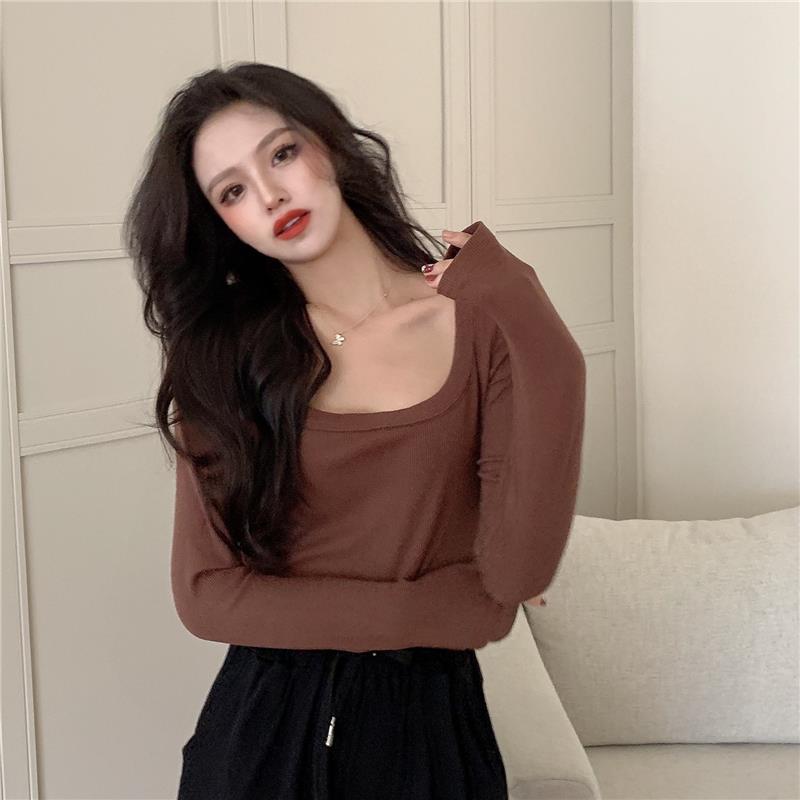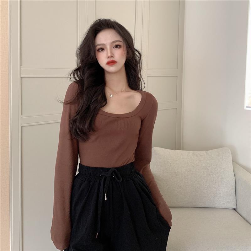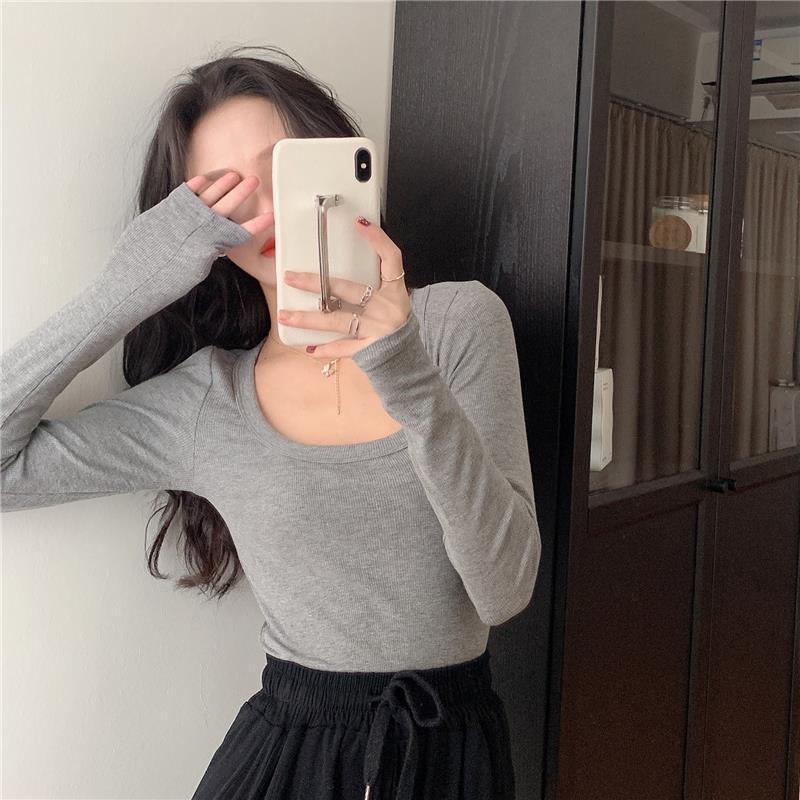 Camiseta de Manga Larga Estilo Coreano para Mujer Nuevo Top de Principios de Otoño Ins Combinable Ajustada Sensación de Alta Gama Chic Hermosa Camiseta Base